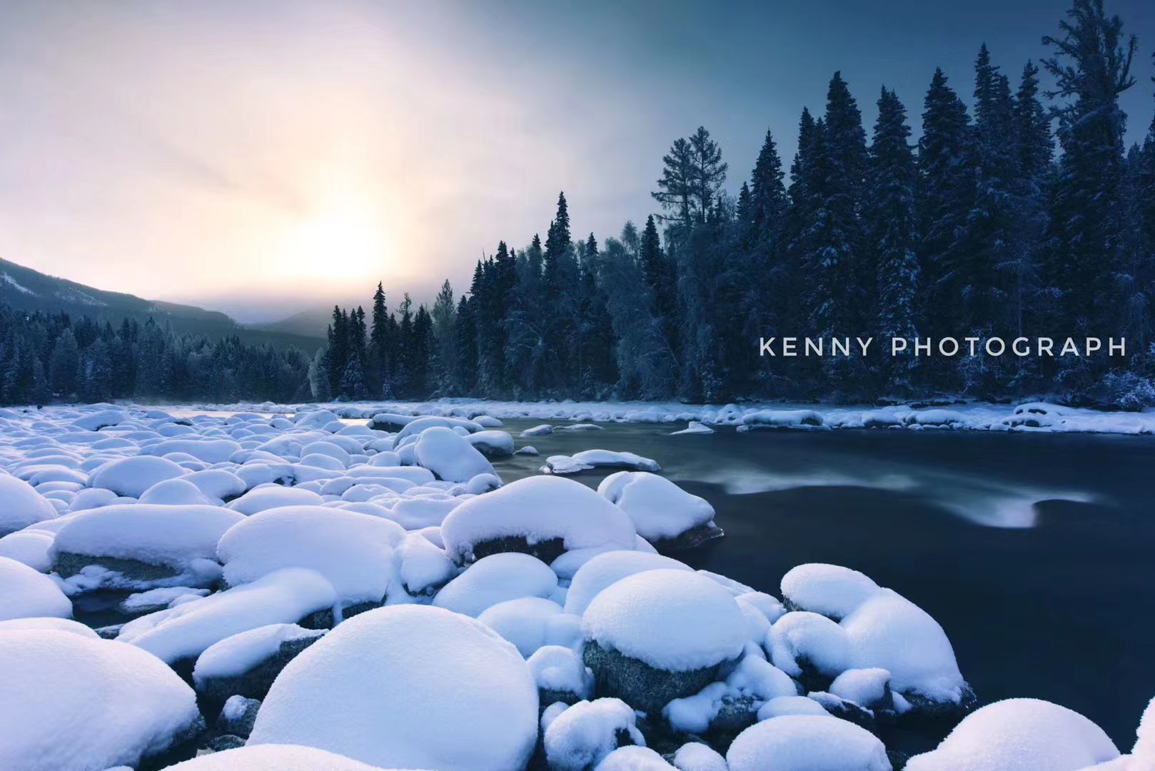 晨拍边境小镇冬景:雾气的清晨,炊烟袅袅飘荡,牛羊满坡,整个村落美轮美奂。随后前往另一处仙境喀纳斯,拍摄喀纳斯湖风光,四周森林铺满白雪,冰挂,不结冰的小河是拍摄慢门的绝佳题材。