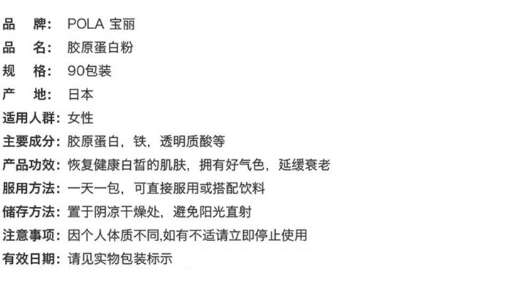 【香港直邮】POLA/宝丽 胶原蛋白粉 1.8G×90包 3个月