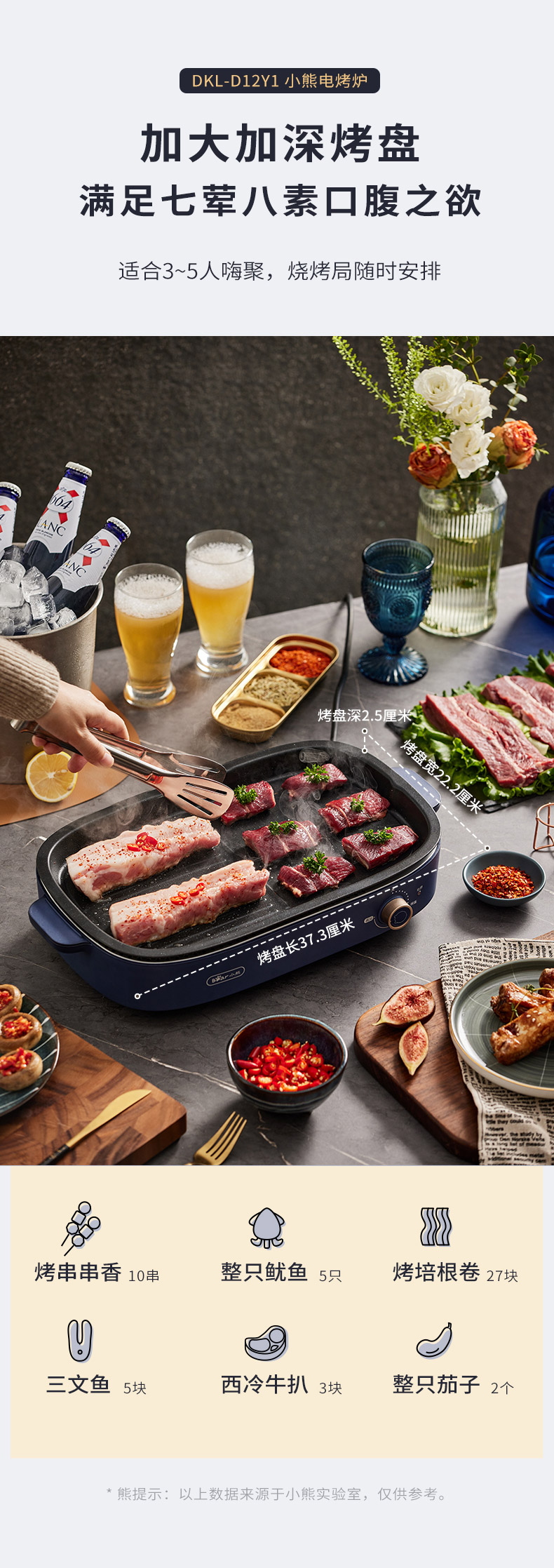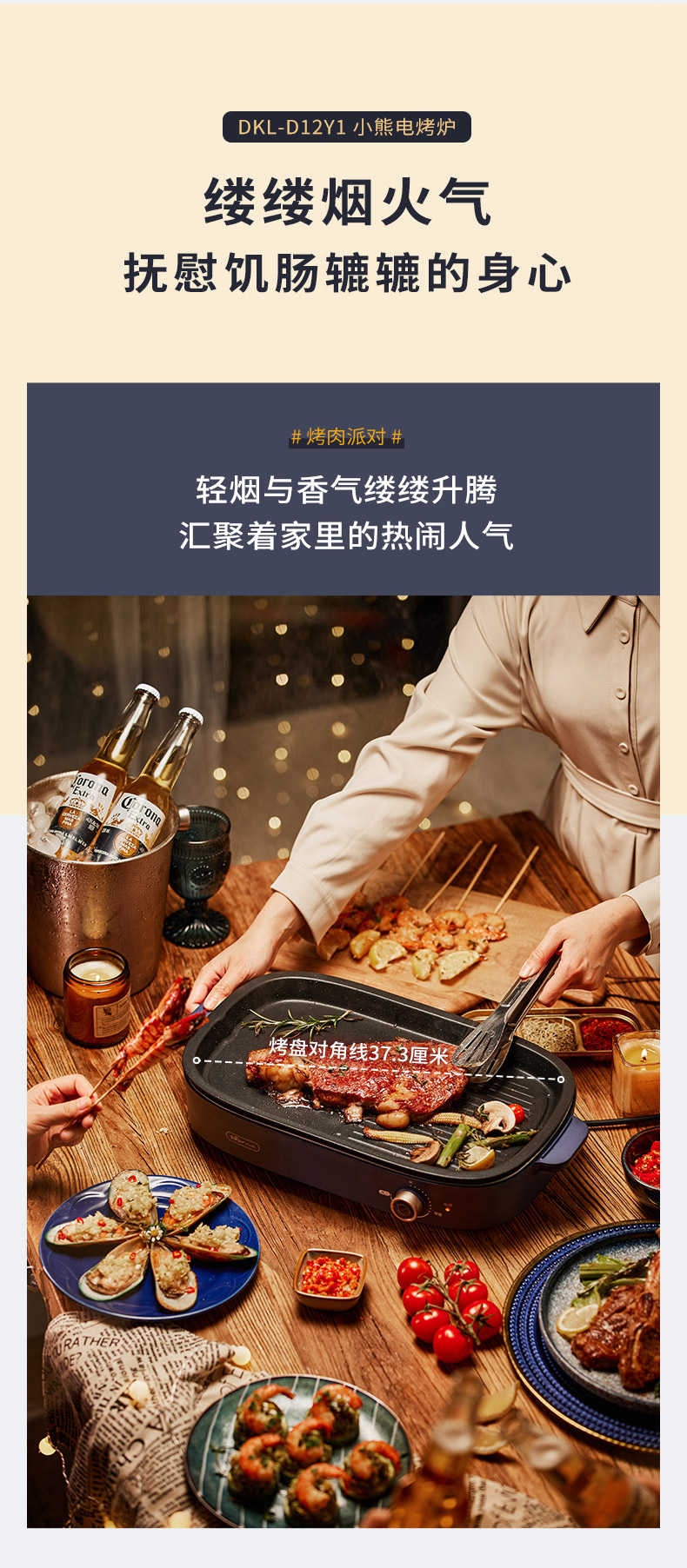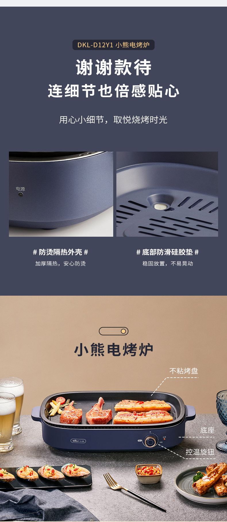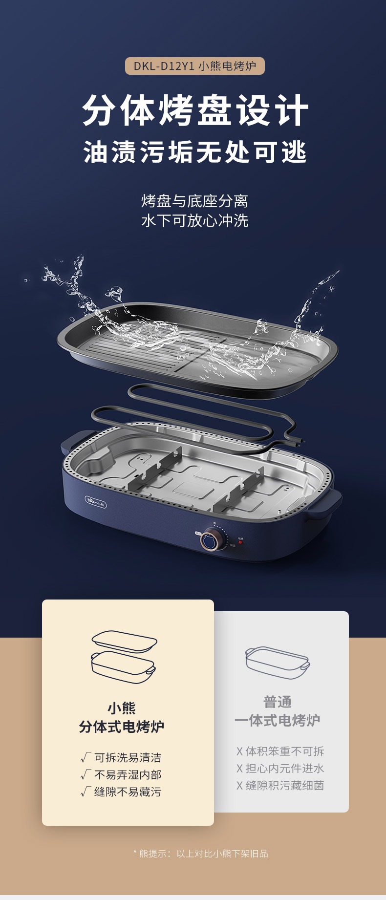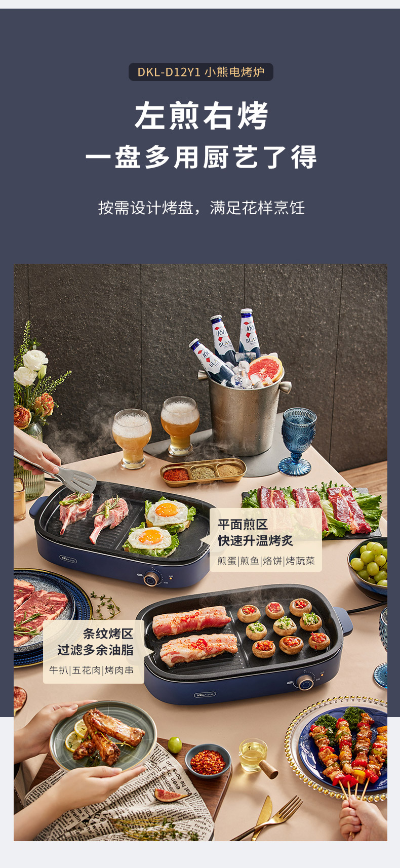 【小程序】小熊烤肉锅家用烤肉盘电烤盘一体多功能新款家庭室内可拆卸电烤炉 DKL-D12Y1 分离式烤盘+木铲(双色可选)