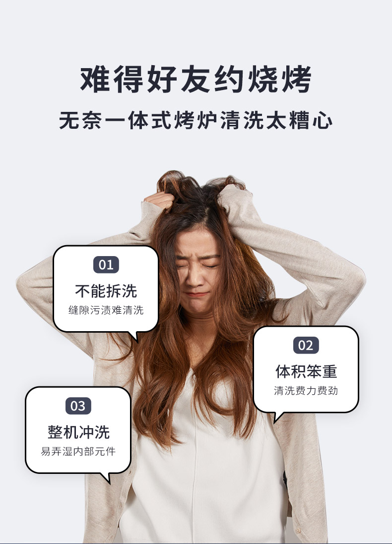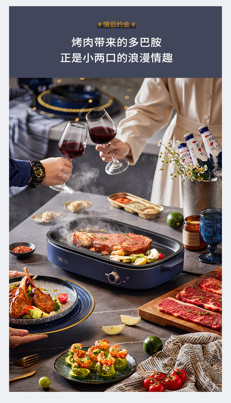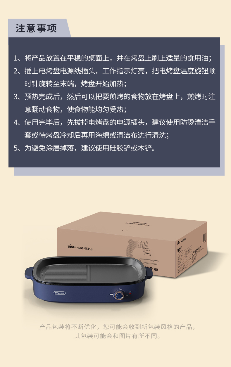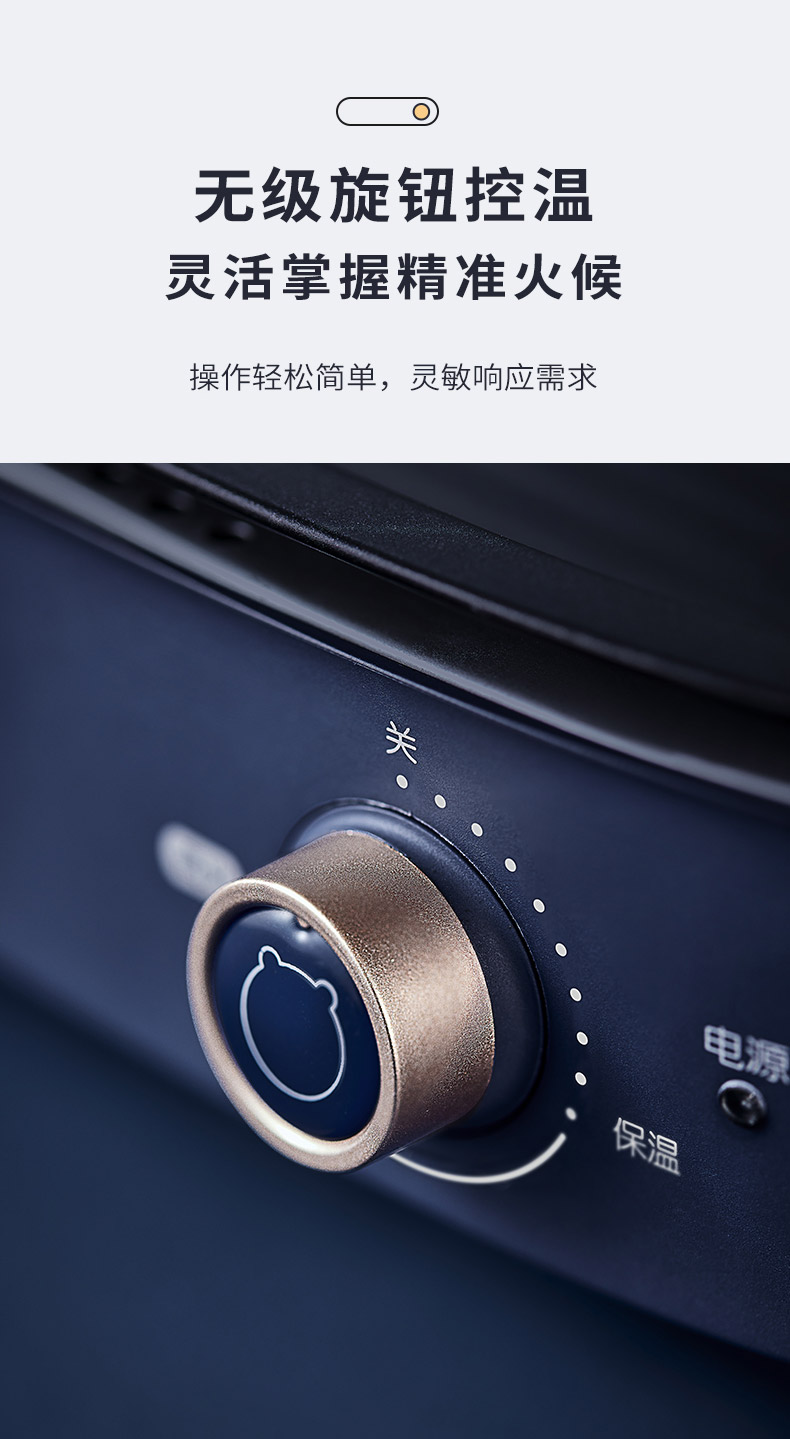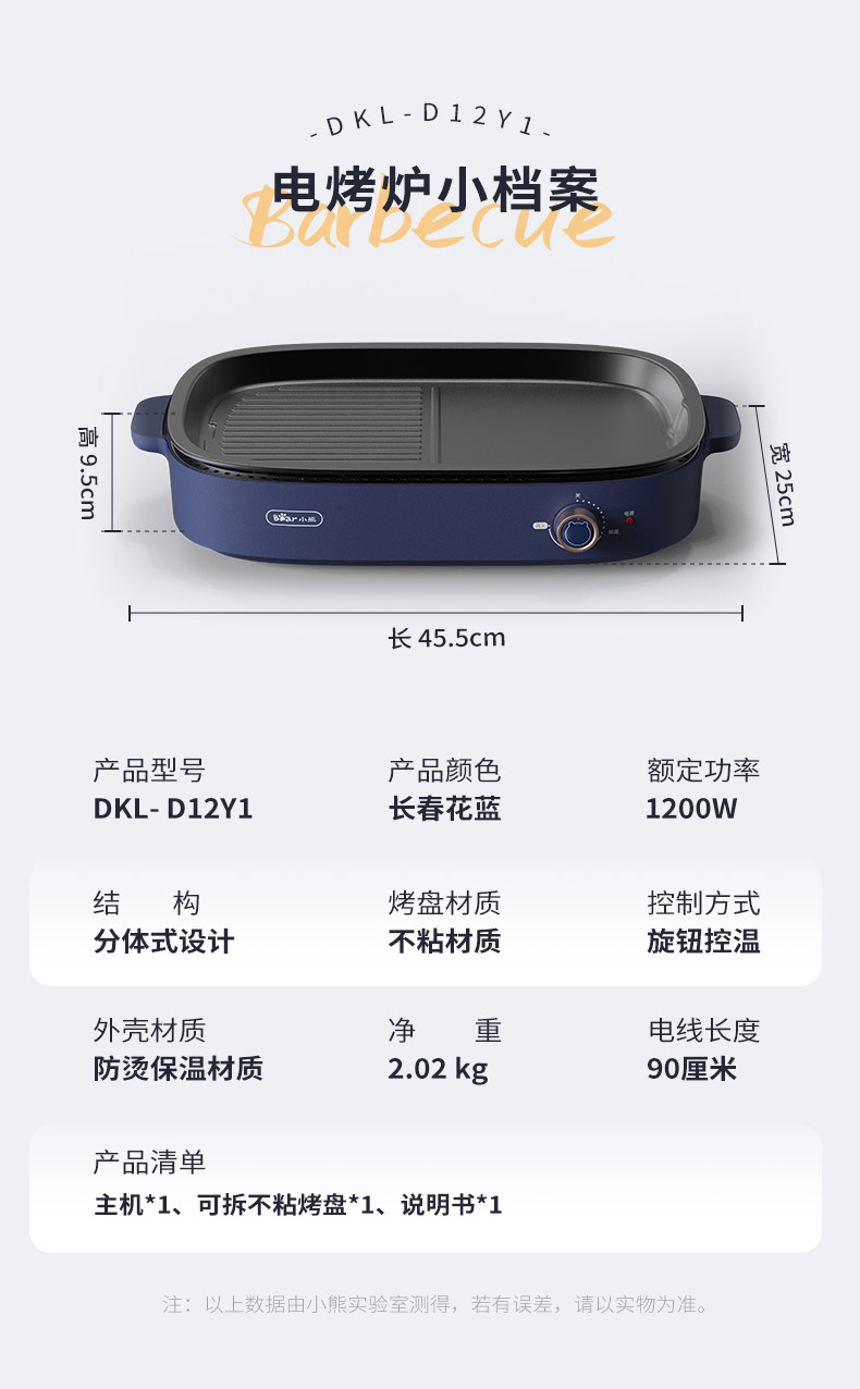 【小程序】小熊烤肉锅家用烤肉盘电烤盘一体多功能新款家庭室内可拆卸电烤炉 DKL-D12Y1 分离式烤盘+木铲(双色可选)