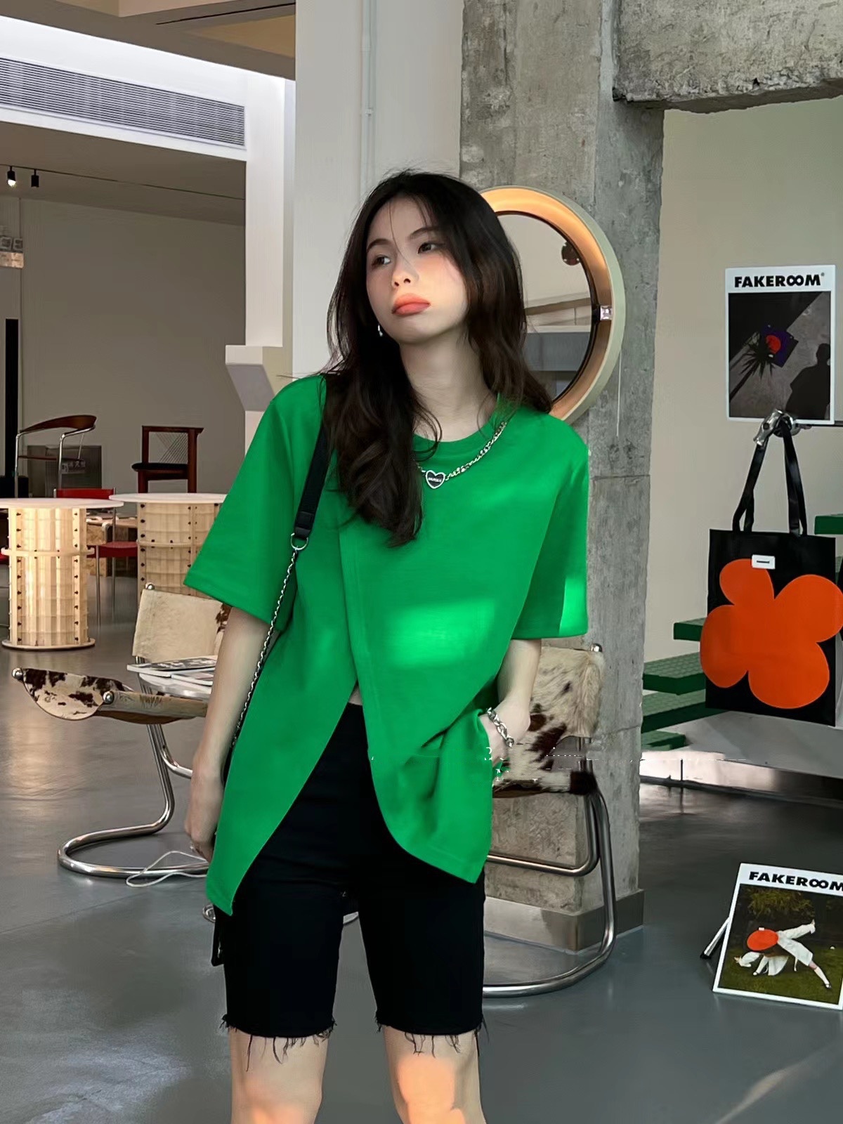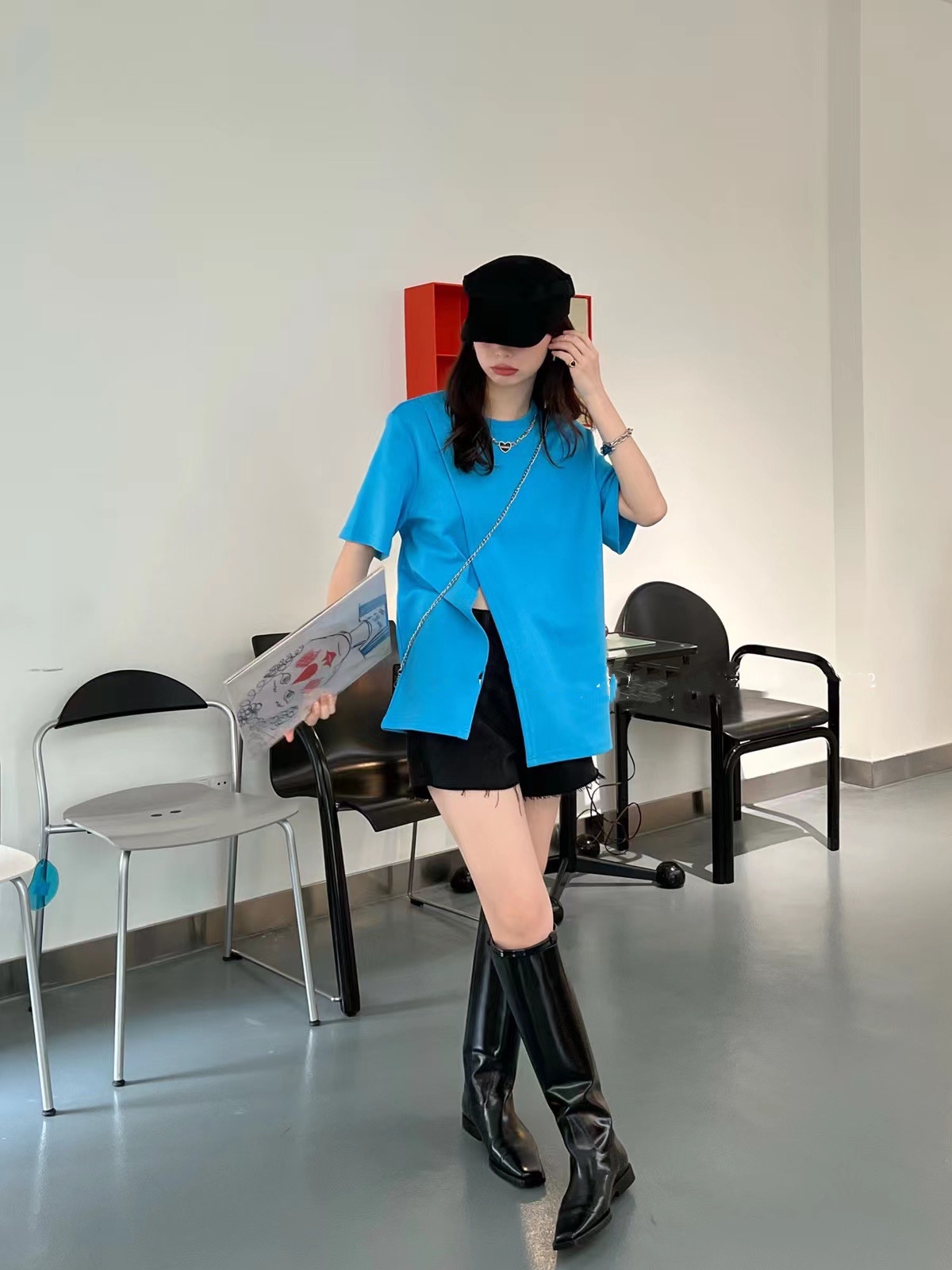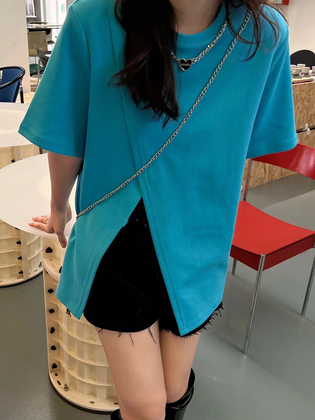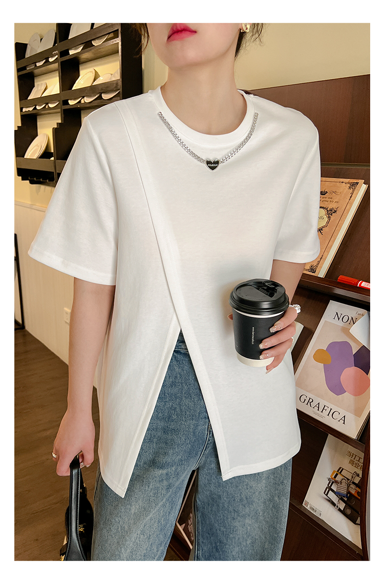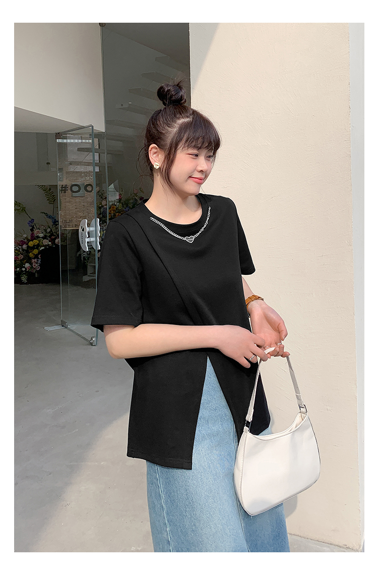 (清仓现货)【社群供W】项链开衩T恤