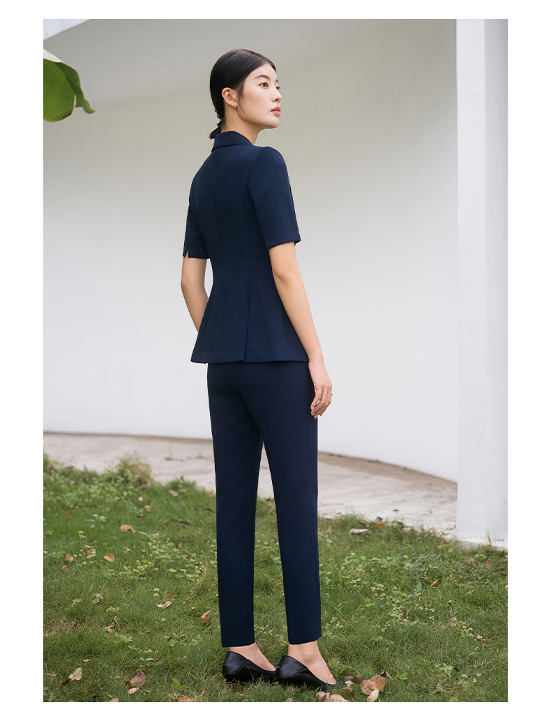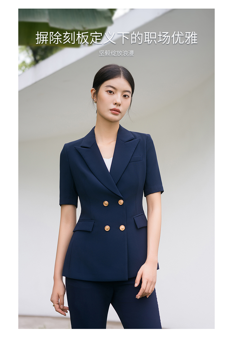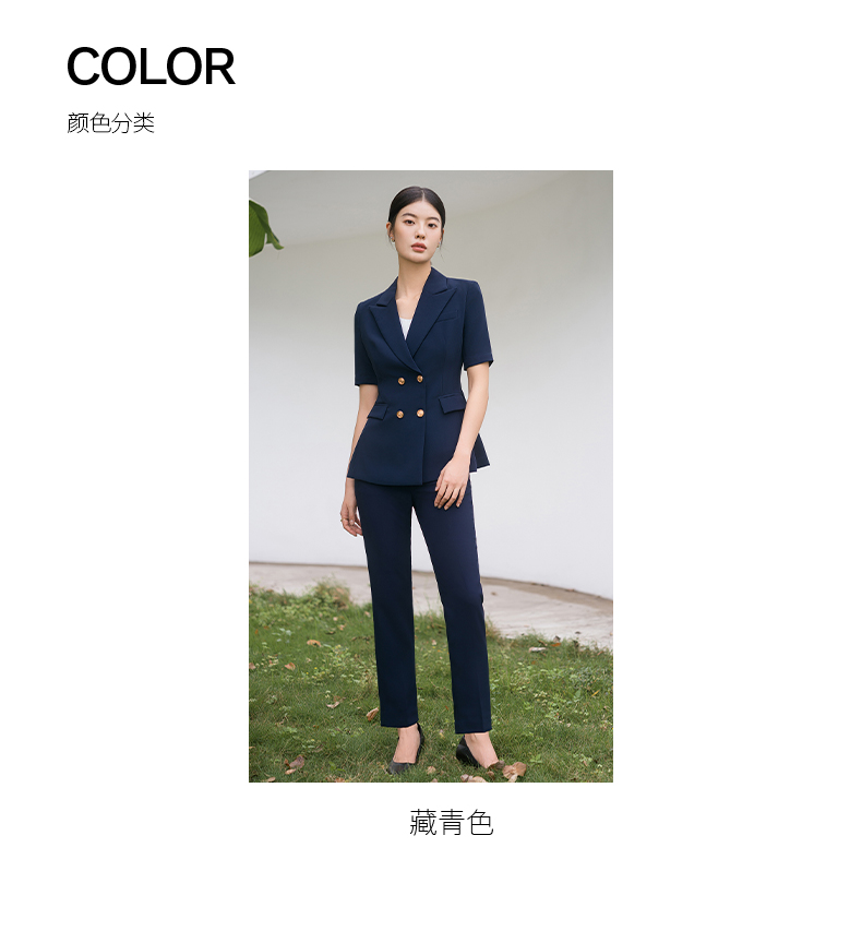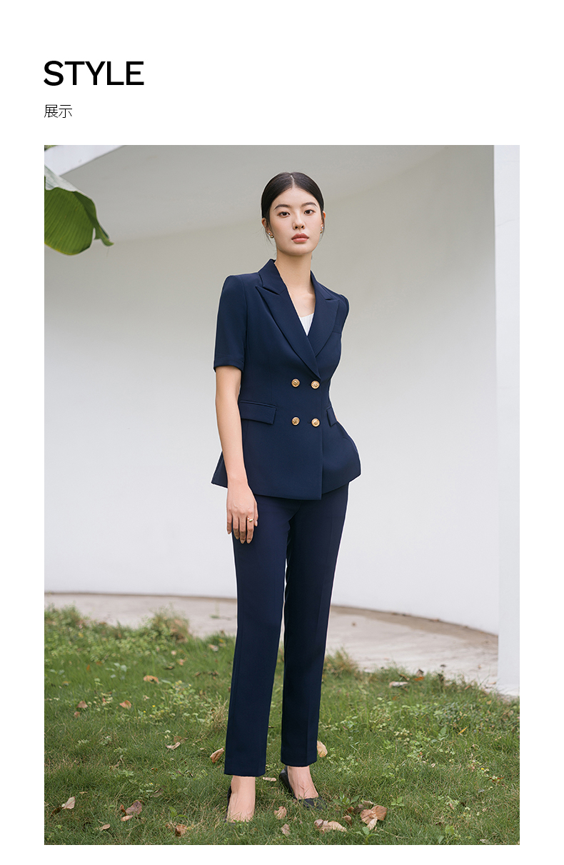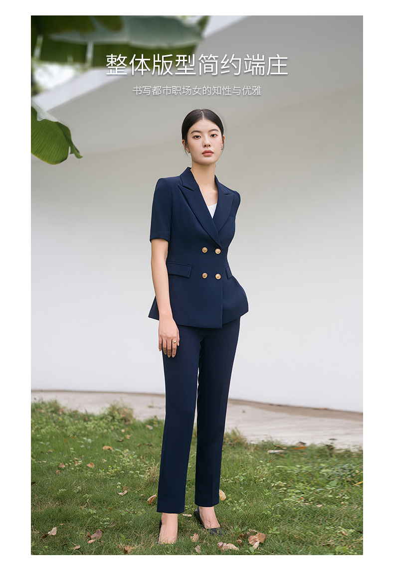 IWY/短袖藏青色西装套装干练高级西服外套气质置业经理商务职业装C13208+P13208