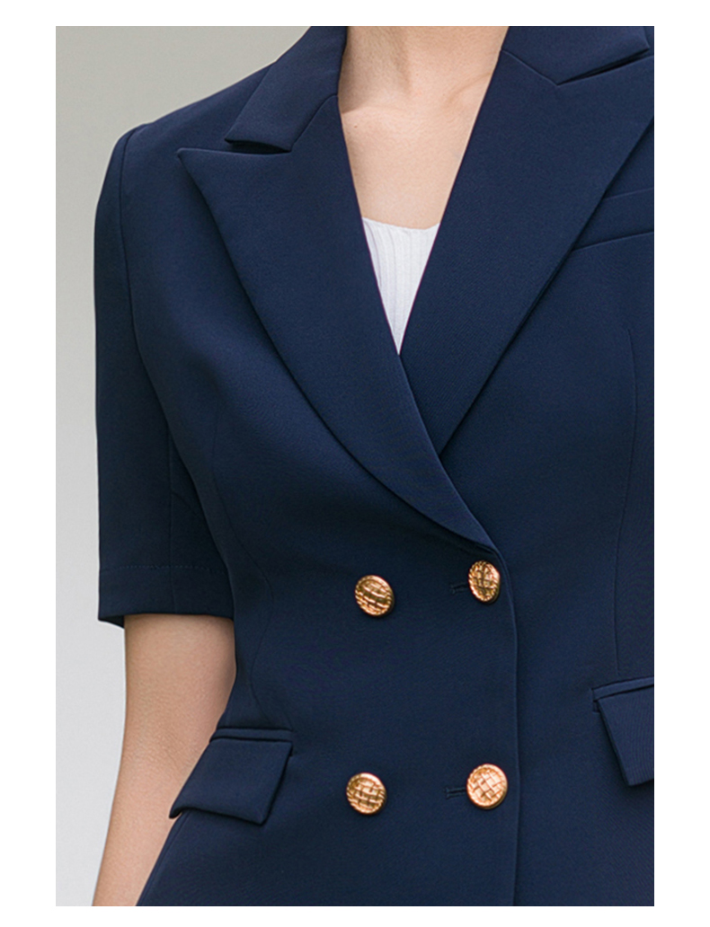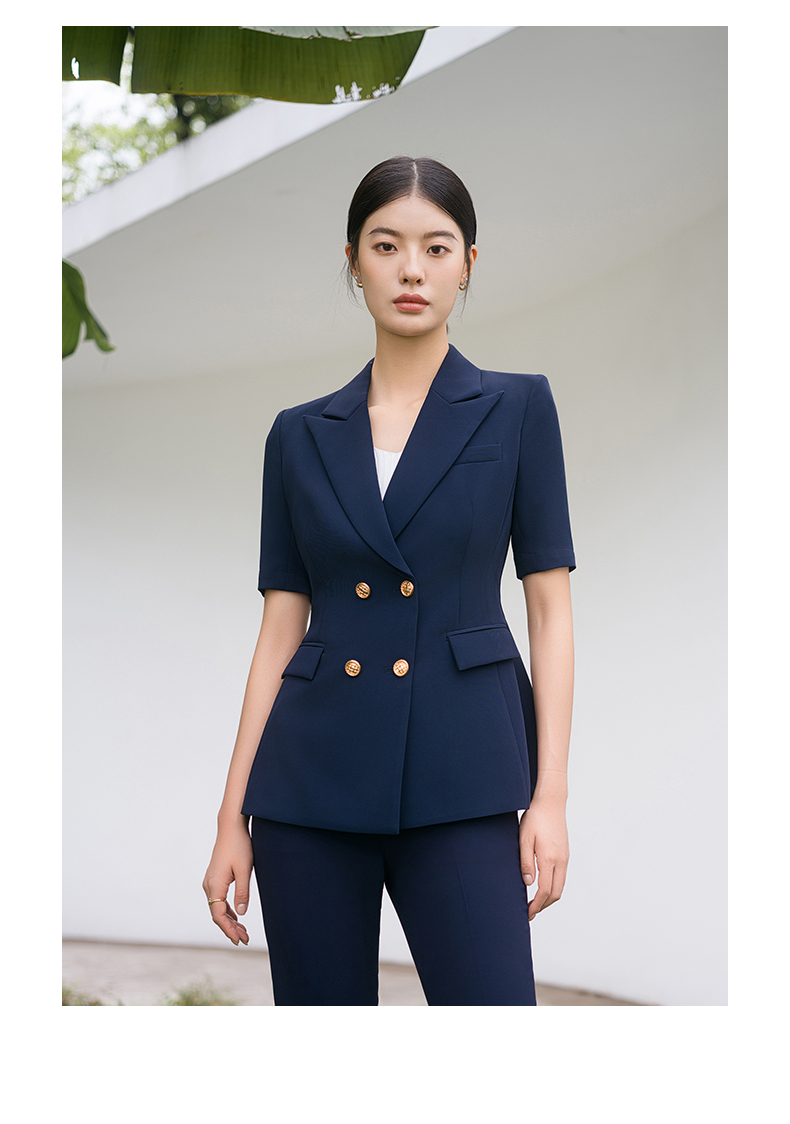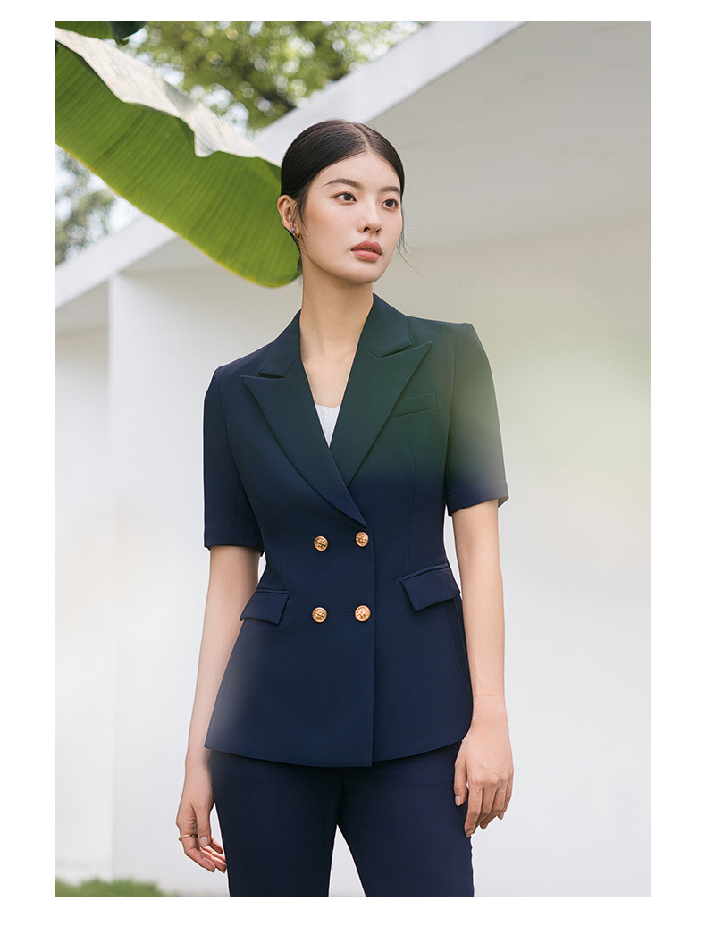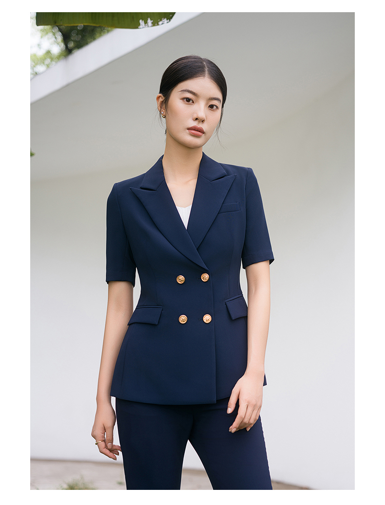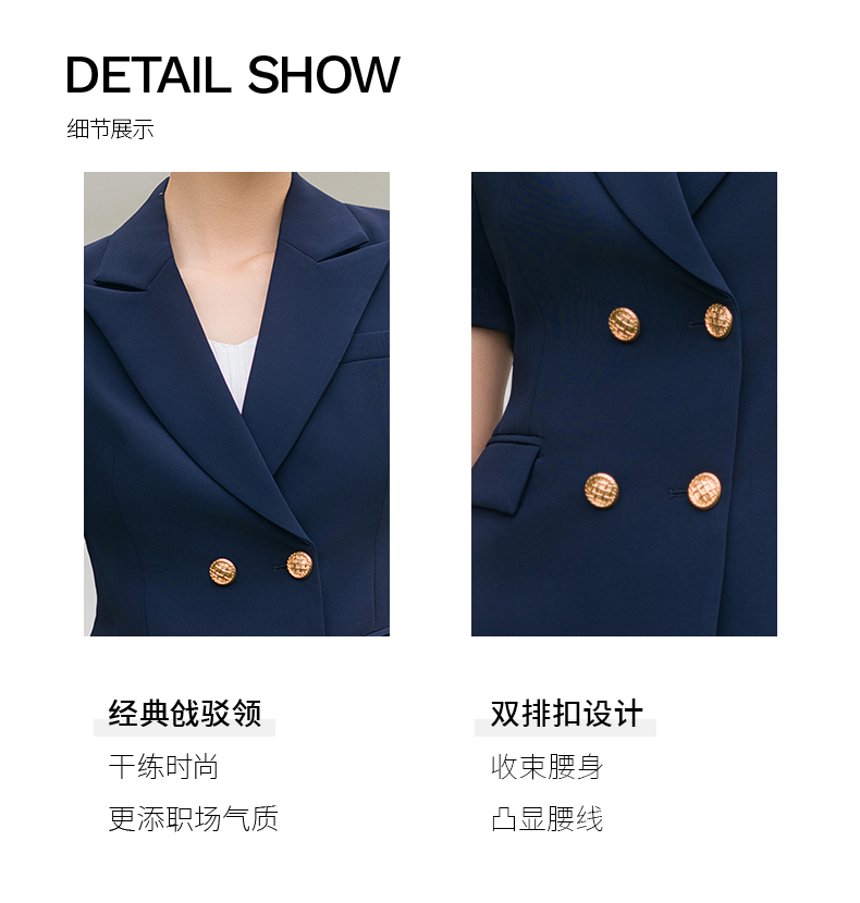 IWY/短袖藏青色西装套装干练高级西服外套气质置业经理商务职业装C13208+P13208