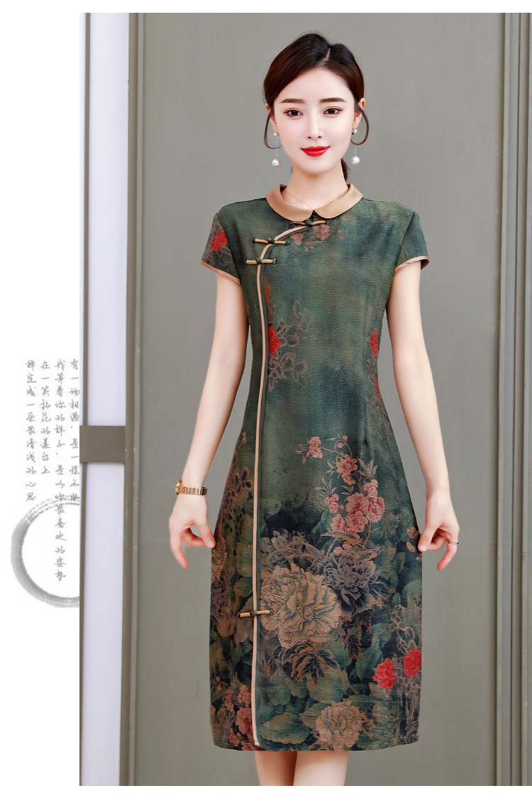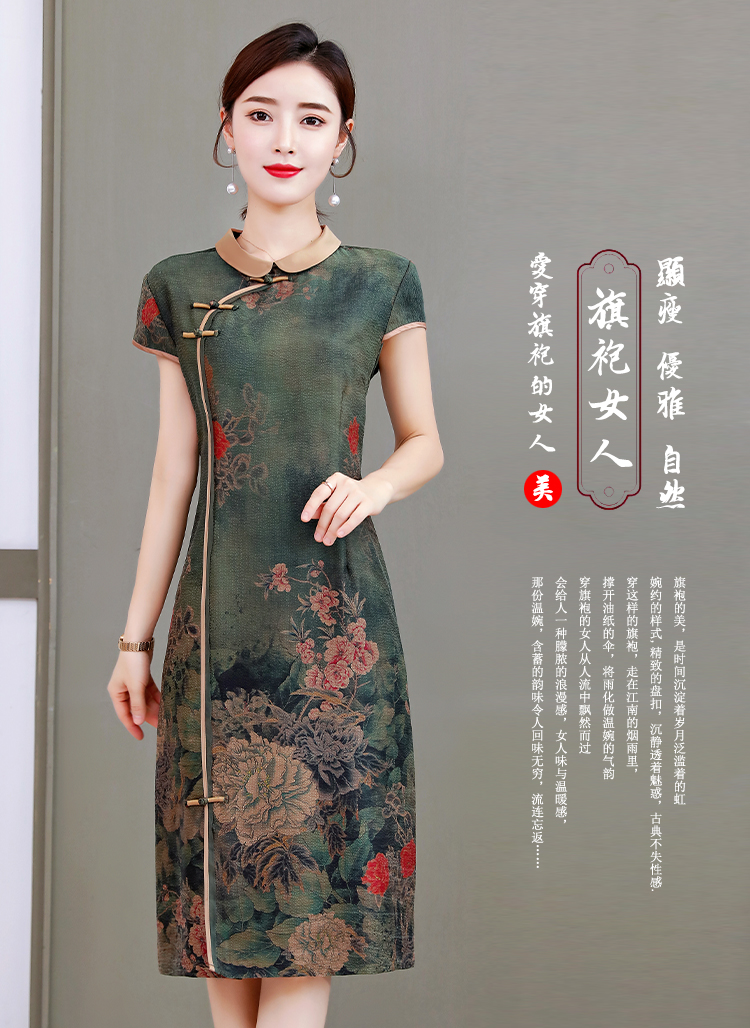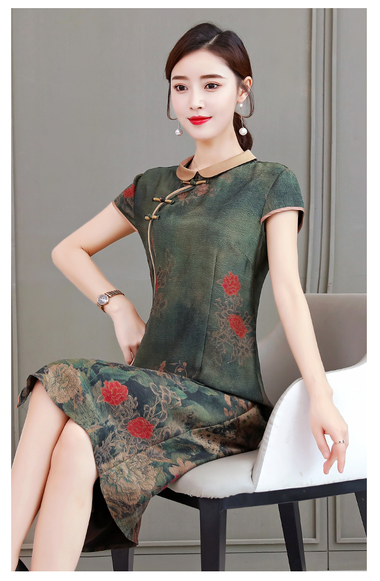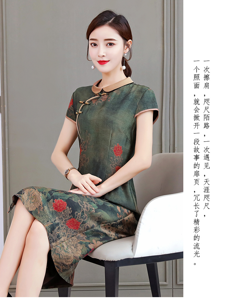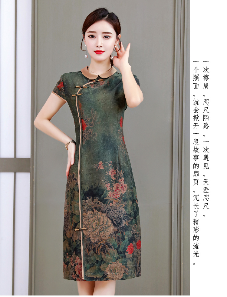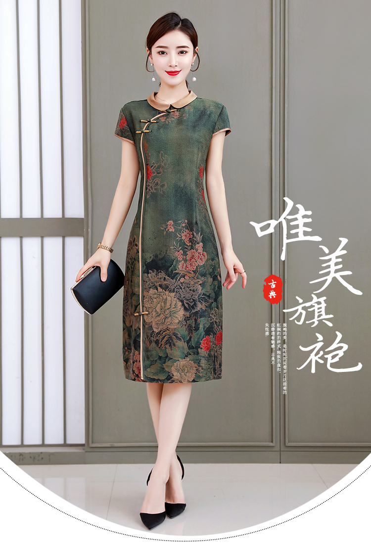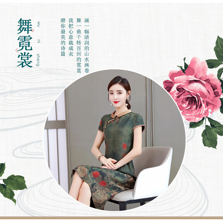 新款民族风连衣裙丝滑复古改良款旗袍女 NSM1231