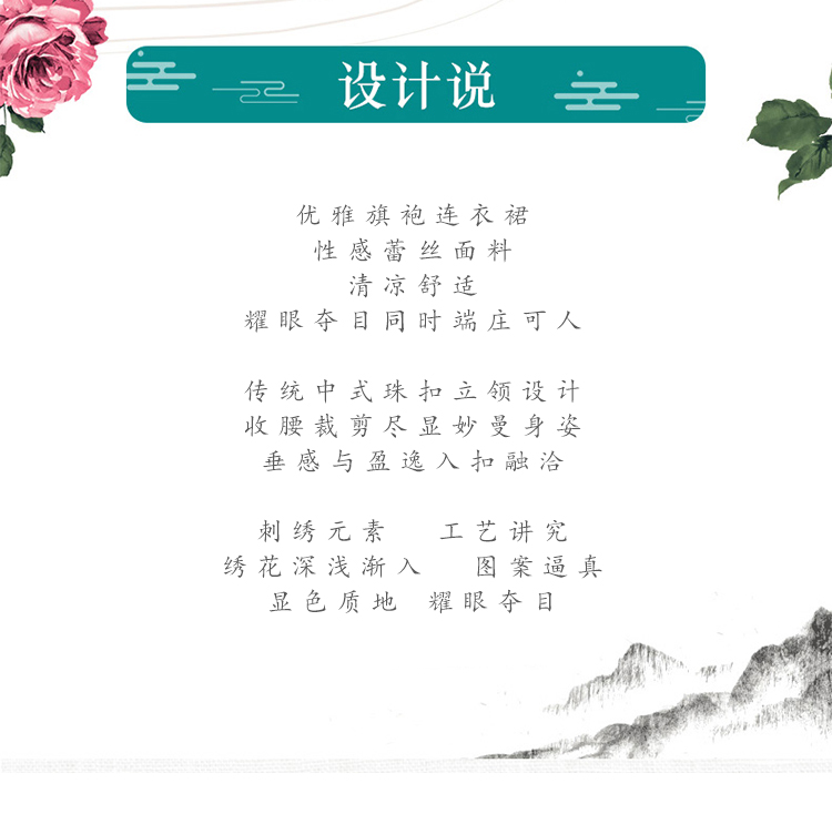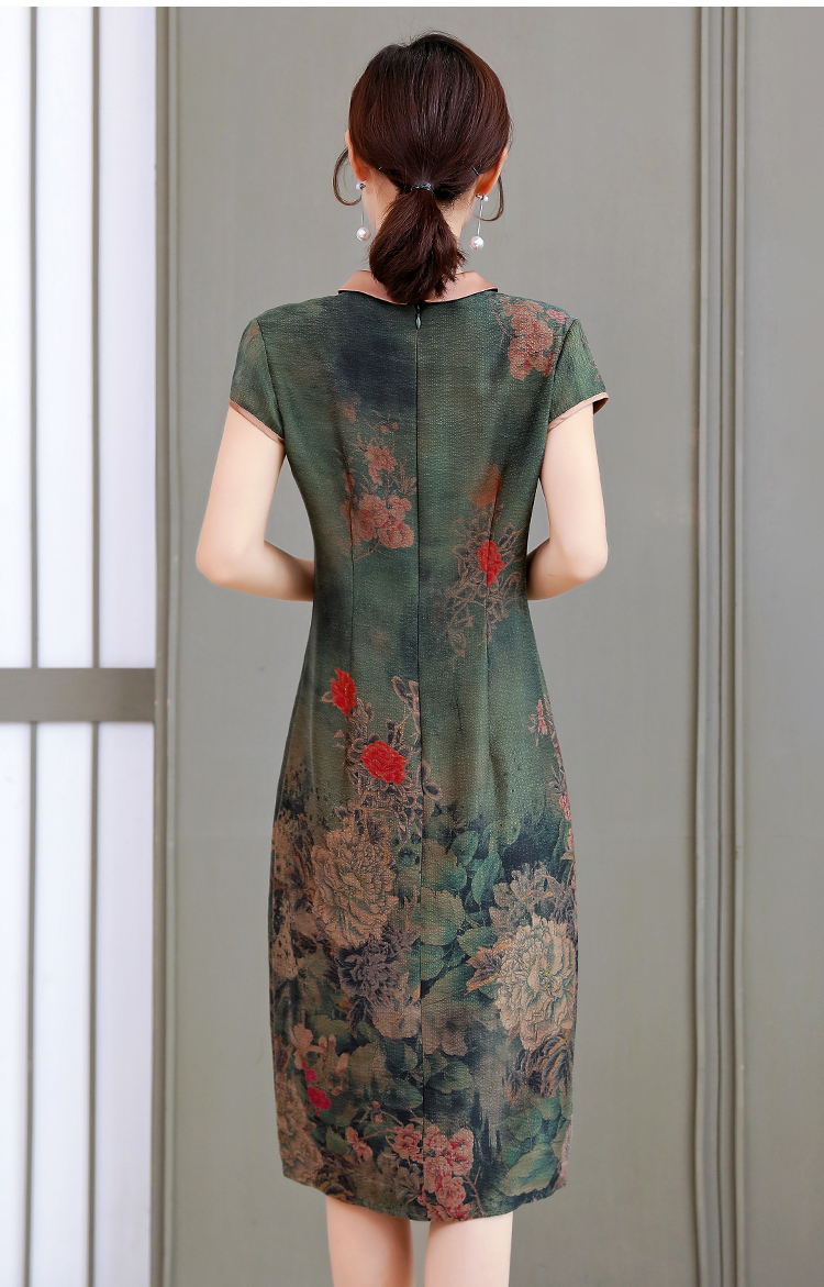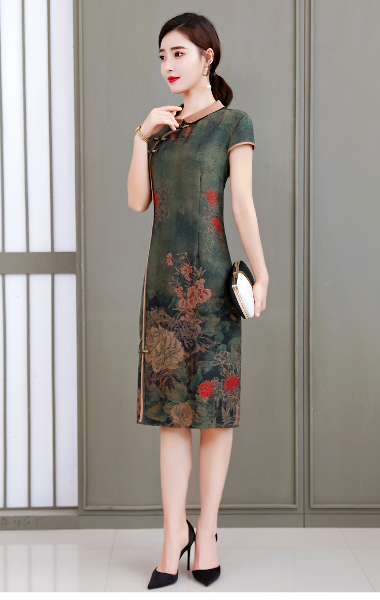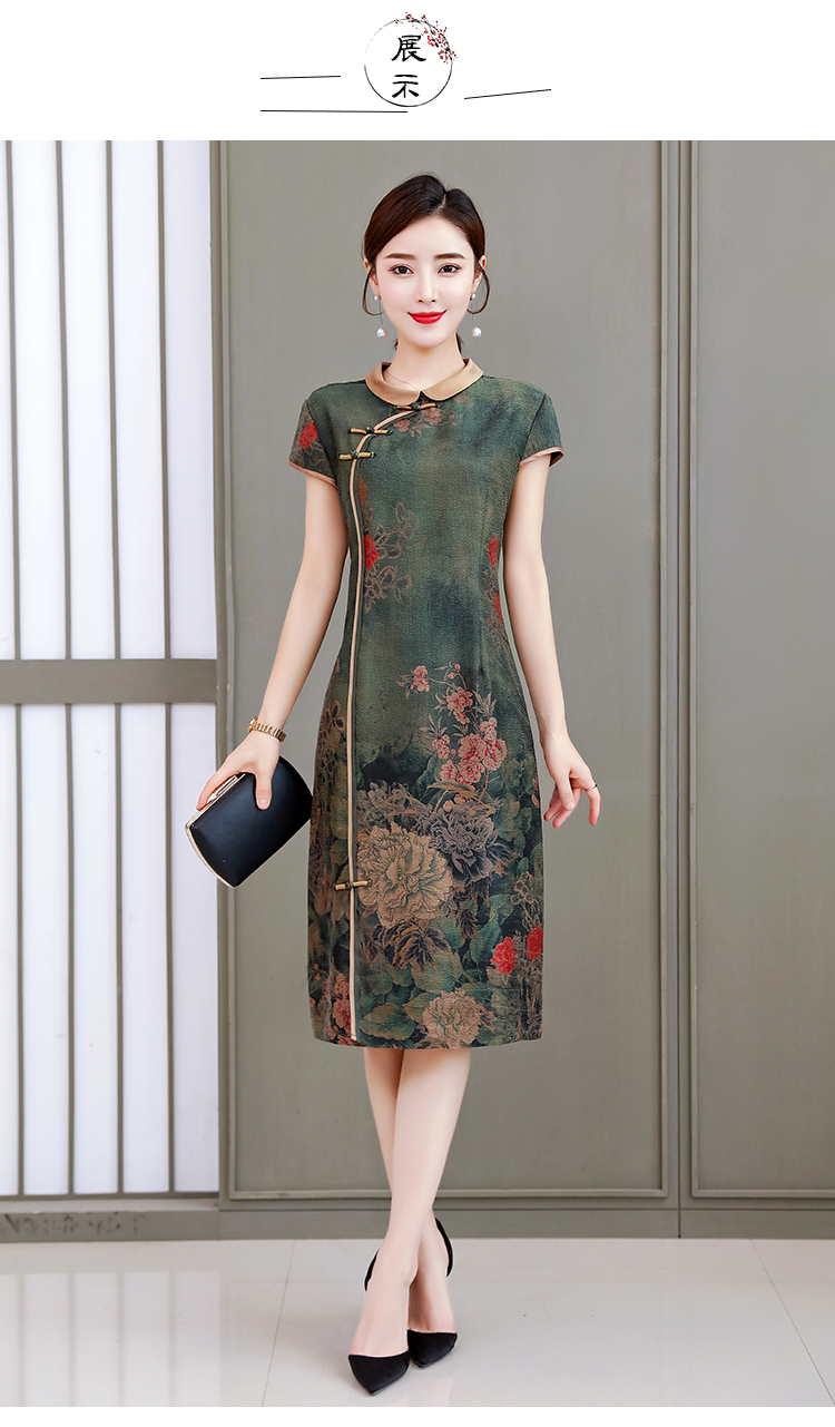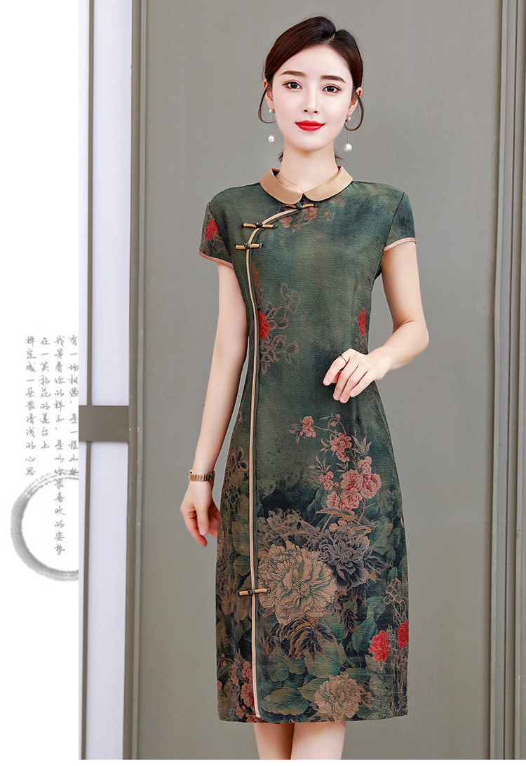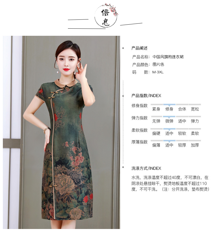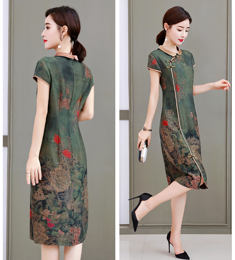 新款民族风连衣裙丝滑复古改良款旗袍女 NSM1231