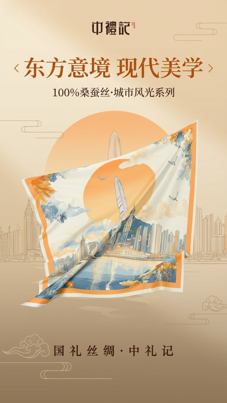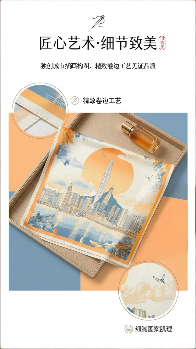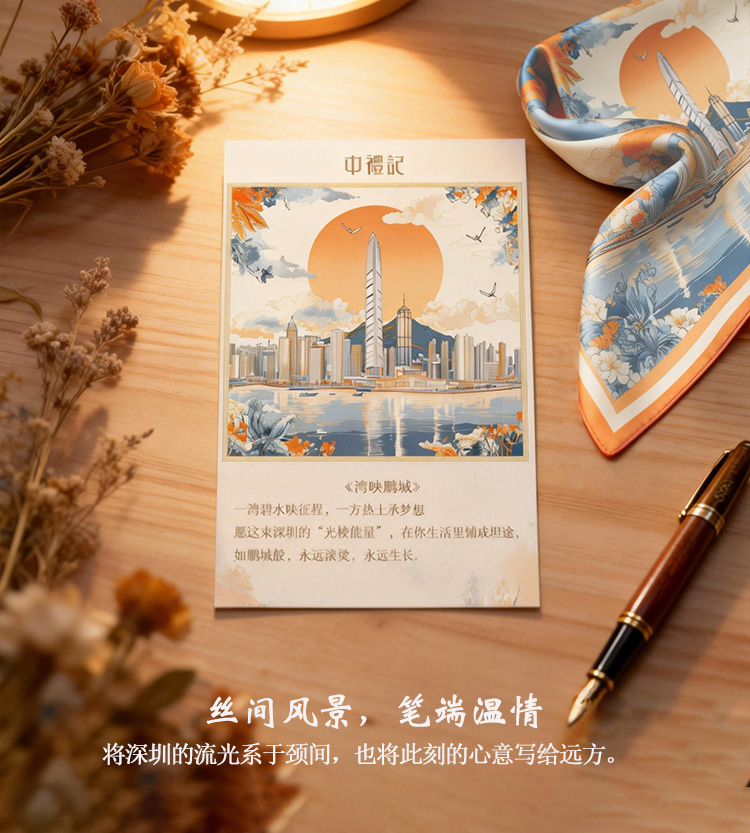 深圳手信 中礼记《湾映鹏城》丝巾礼盒