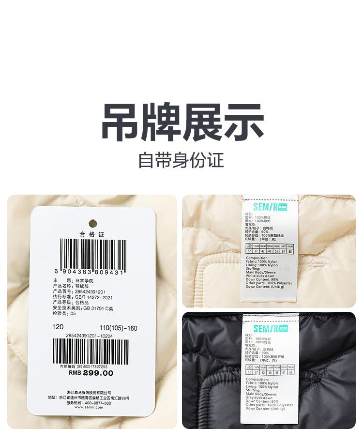 森马儿童童装羽绒服年新款男童时尚宽松外套女童轻便保暖冬装