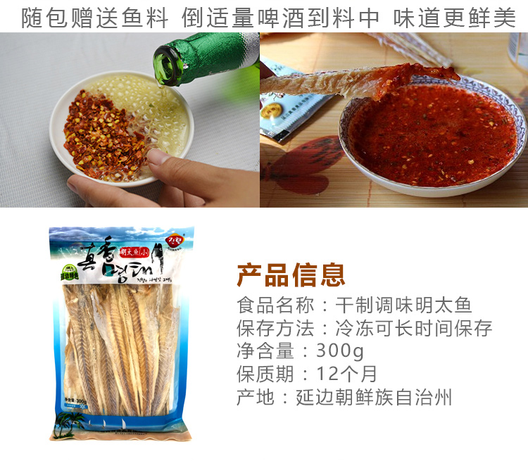 【满66包邮】延贞朝鲜族风味明太鱼片带料包独立包装130g有嚼劲真味鱼肉4袋料包明太鱼