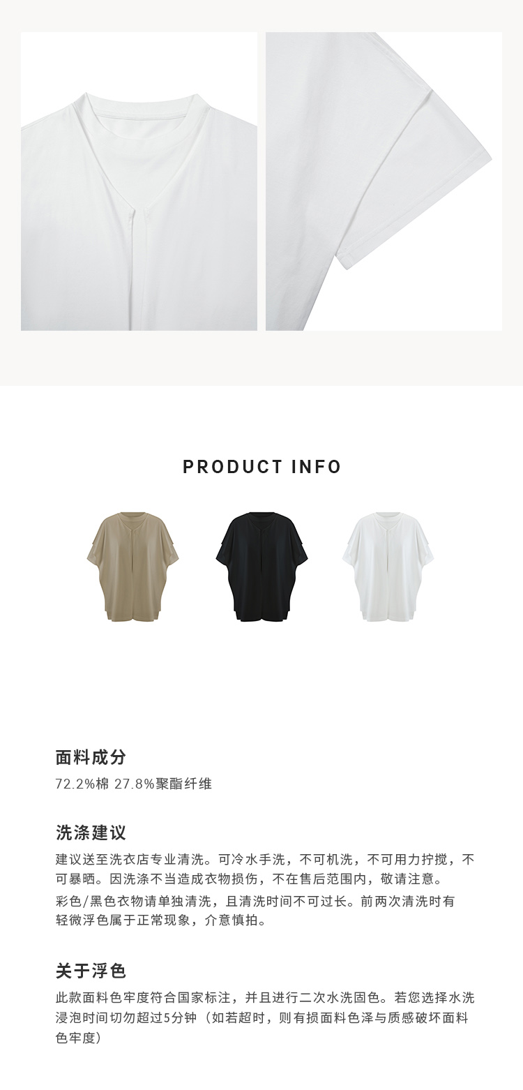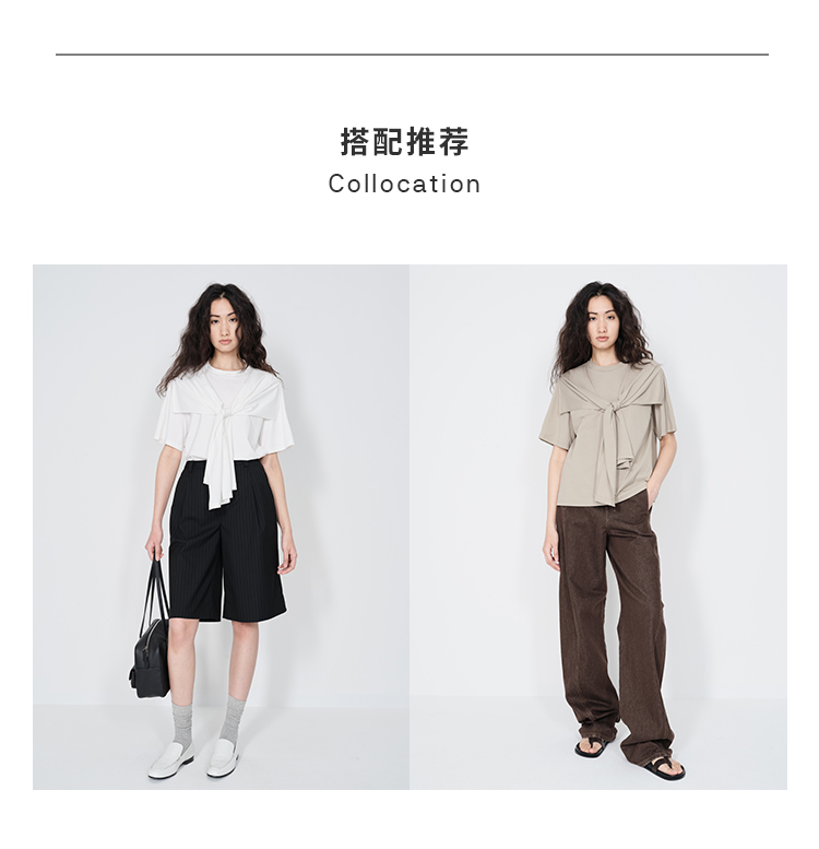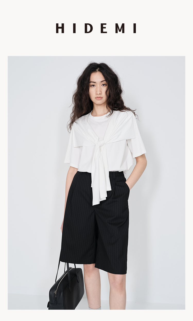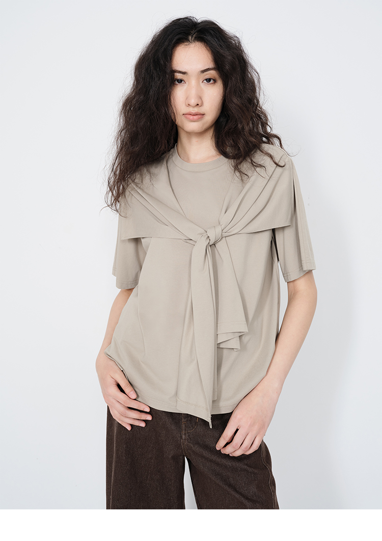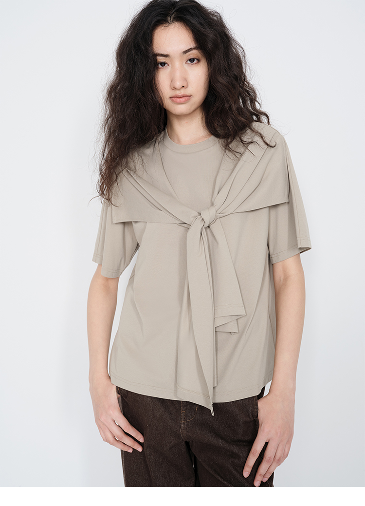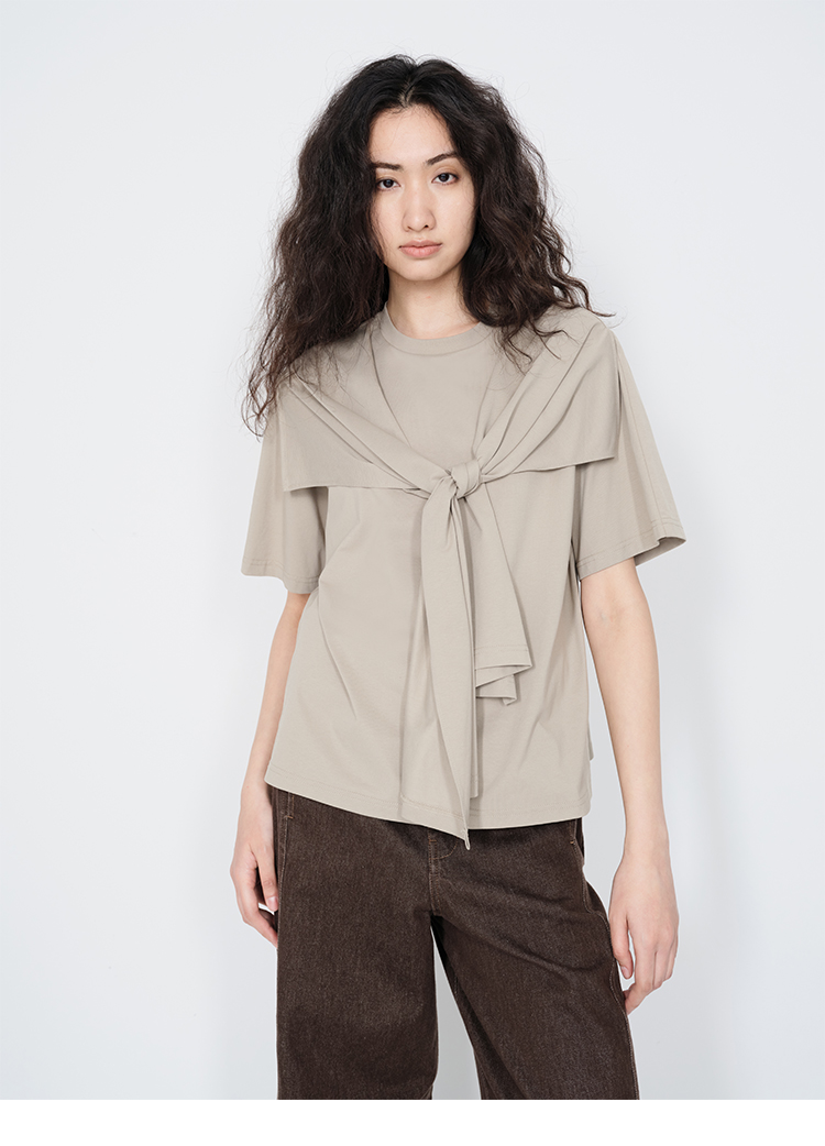 HIDEMI 小飞侠系列极简丝巾堆叠感多穿式水洗棉短袖t恤 燕麦米灰/白色/黑色