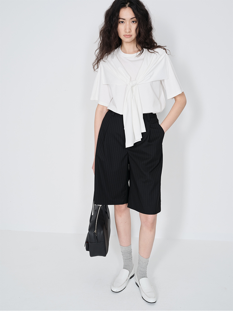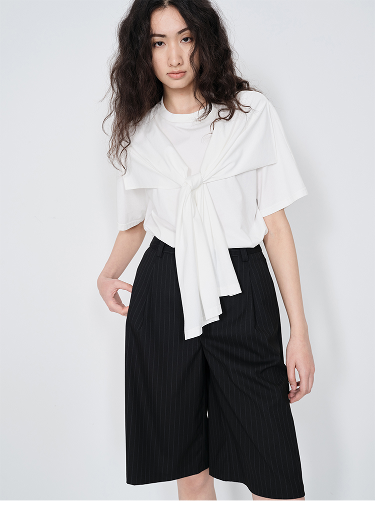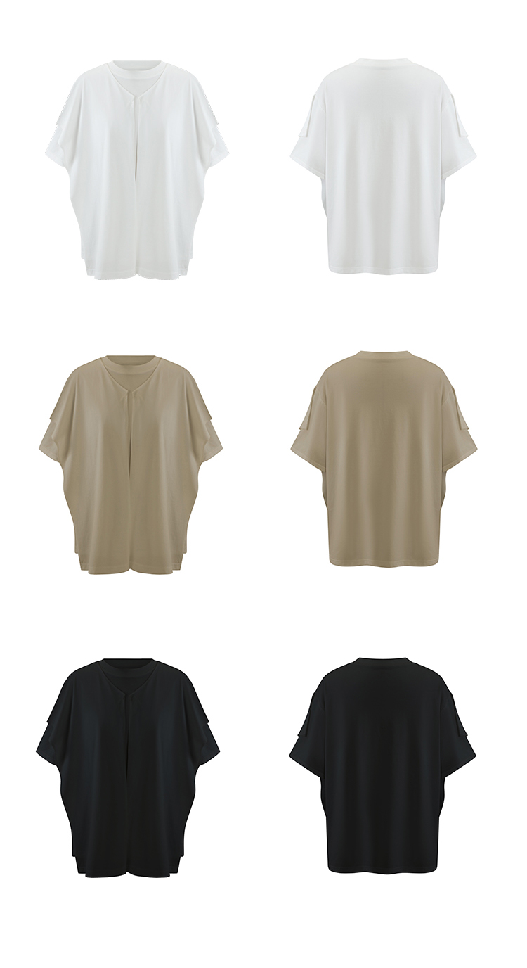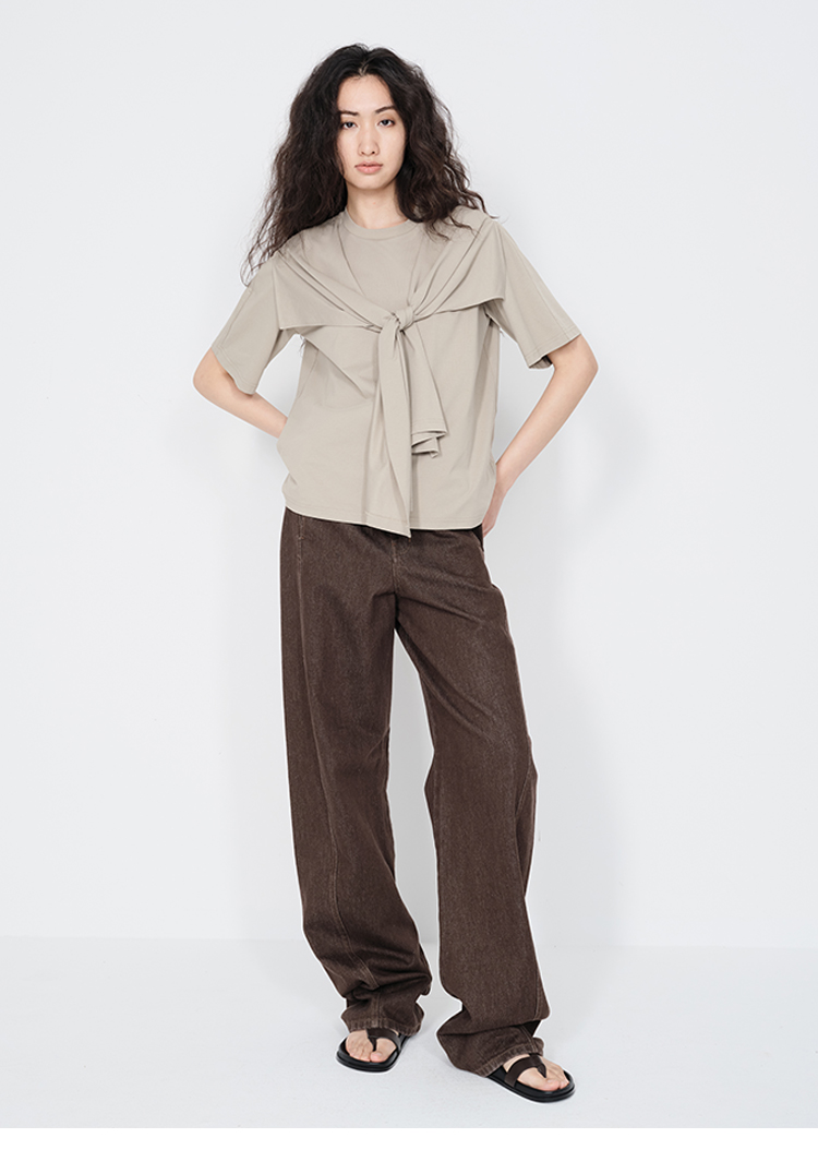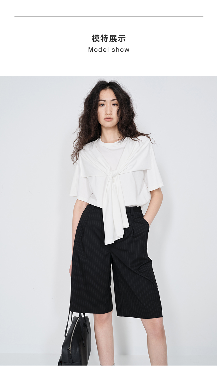 HIDEMI 小飞侠系列极简丝巾堆叠感多穿式水洗棉短袖t恤 燕麦米灰/白色/黑色