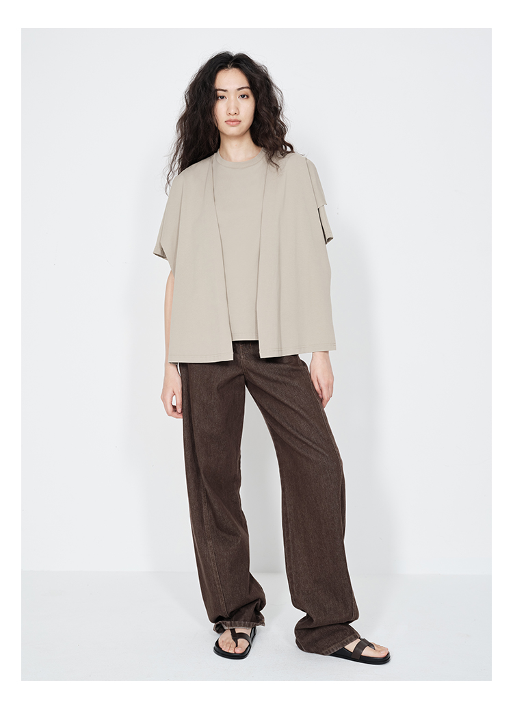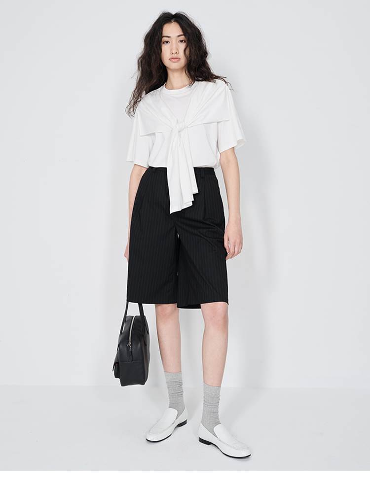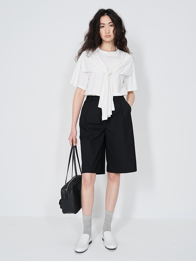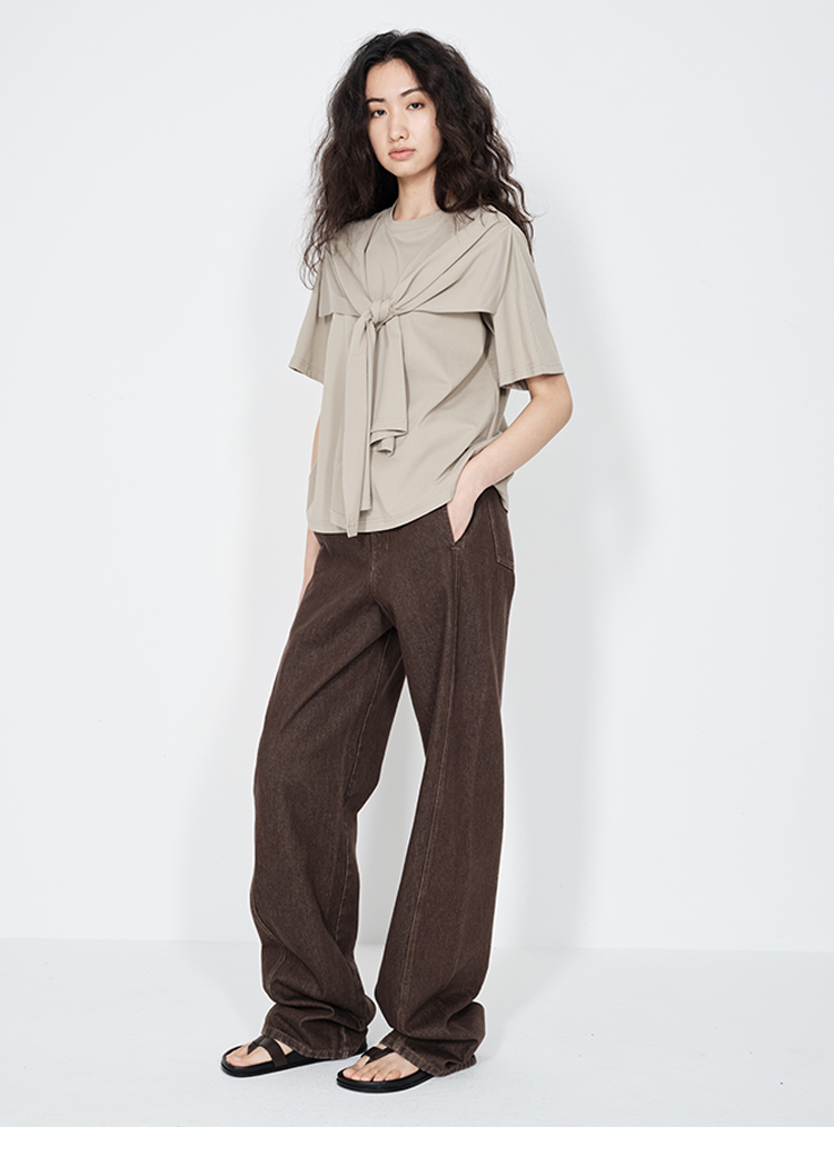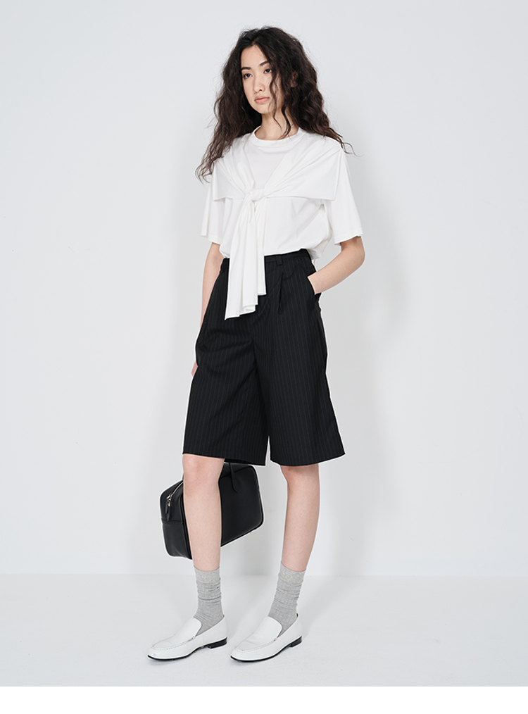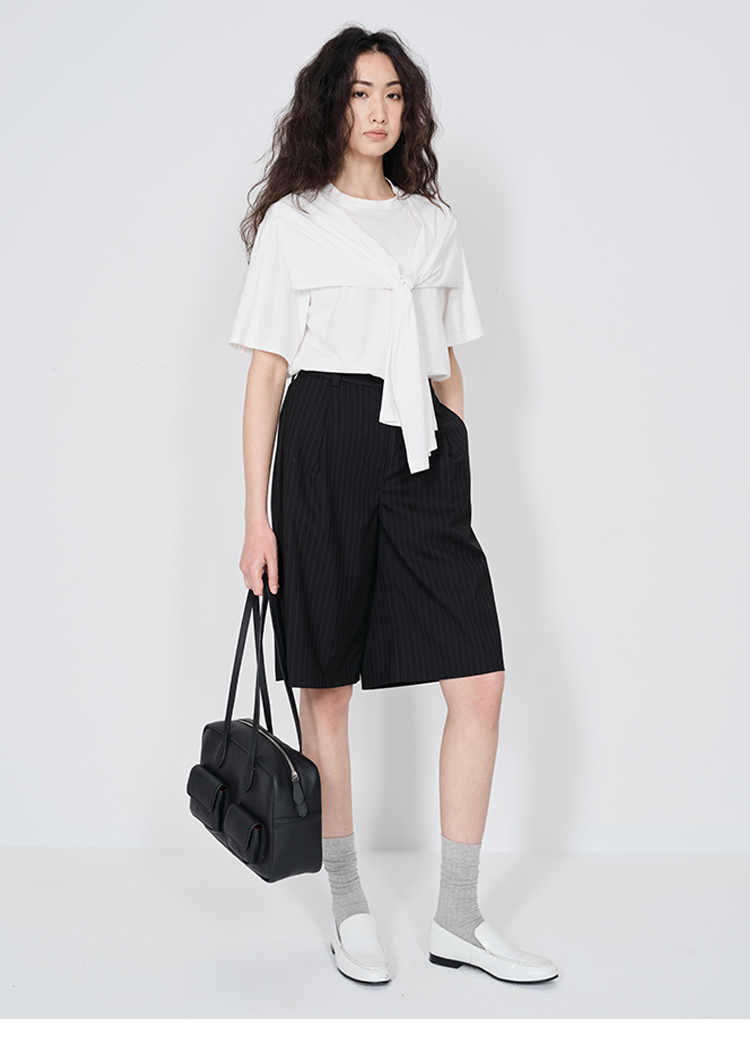 HIDEMI 小飞侠系列极简丝巾堆叠感多穿式水洗棉短袖t恤 燕麦米灰/白色/黑色