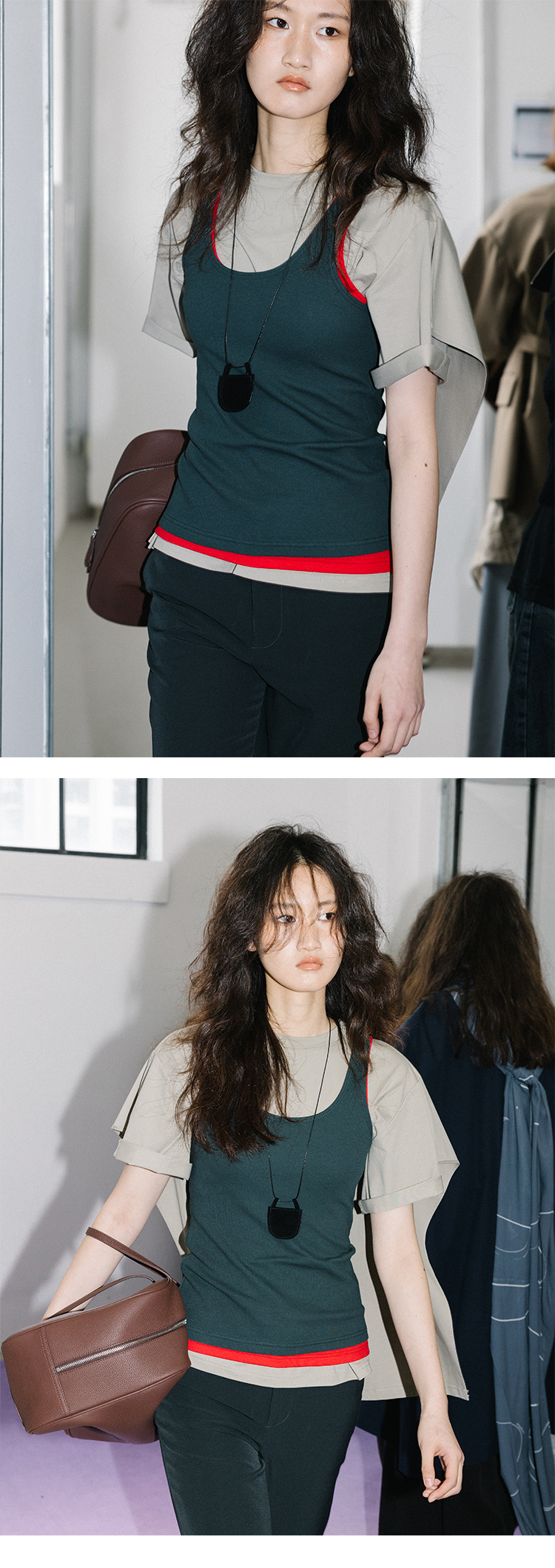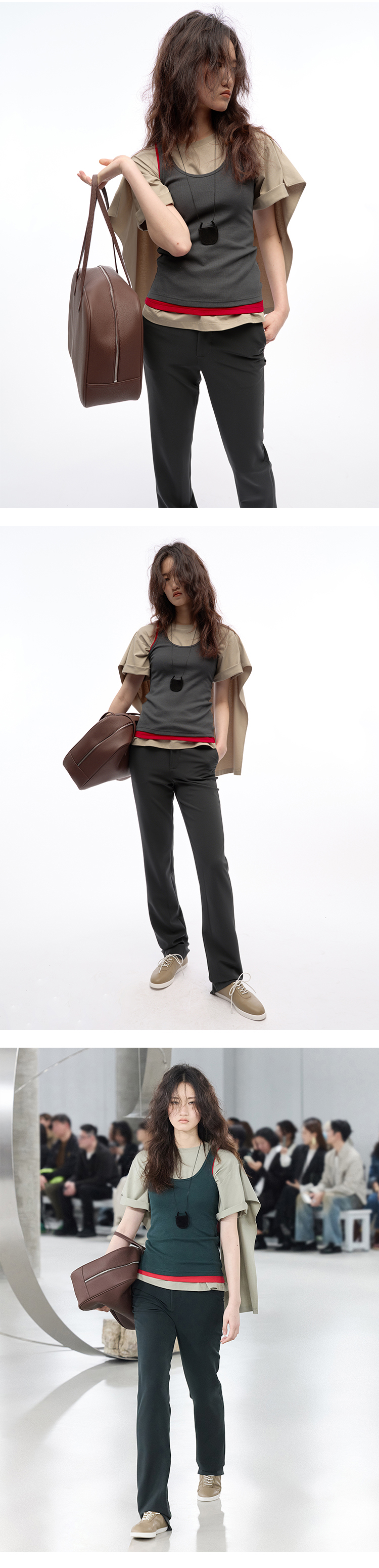 HIDEMI斜纹口袋设计感套装 杏仁卡其/藏蓝色