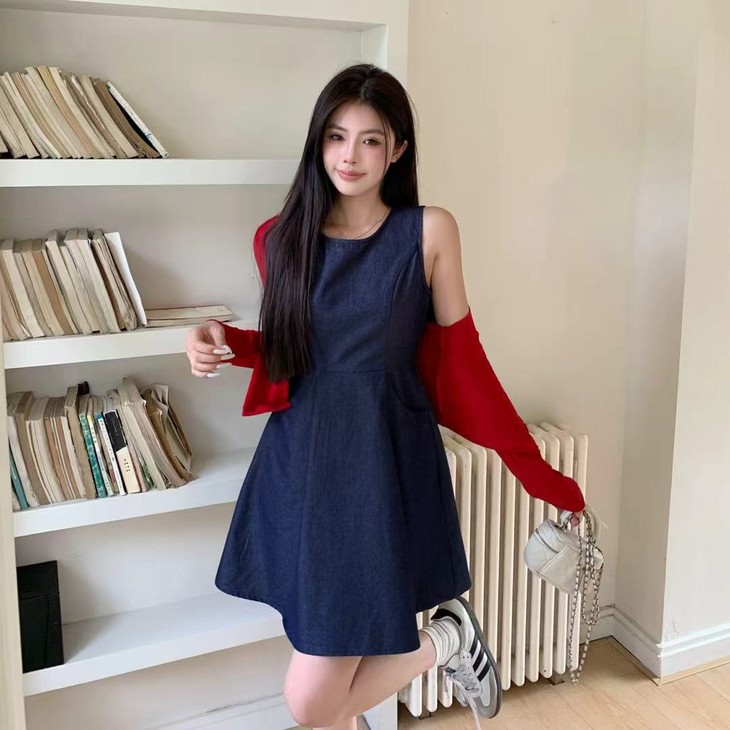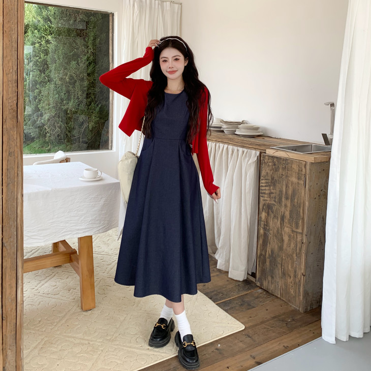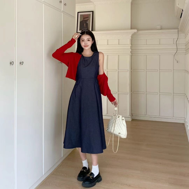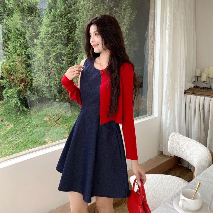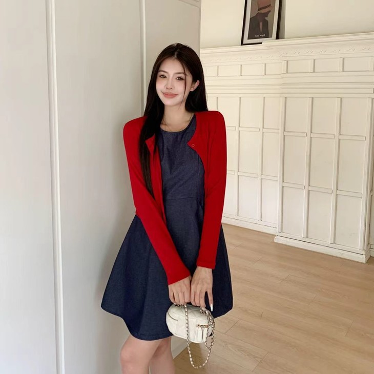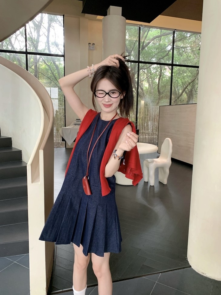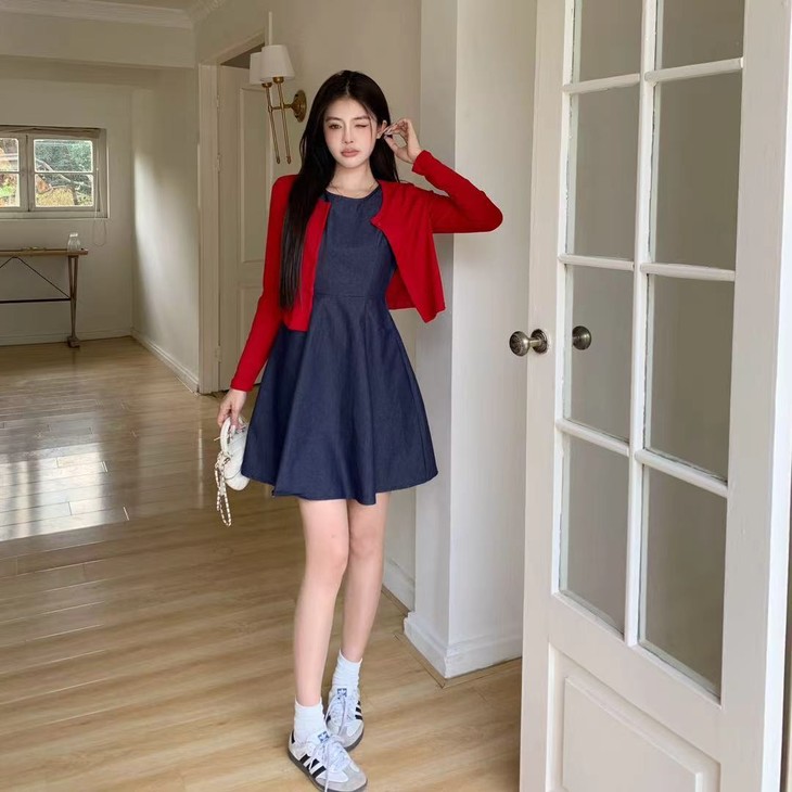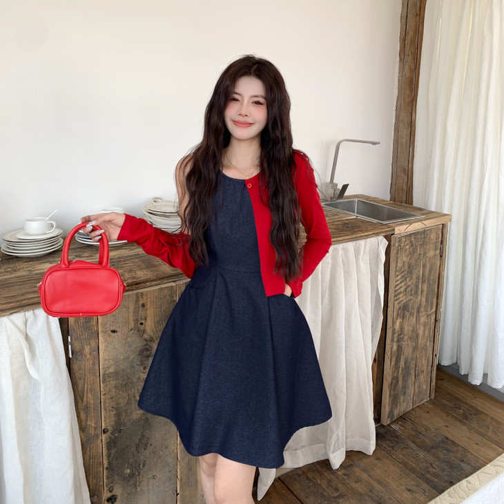 一件牛仔背心裙,邂逅秋日的温柔与浪漫。收腰设计勾勒曲线,樱桃开衫点缀甜美,穿上它,做秋日里最亮眼的复古女孩!!!