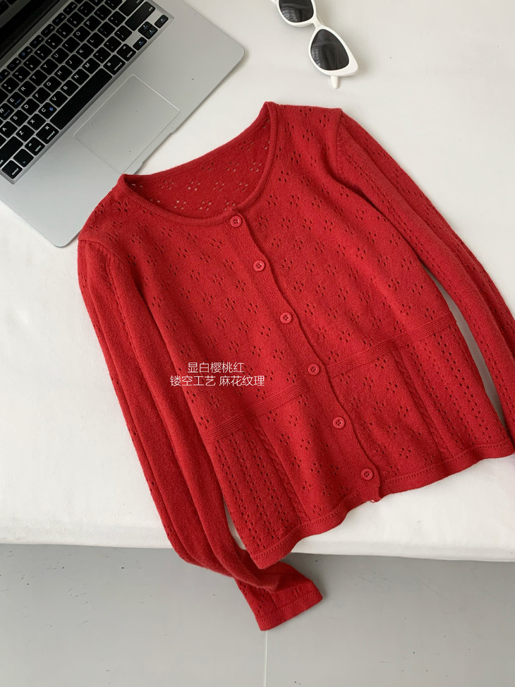 樱桃针织开衫: 樱桃刺绣: 精致小巧,点缀甜美氛围。 短款设计: 优化身材比例,搭配高腰裙更显腿长。 开衫款式: 可单穿可外搭,实用性高。 混搭风格:含6%羊毛的针织开衫,适合微凉天气,与丹宁的硬朗形成“刚柔并济”的对比