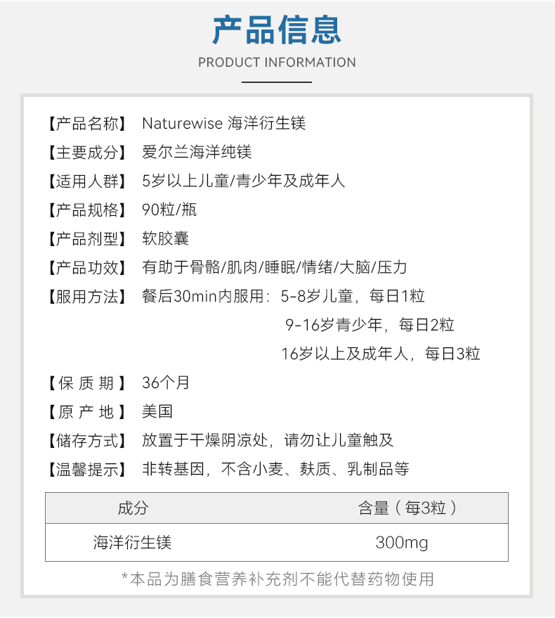 ³【小鲸营养-美国海洋衍生镁元素片】90粒装 72种海洋微量元素 100mg镁/粒 适5岁+ XN03-CRMM-XJJK