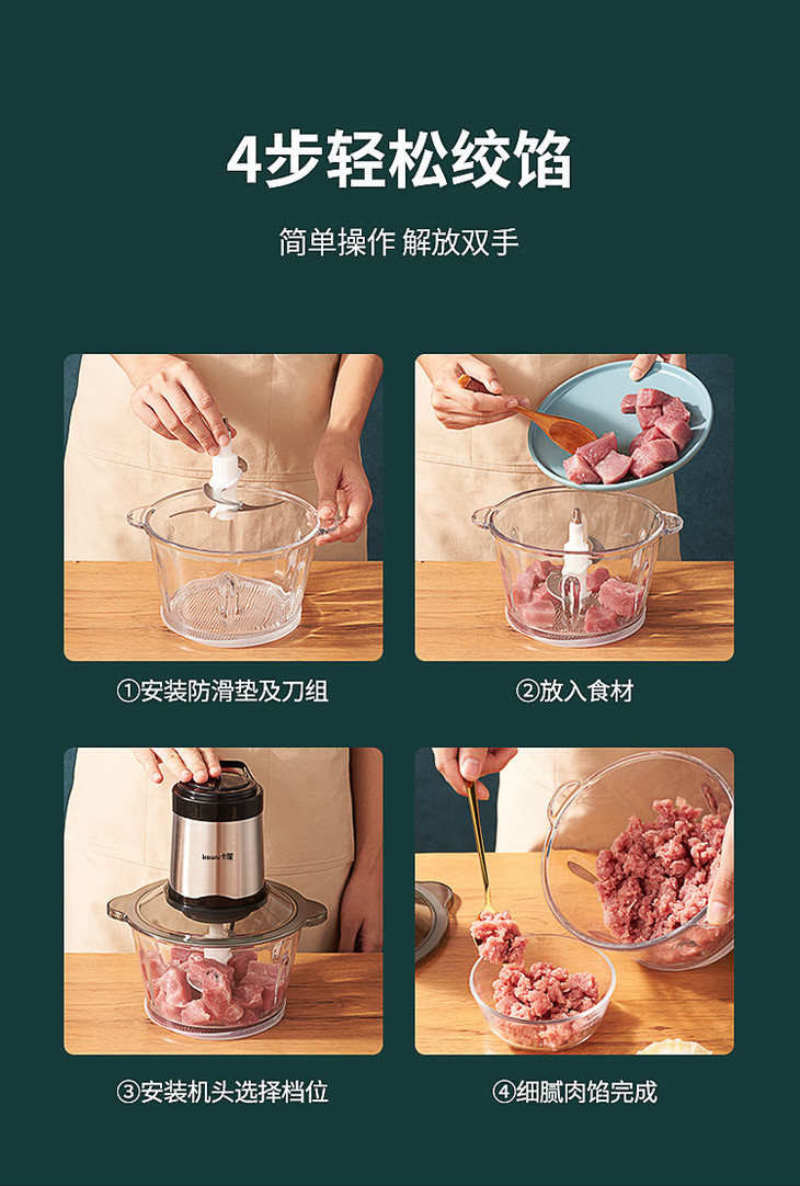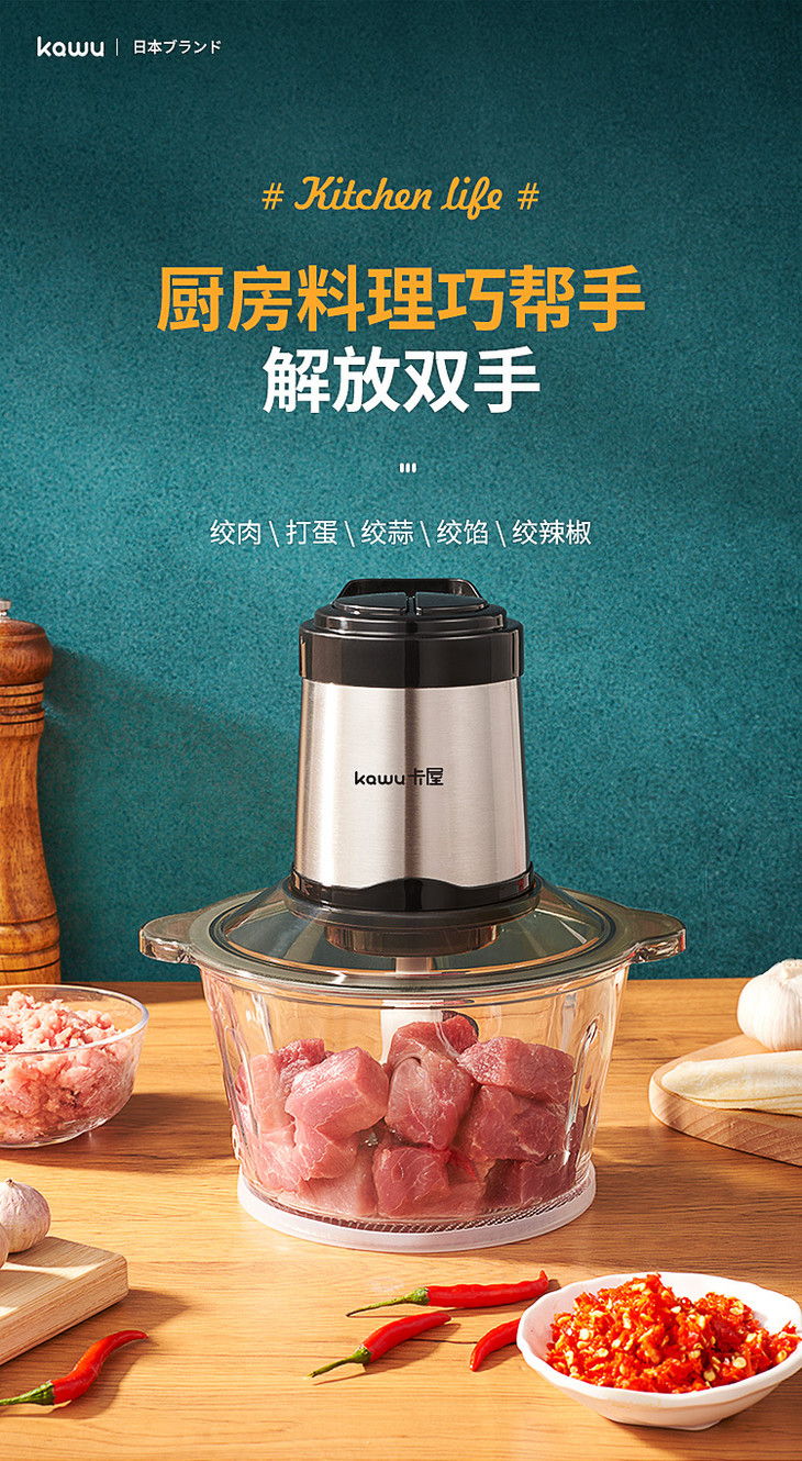 ✅一机绞百味 如果你家里的绞肉机只能绞肉, 那真的是太落伍啦! 这台卡屋绞肉机不仅可以绞肉馅,鸡蛋、蔬菜、辣椒、蒜、南瓜等也可以轻松绞碎哦! 这功能真的太齐全啦,丝毫不亚于一台全功能的料理机呀!