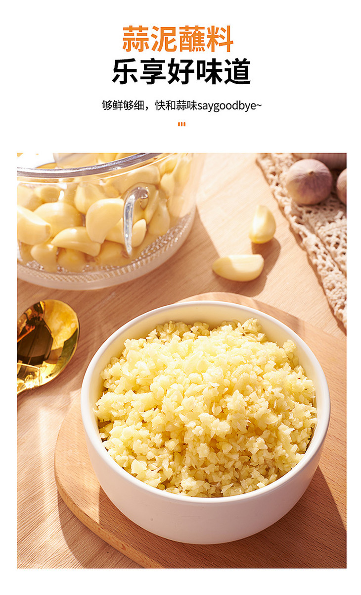 💥蒜泥 炖蹄花搭配着蒜泥吃才是真正的美味呢! 再也不需要自己剁蒜了,剥好的蒜放进去,轻轻按动按钮就可以啦,绞出来的蒜泥超级细腻!
