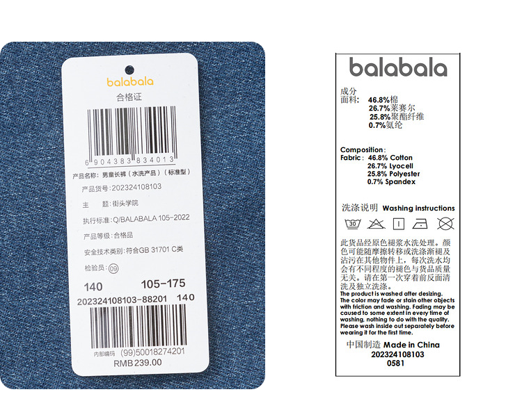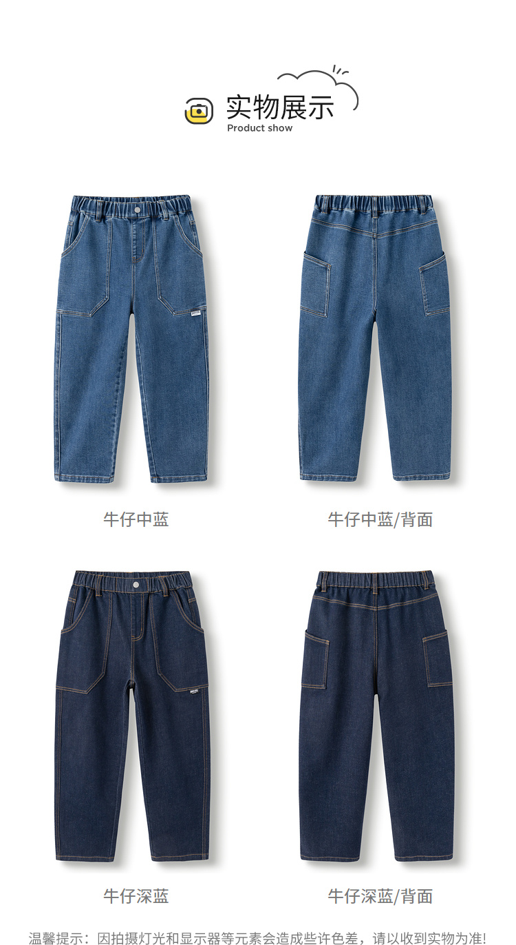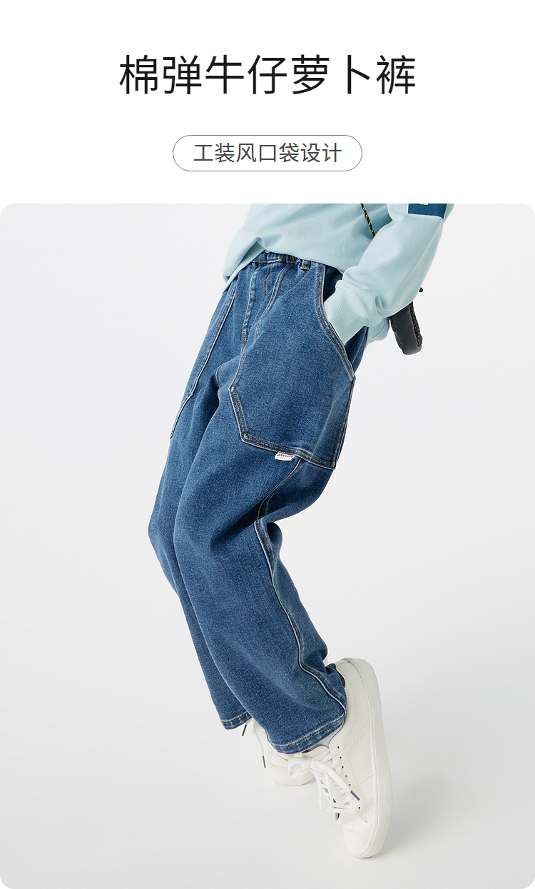 巴拉巴拉童装儿童裤子男童牛仔裤秋装长裤工装口袋时尚舒适潮酷