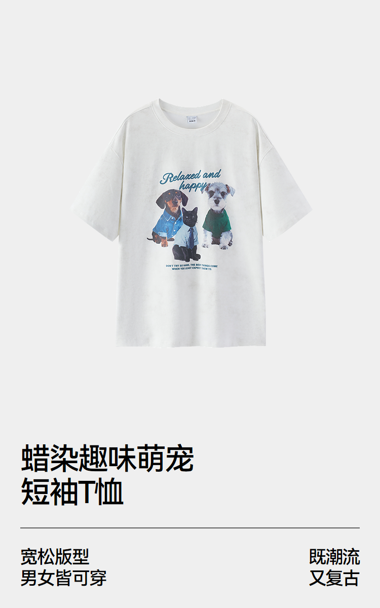 商场同款|森马短袖T恤男夏季蜡染针织衫2026新款情侣趣宠印花上衣