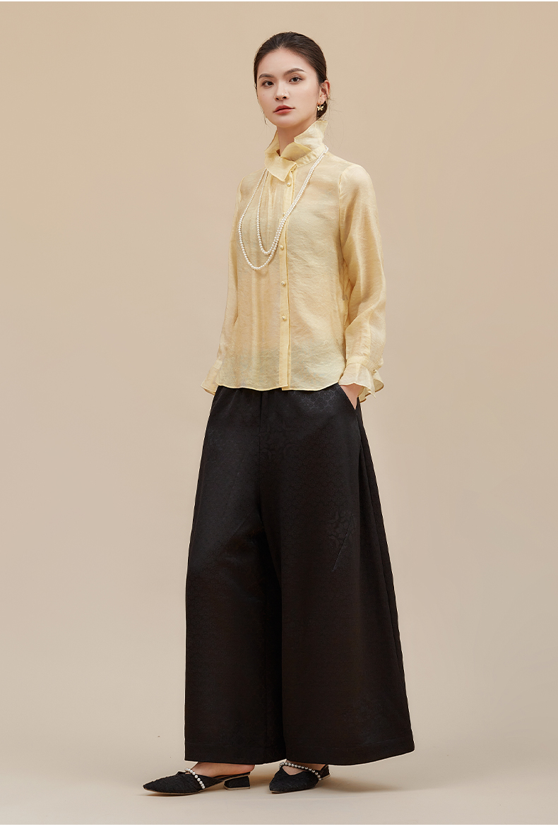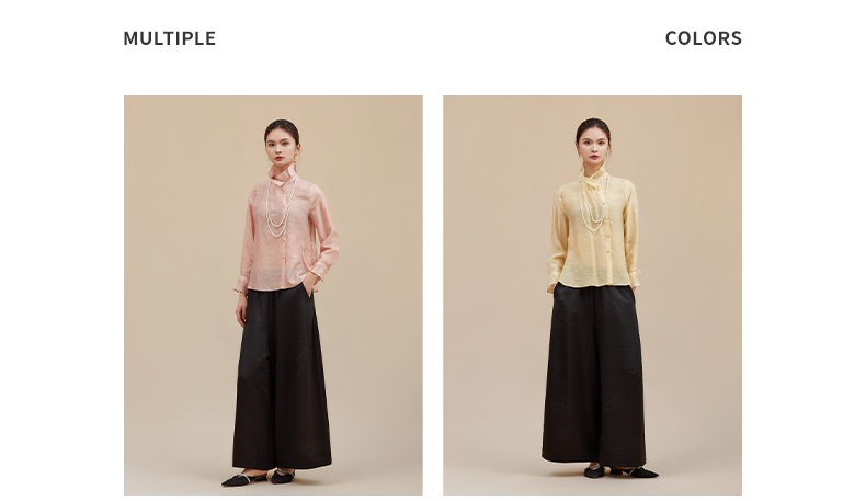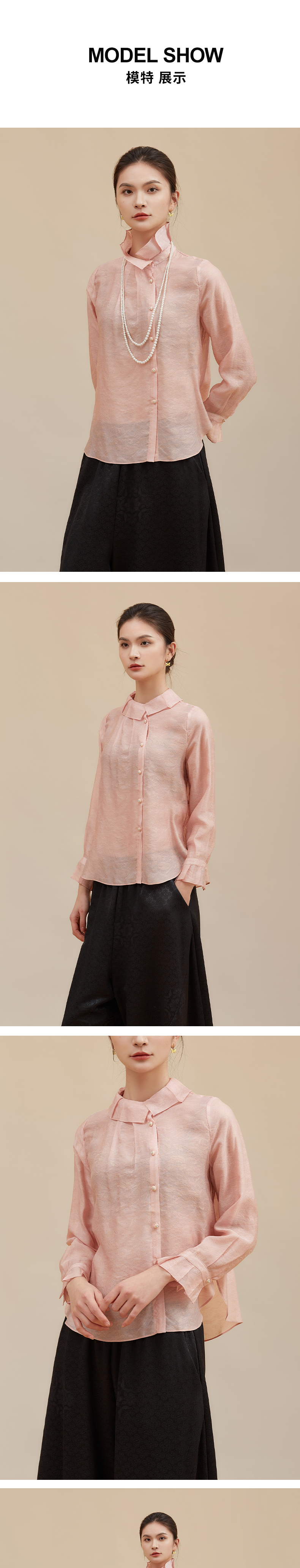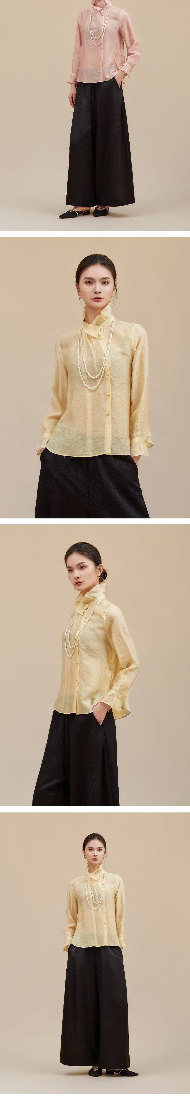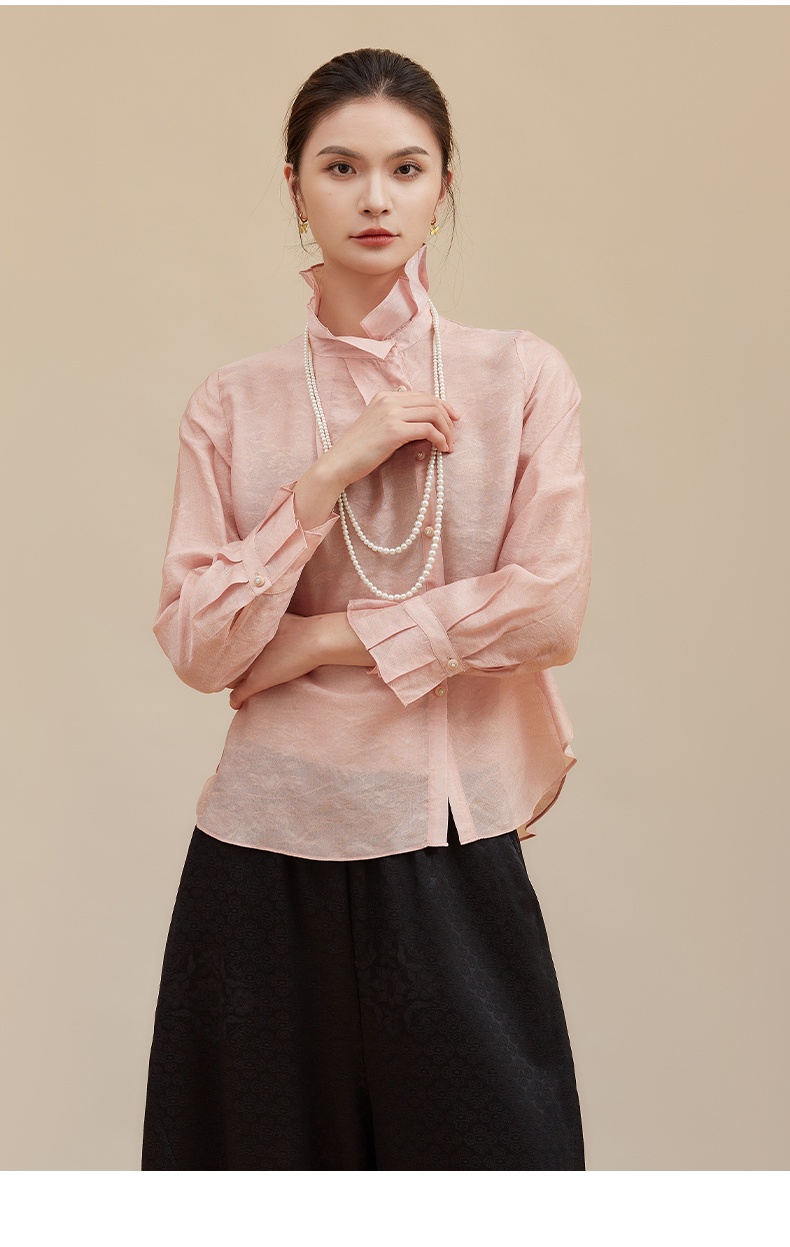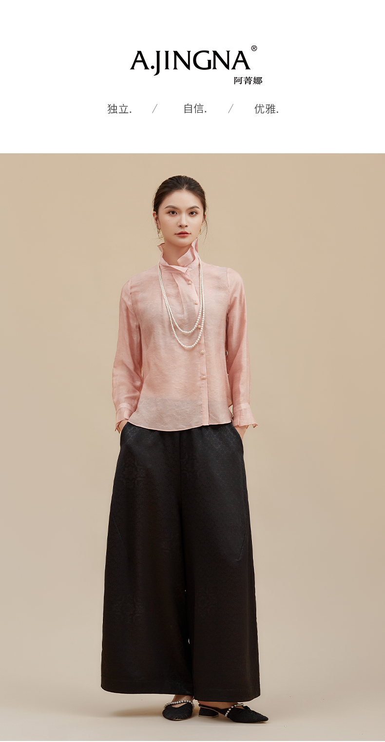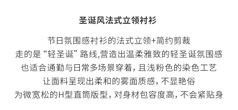 【莫兰迪色系】阿菁娜冬季新款轻圣诞法式衬衫莫兰迪粉色与黄系温柔优雅立领翻折两穿设计F30D209002