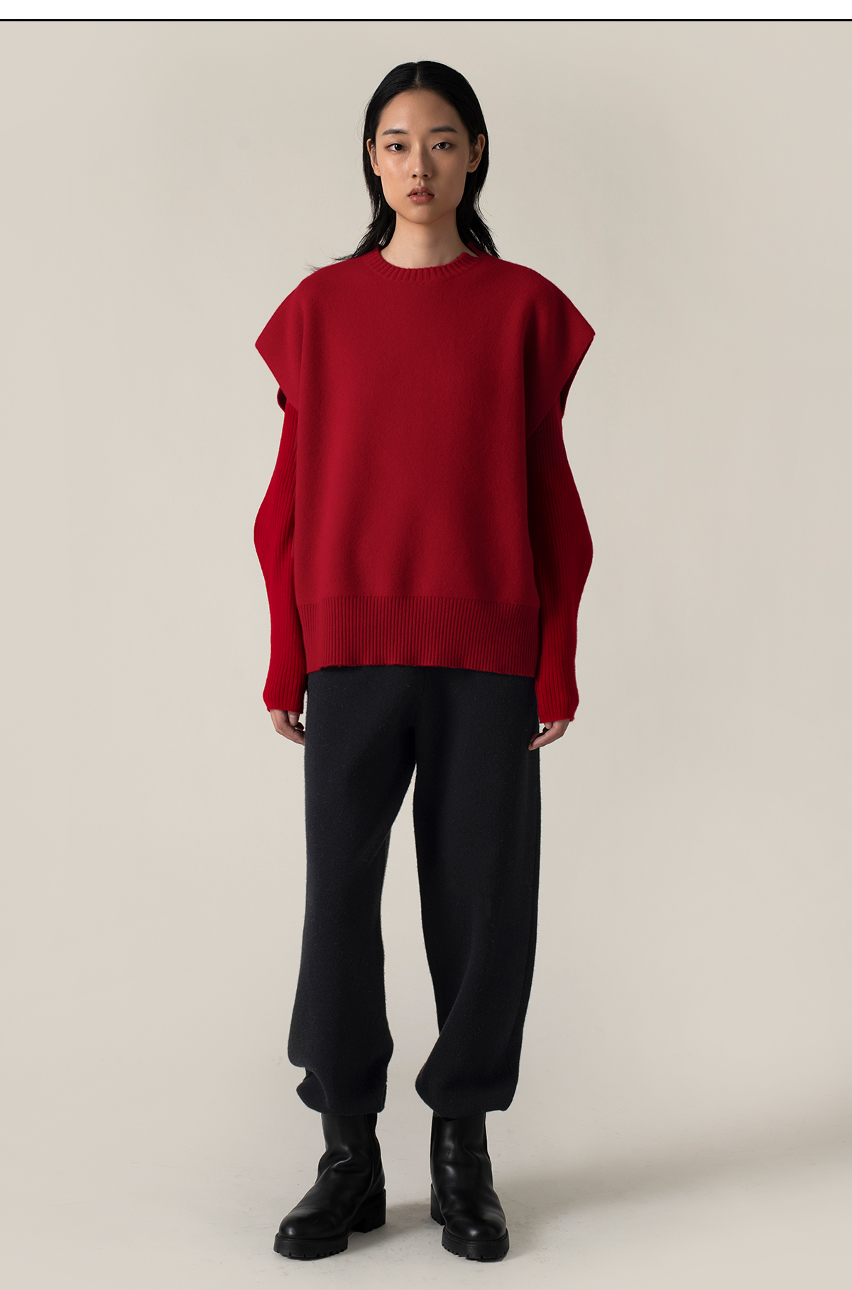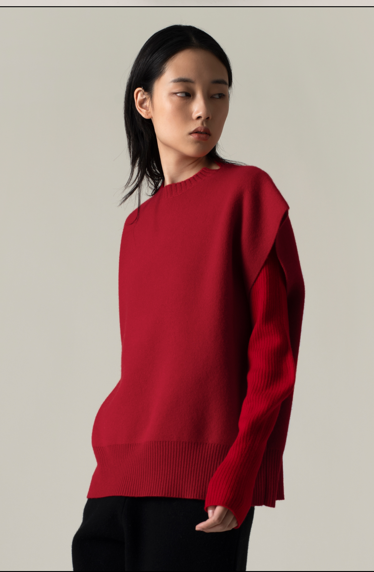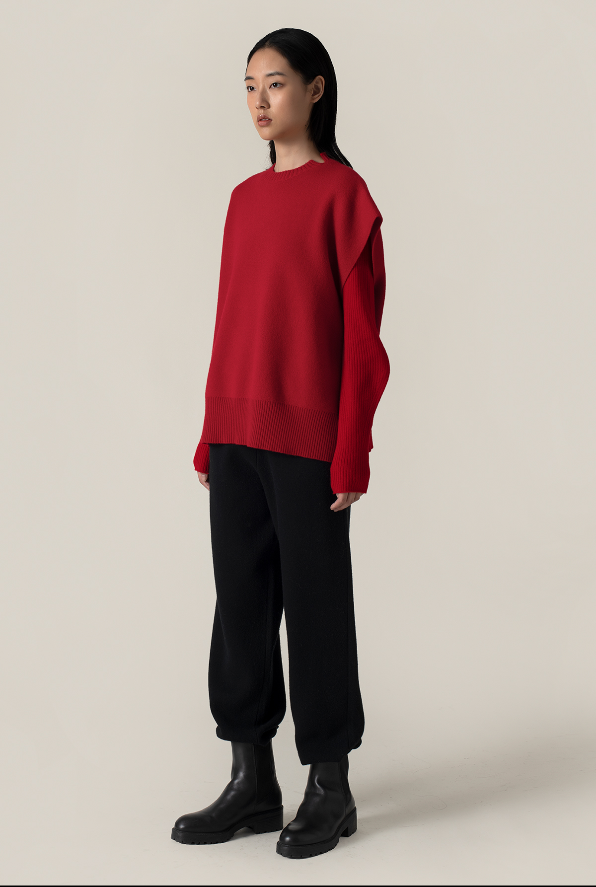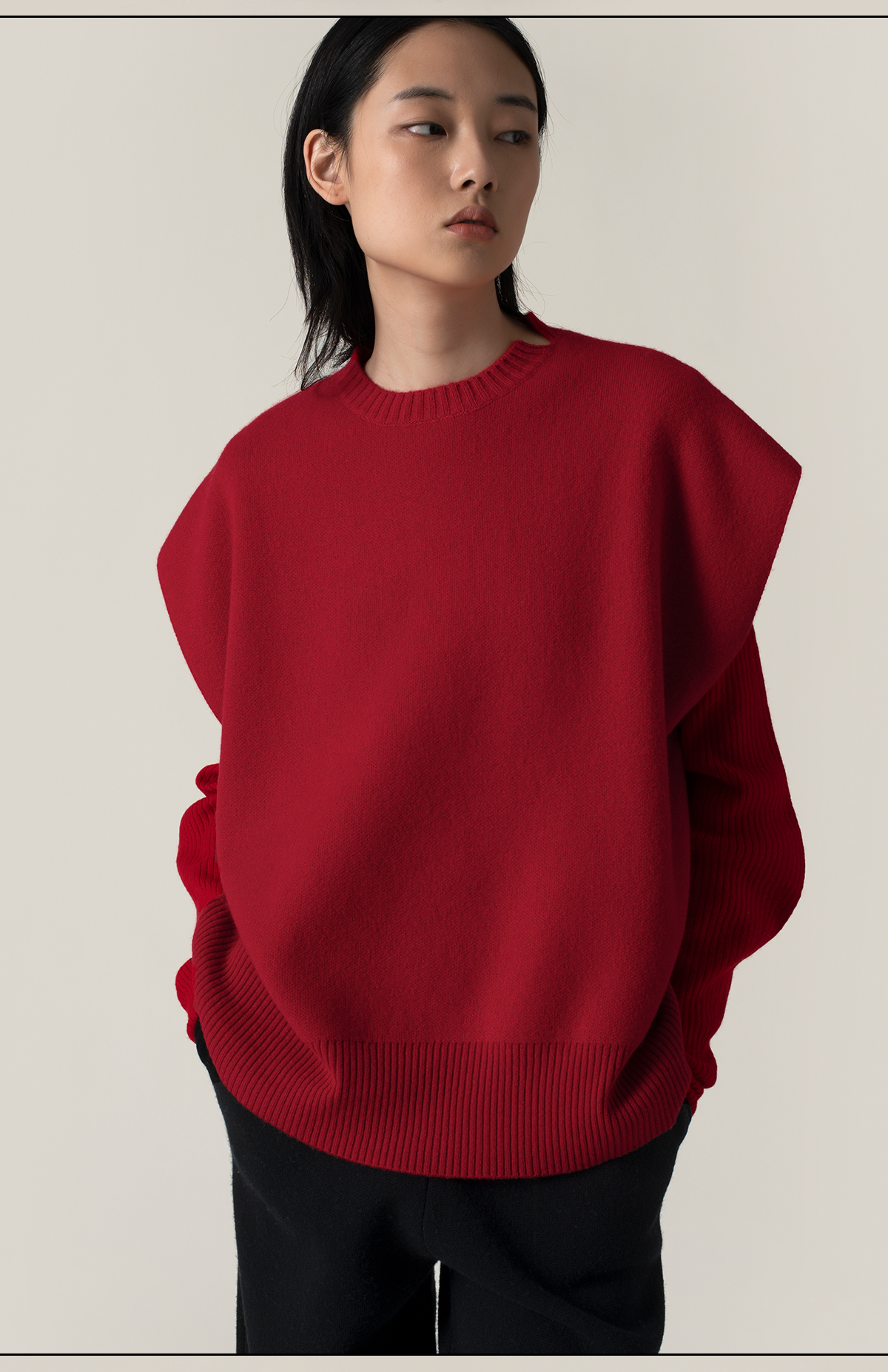 322工房叠搭造型羊毛羊绒廓形针织马甲2022新款纯色百搭背心A968