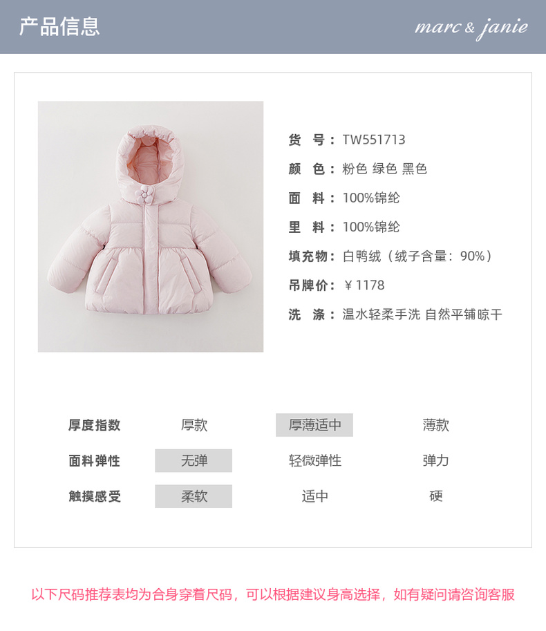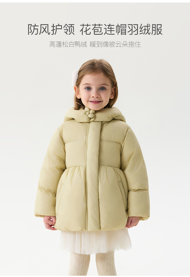 【无氟防泼水】马克珍妮女童立体花朵花苞连帽羽绒服2025年冬装新款551713