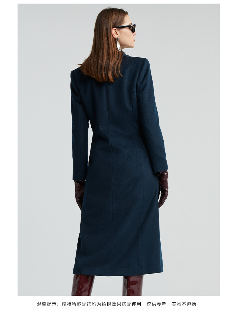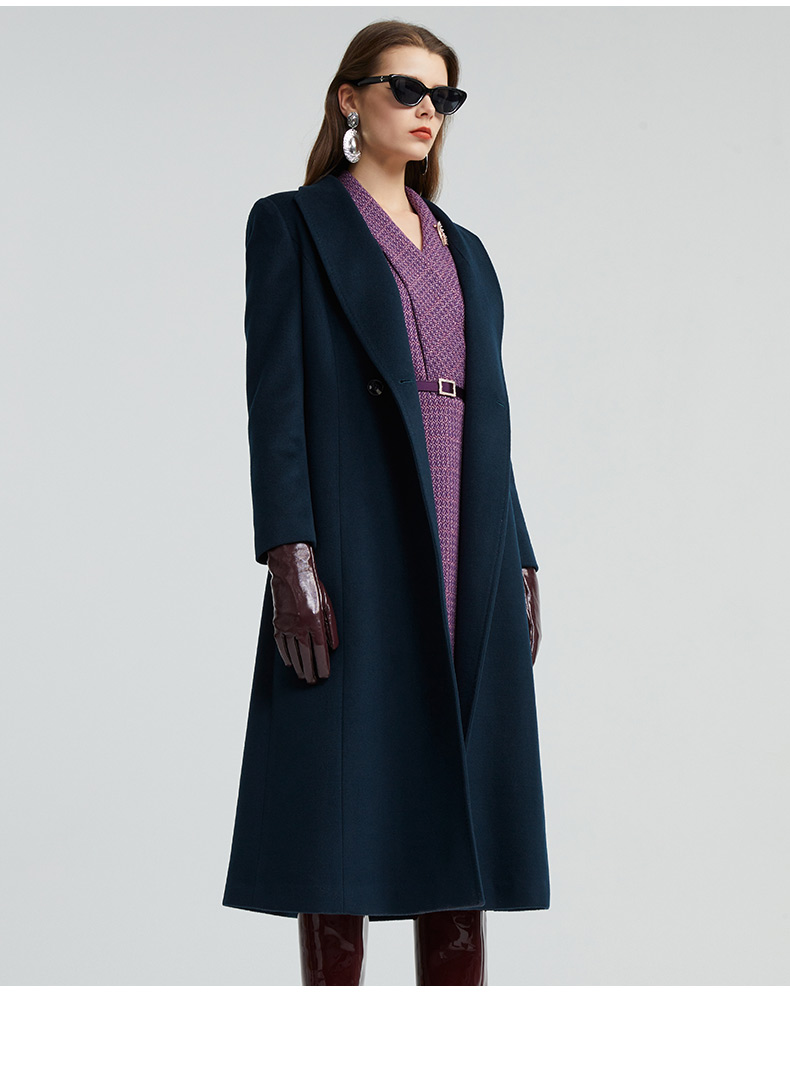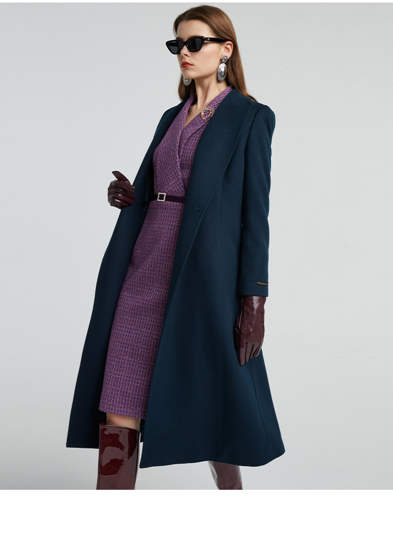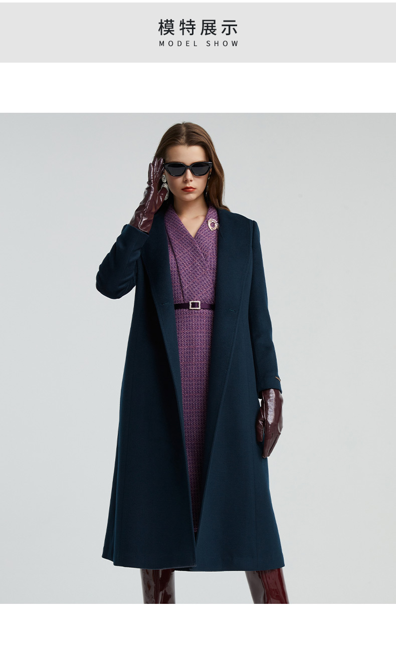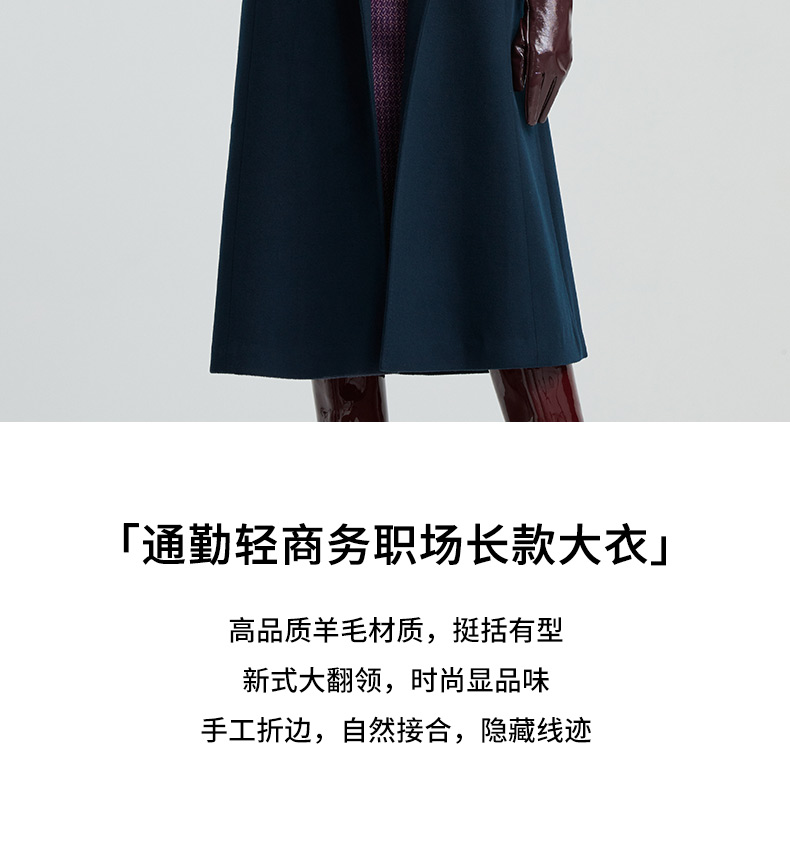 皮尔卡丹女装大衣长款翻领秋冬保暖通勤羊毛呢外套P1481C1977L2
