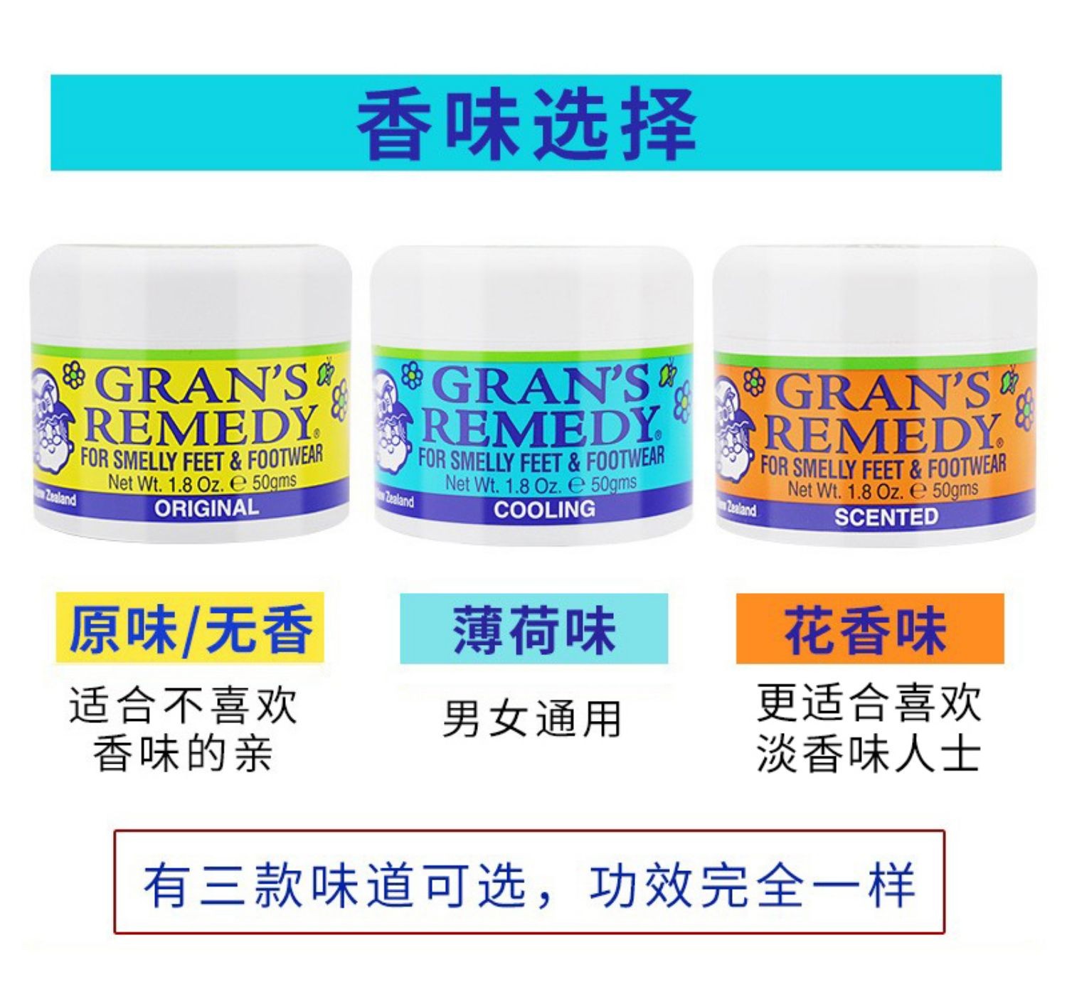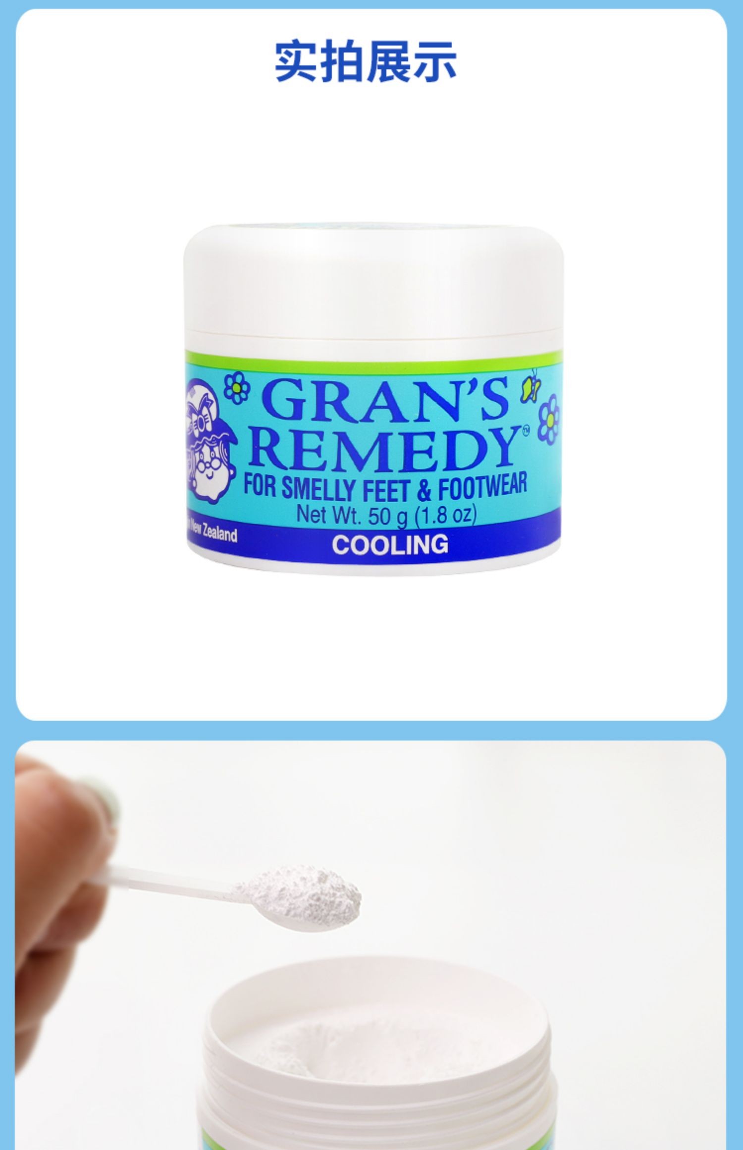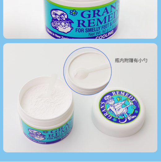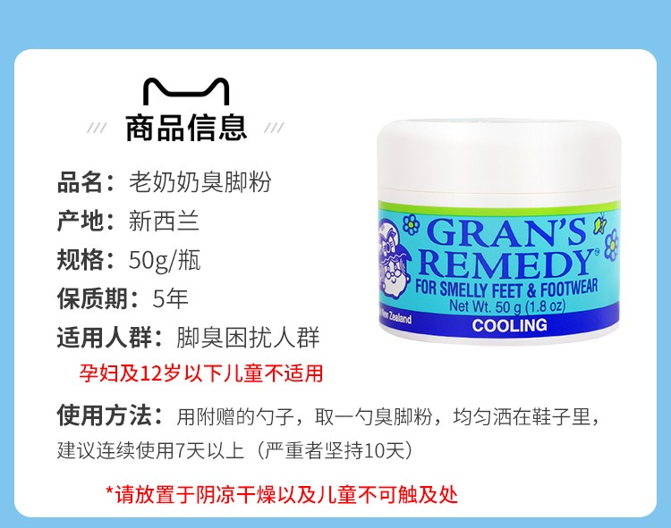【足部抑汗除味推荐】新西兰老奶奶运动除脚汗味脚臭粉男女通用50g/瓶【中欧班列精选】