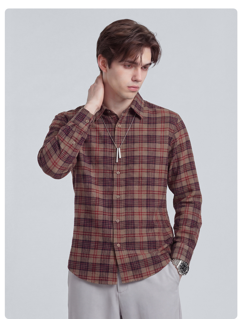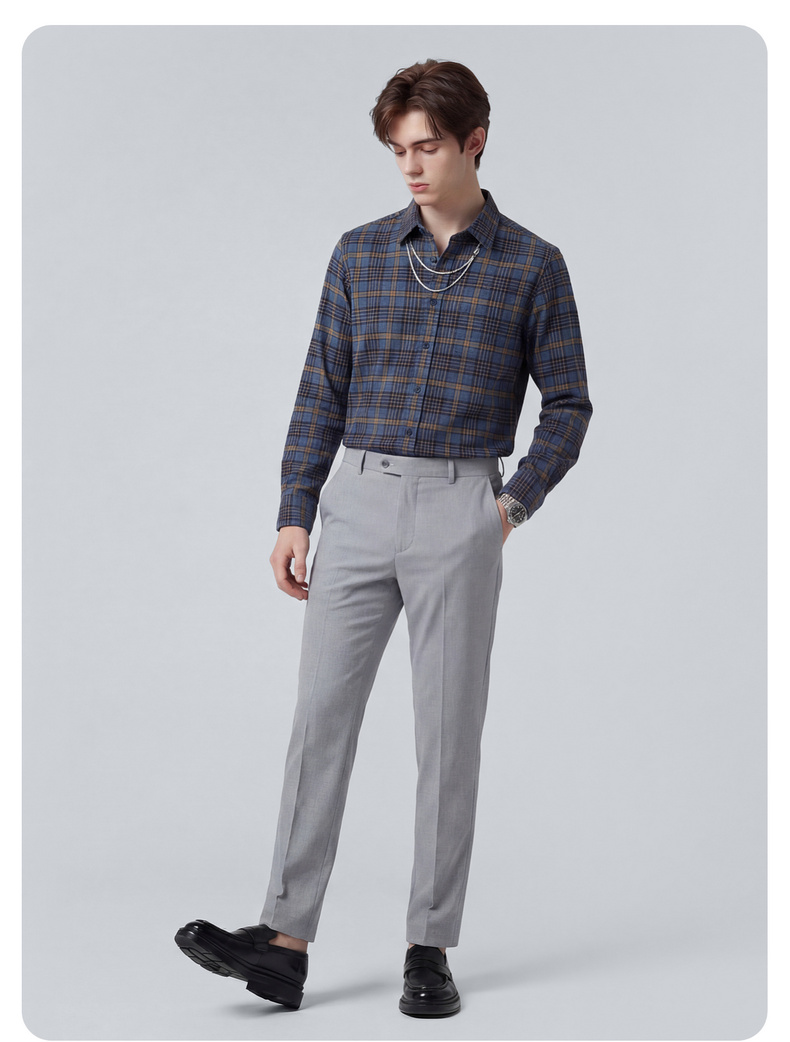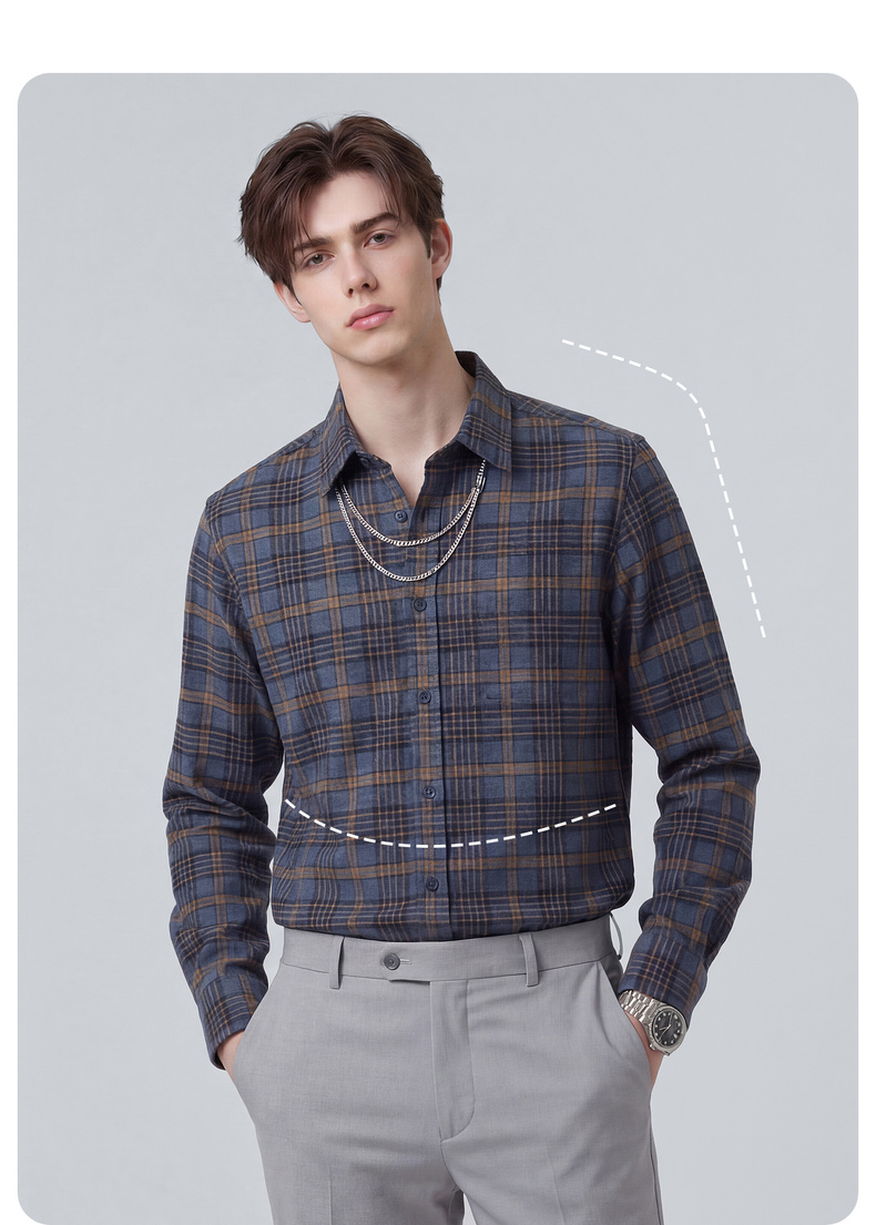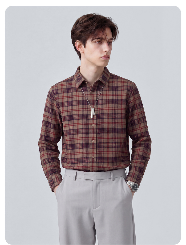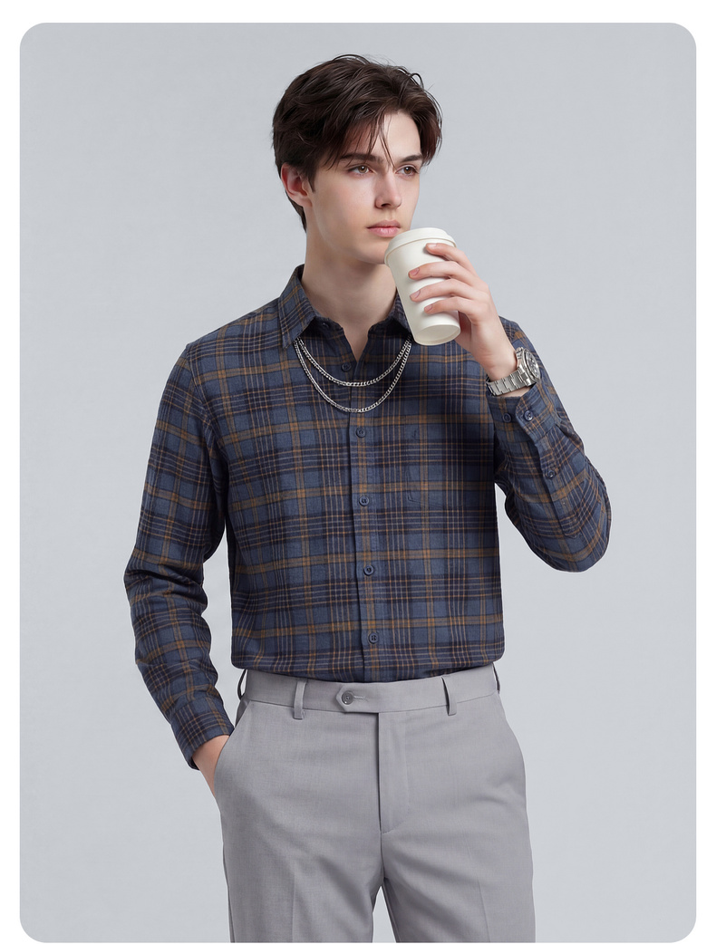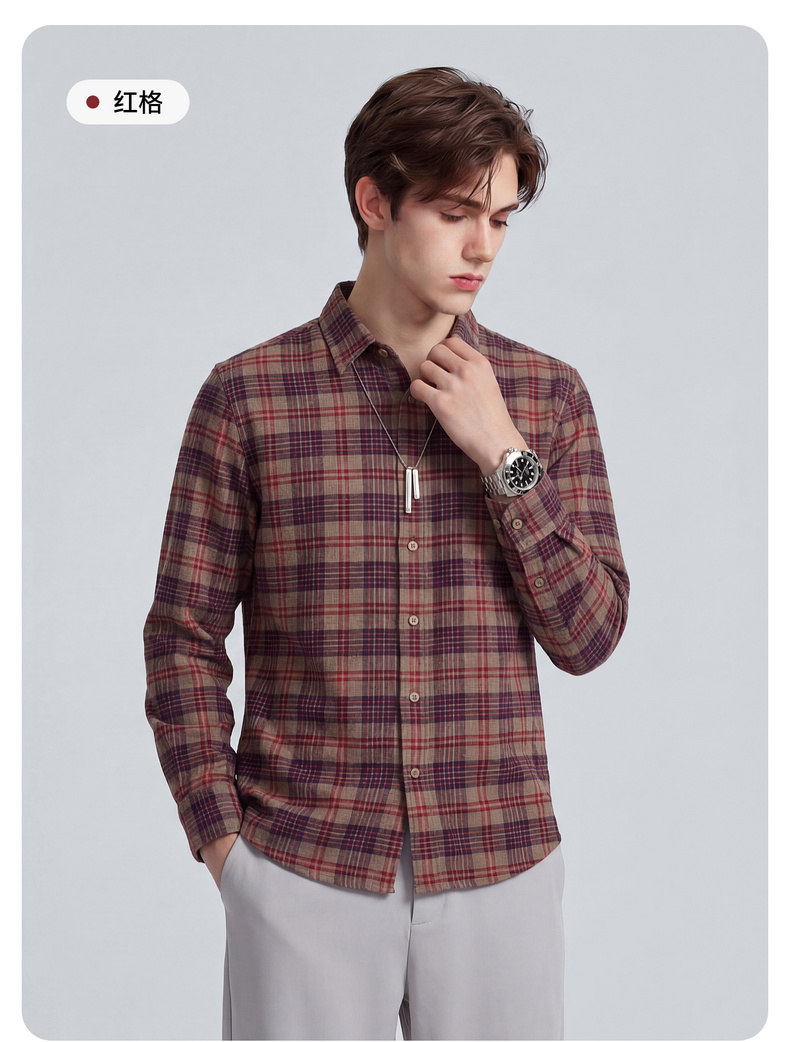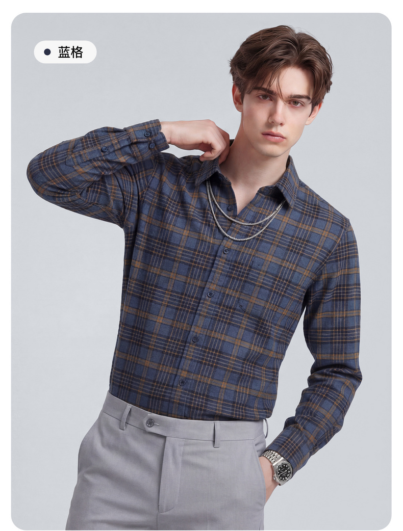 【含棉&含羊毛】圣得西男士格纹长袖衬衫2026新款春季通勤风上衣