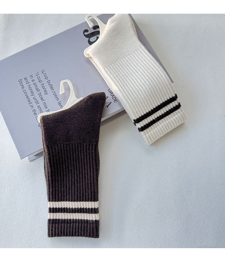 袜子女简约条纹暖绒中筒袜纪念日百货门店同款165593596