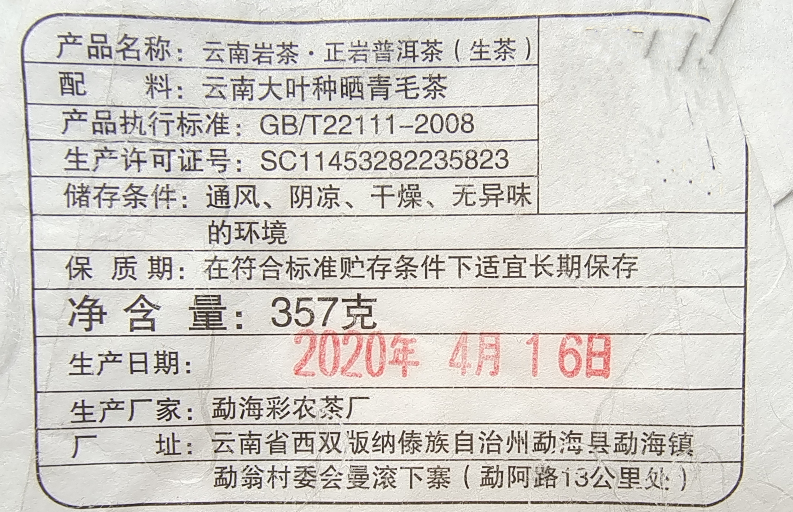 彩农茶|2020春云南岩茶正岩古树青饼