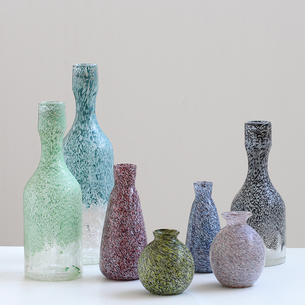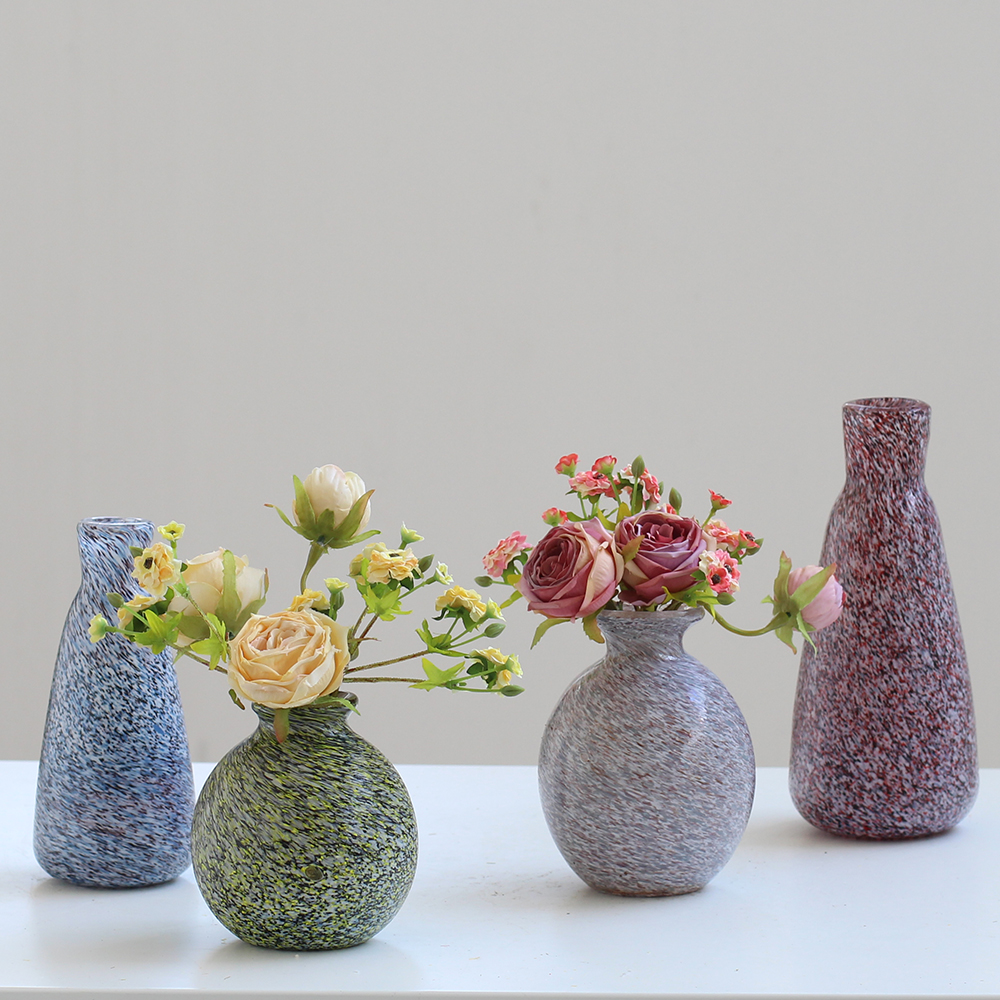 美式迷你彩色冰裂纹透明花瓶创意水培玻璃客厅电视柜桌面软装摆件