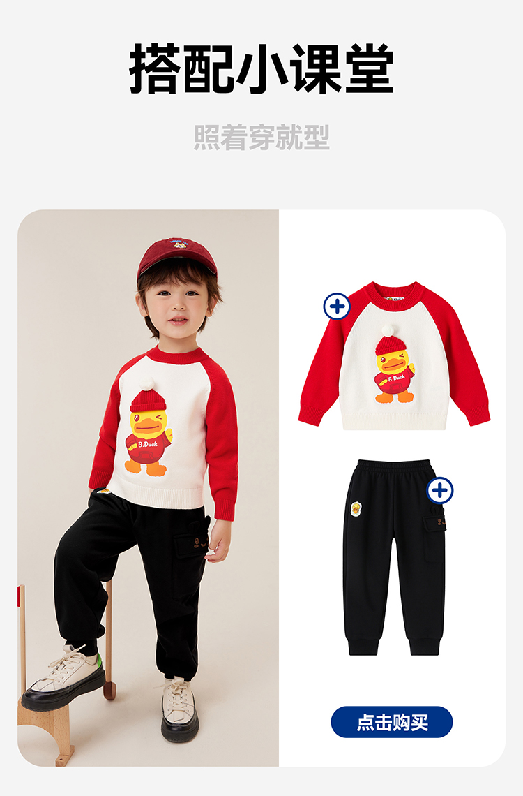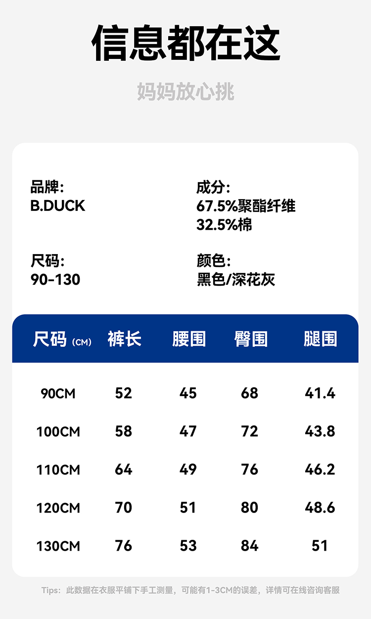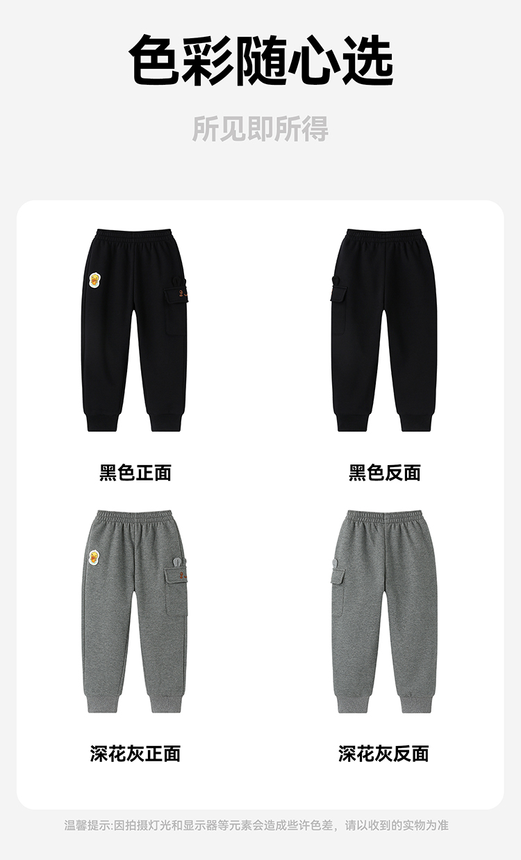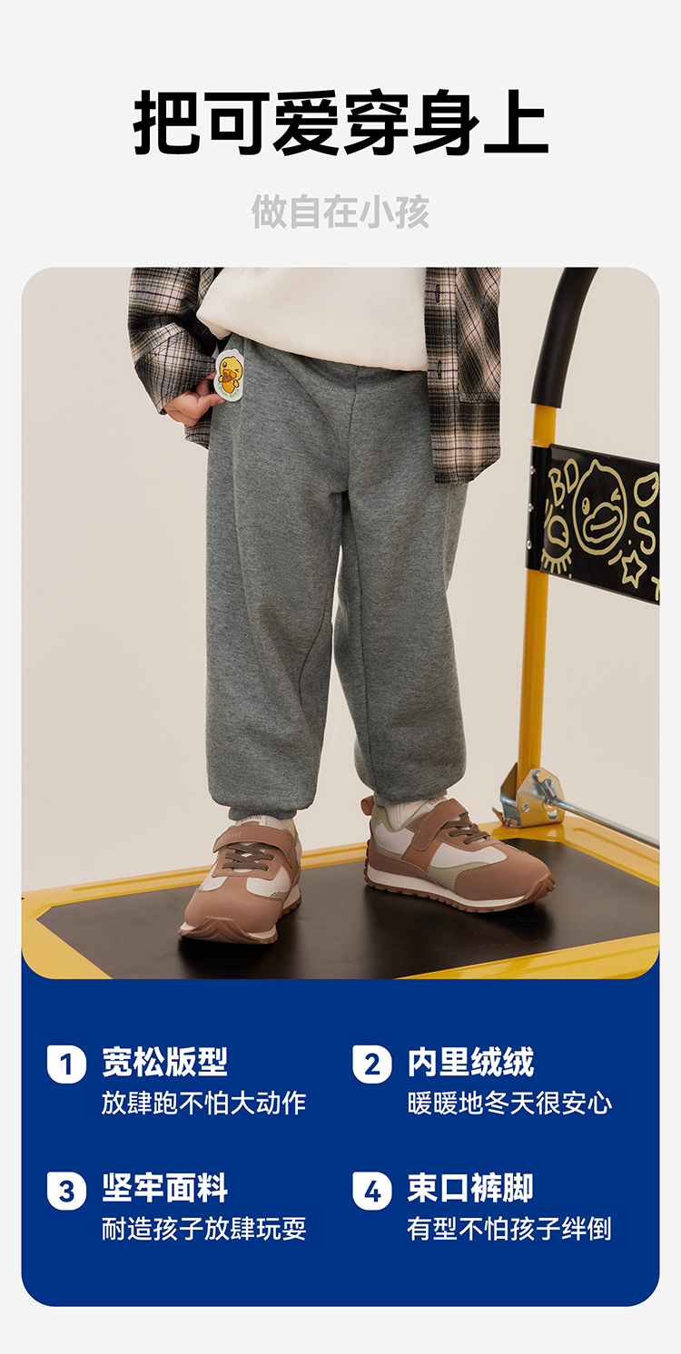 B.Duck小黄鸭童装宽松休闲长裤冬季男童保暖束脚裤90-130 BF5563905
