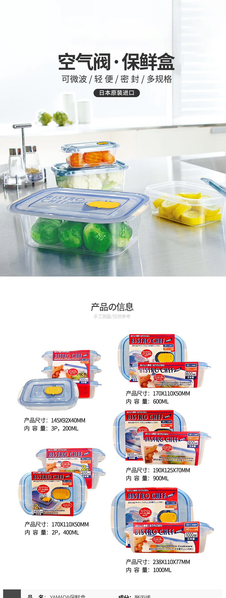 日本进口YAMADA保鲜盒