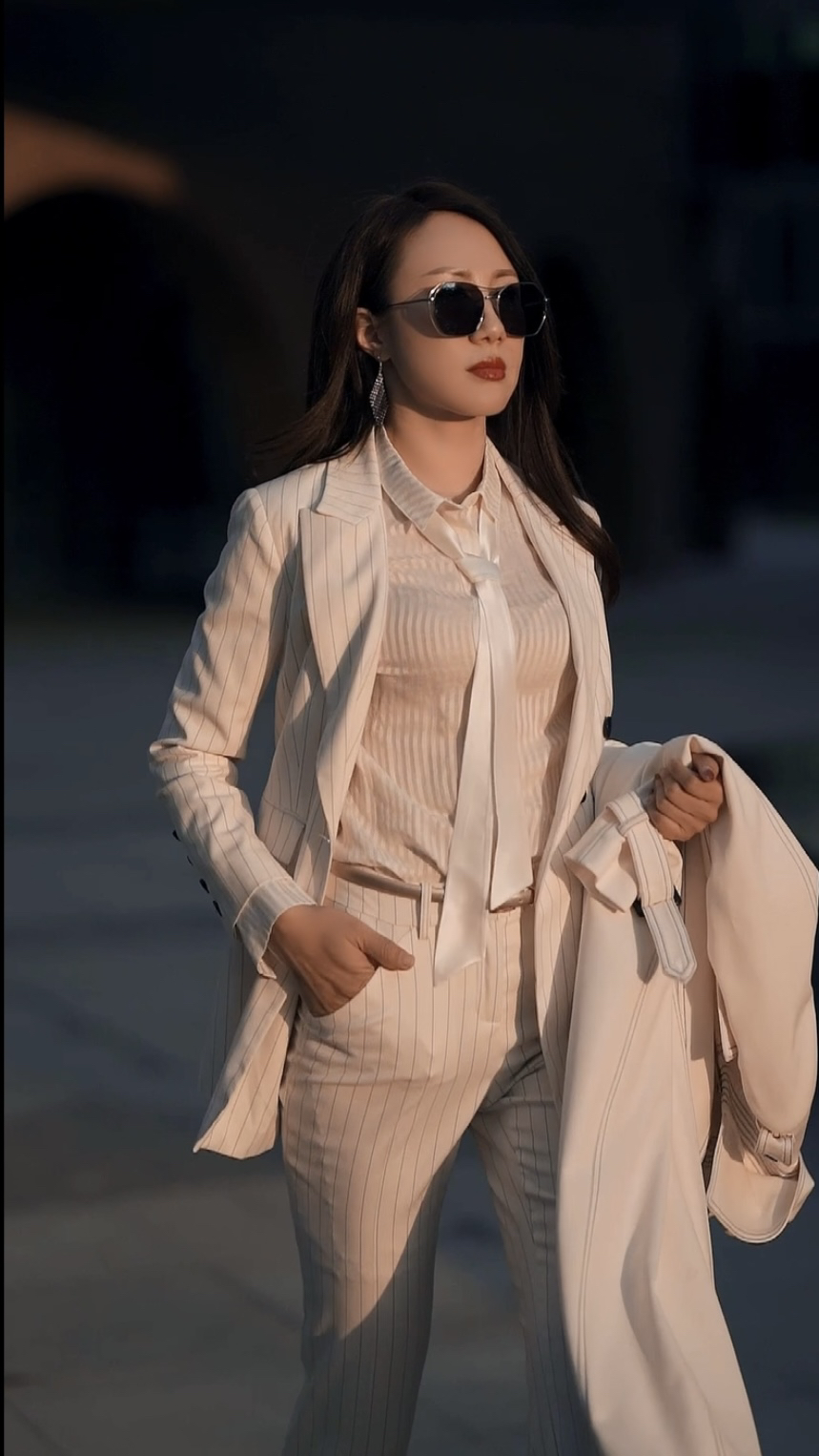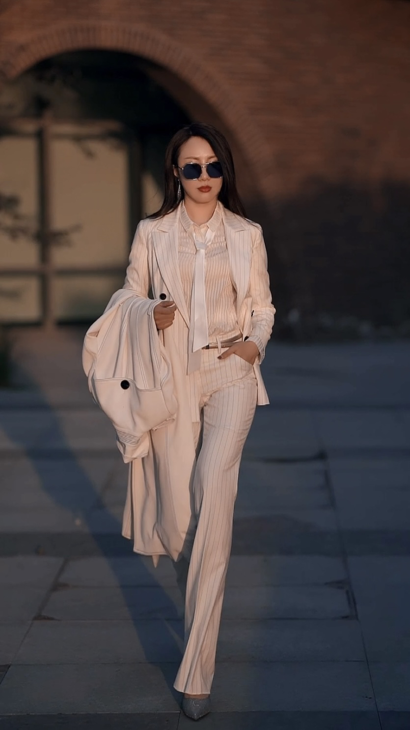 “锋芒白刃“J81A2289A颈袖添香春秋时尚气质女神范职业装正装洋气御姐风小西装套装J81A2289A