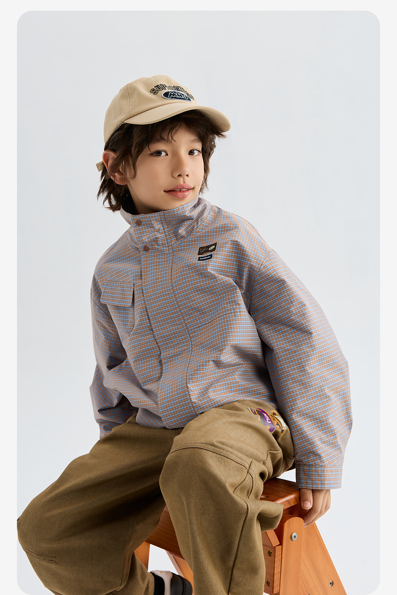 MANHOJIA【哈灵顿夹克】儿童外套春新品设计感学院复古格纹外套
