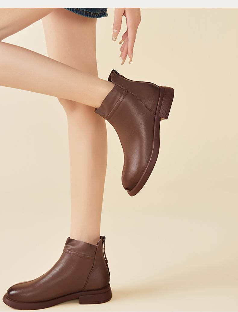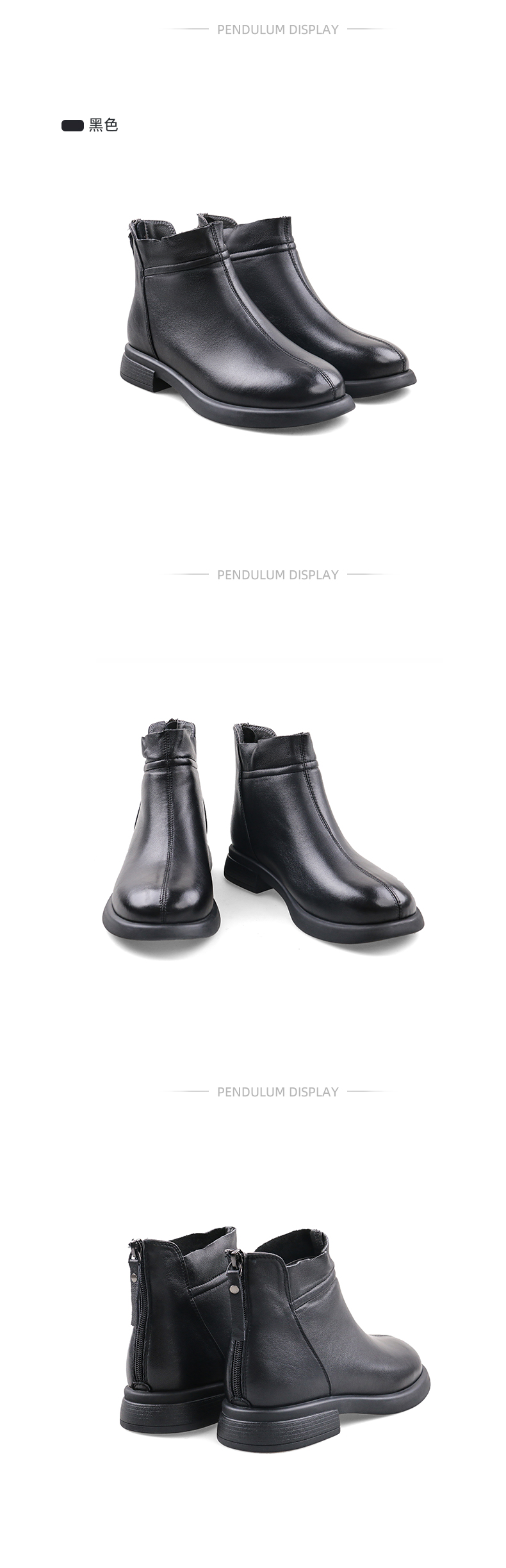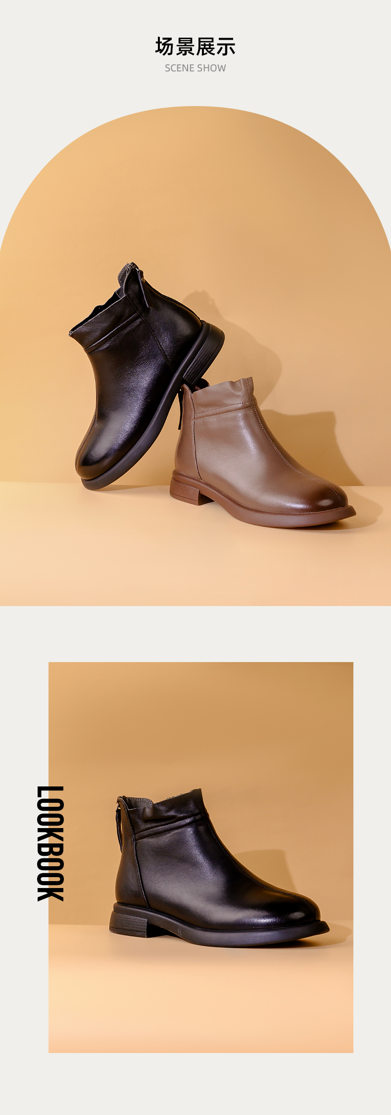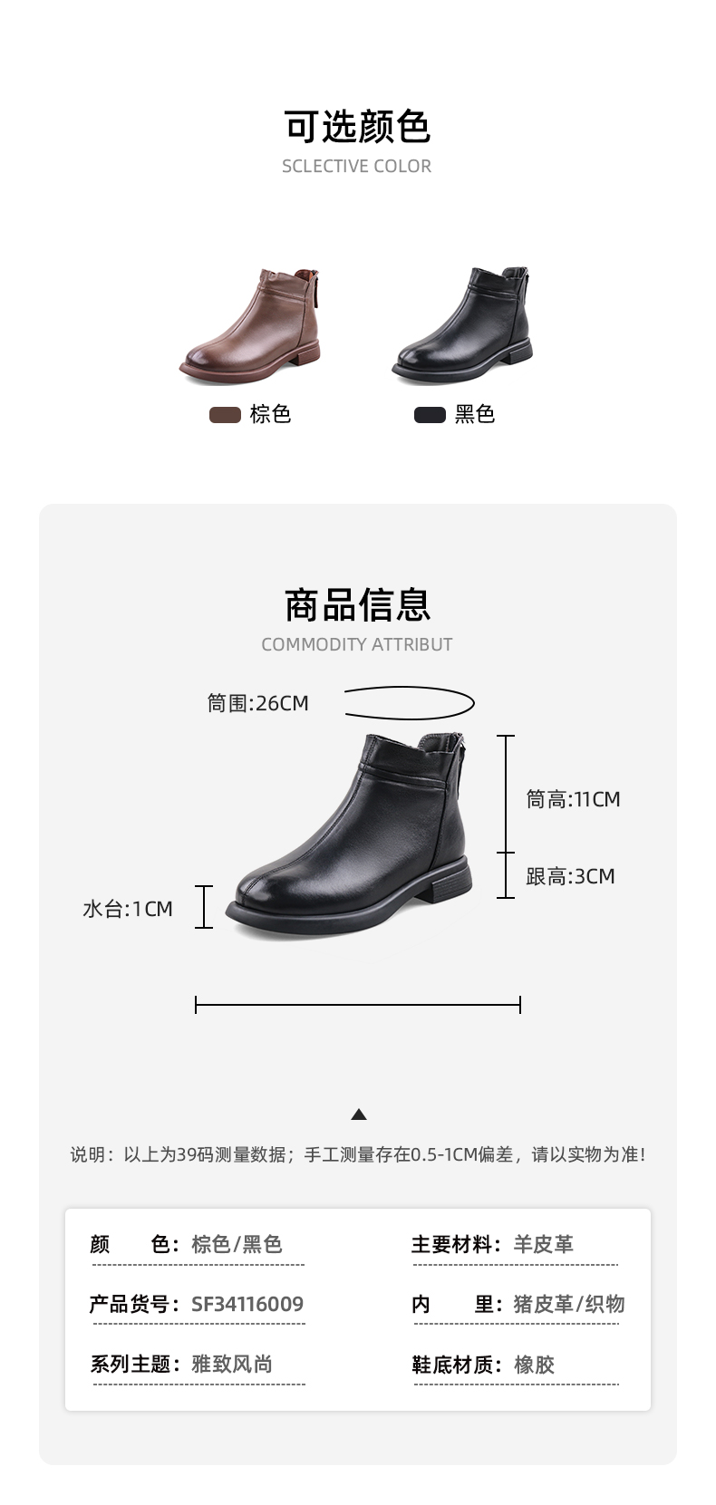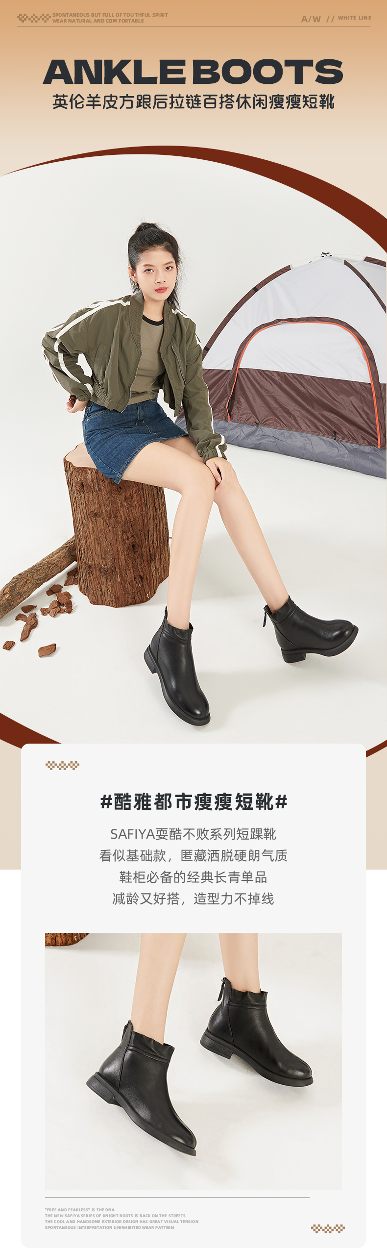 Safiya/索菲娅 2024冬季英伦羊皮方跟后拉链百搭休闲瘦瘦短靴 SF44116009/SF44118009