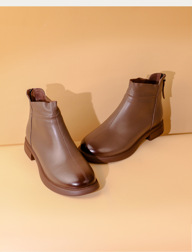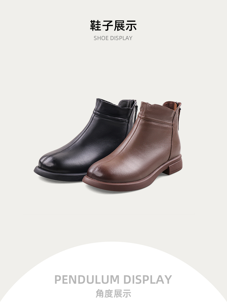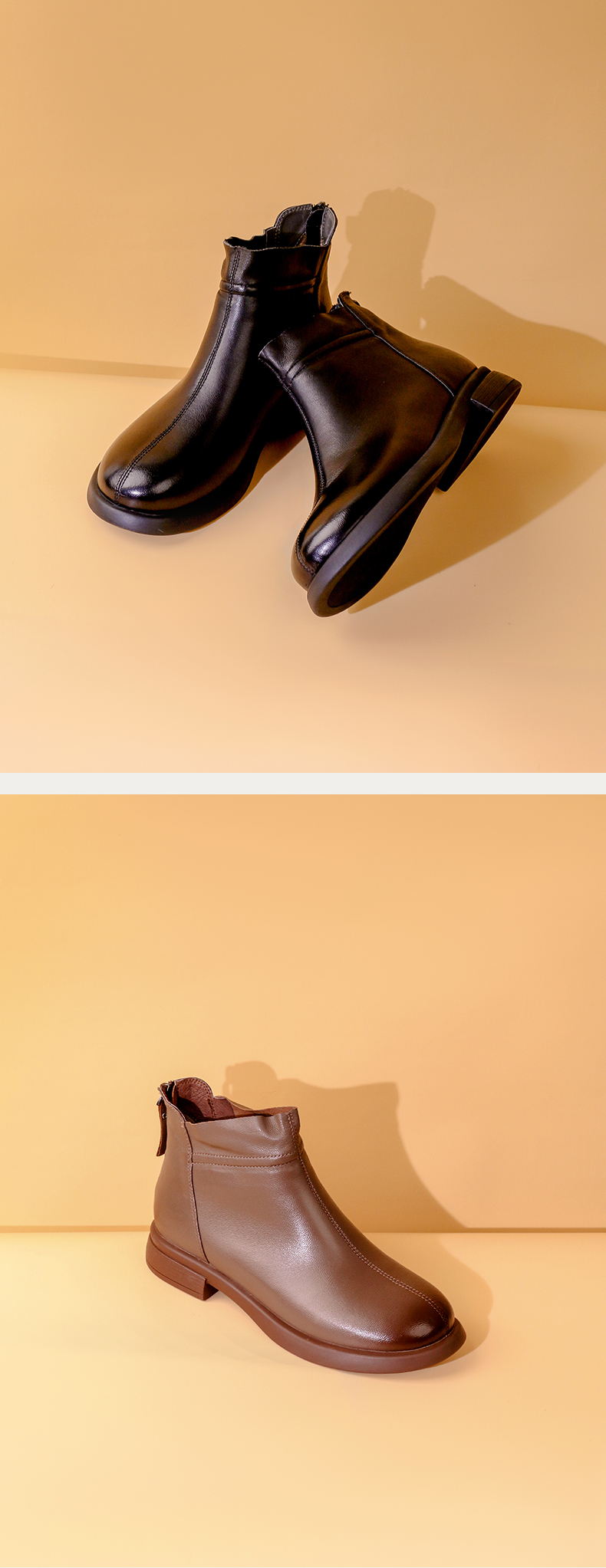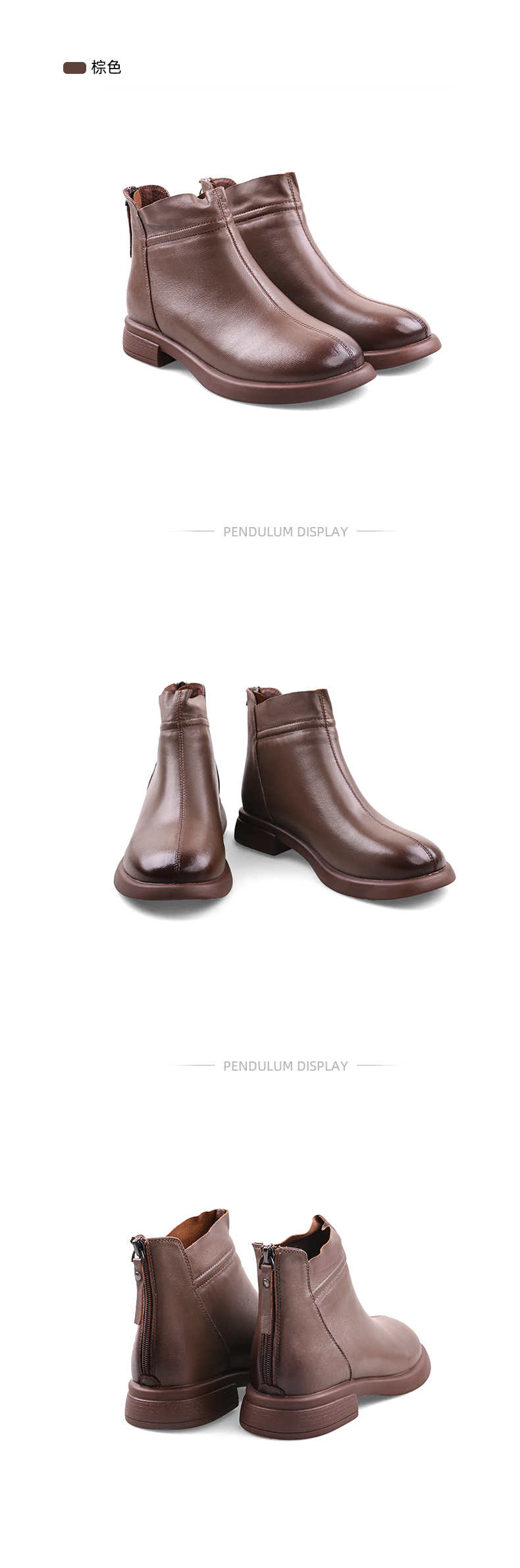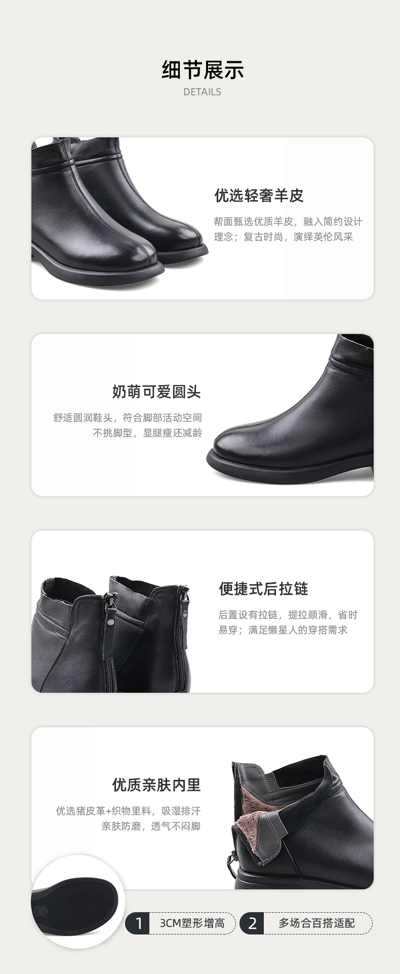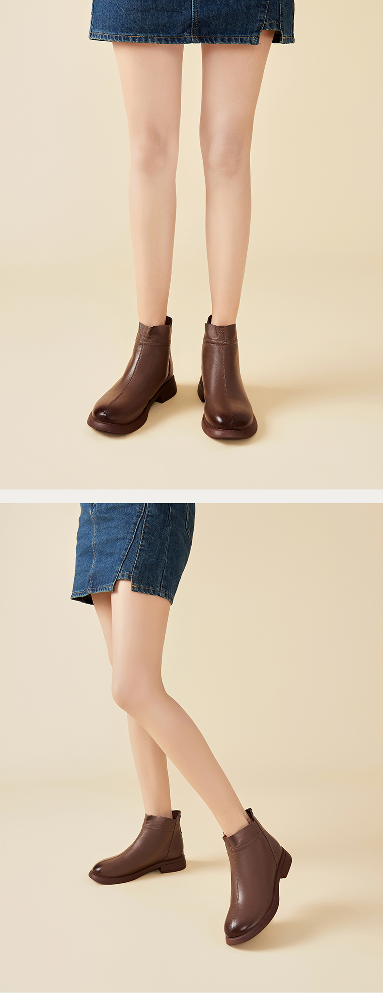 Safiya/索菲娅 2024冬季英伦羊皮方跟后拉链百搭休闲瘦瘦短靴 SF44116009/SF44118009