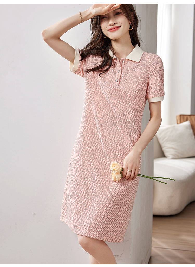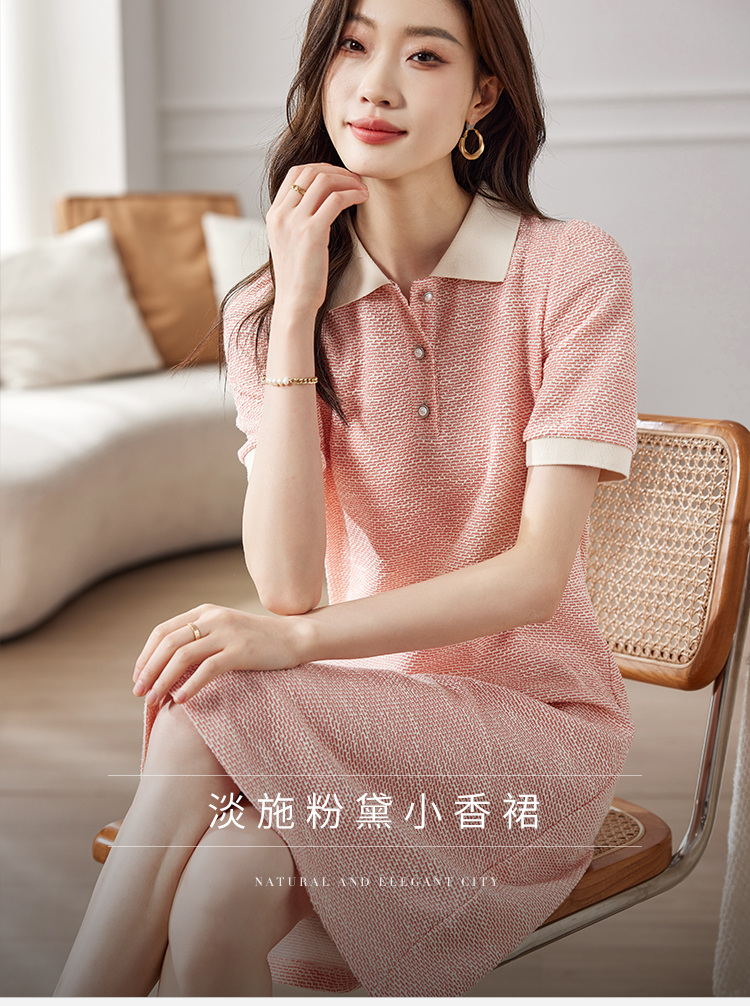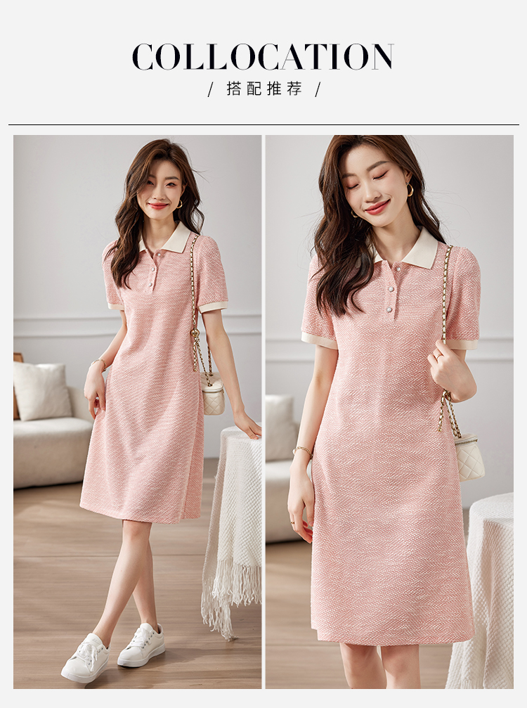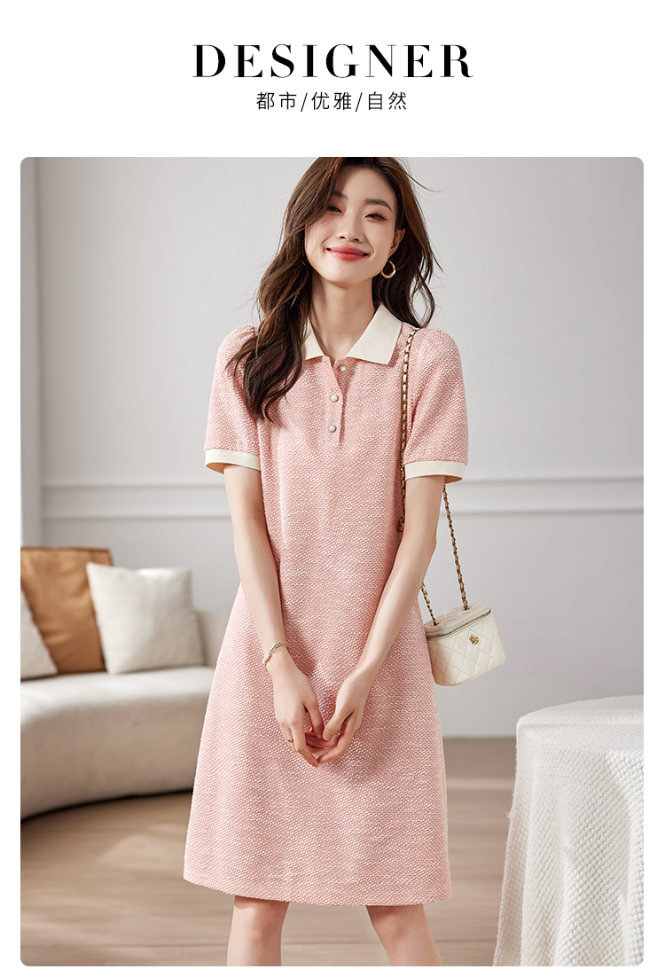 【专属特价】熙世界多巴胺穿搭小香风POLO领连衣裙女短袖气质A字裙2024夏款