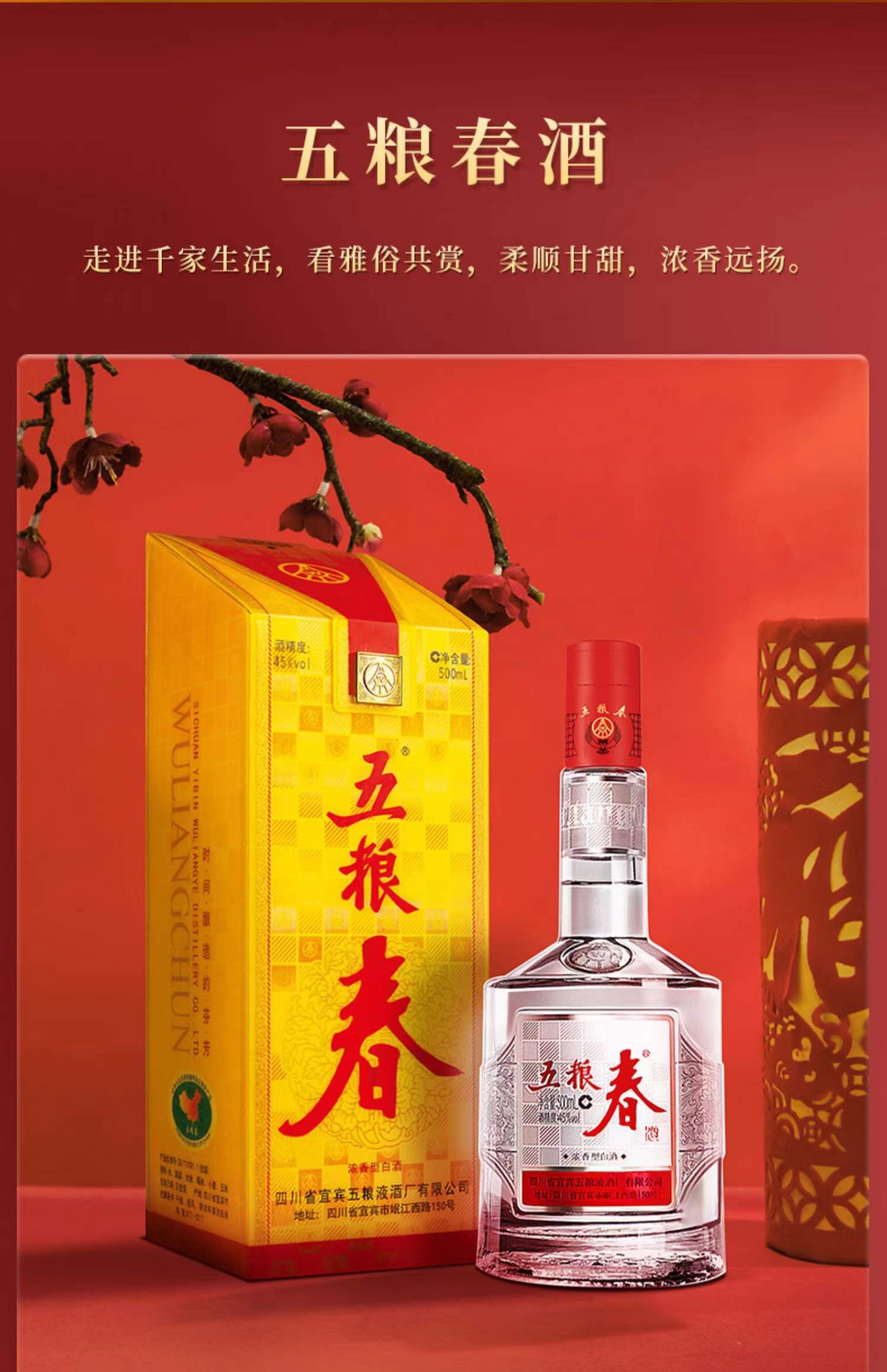 【年味】五粮春45度白酒浓香型整箱500ml*6 节日送礼nj 2023zq