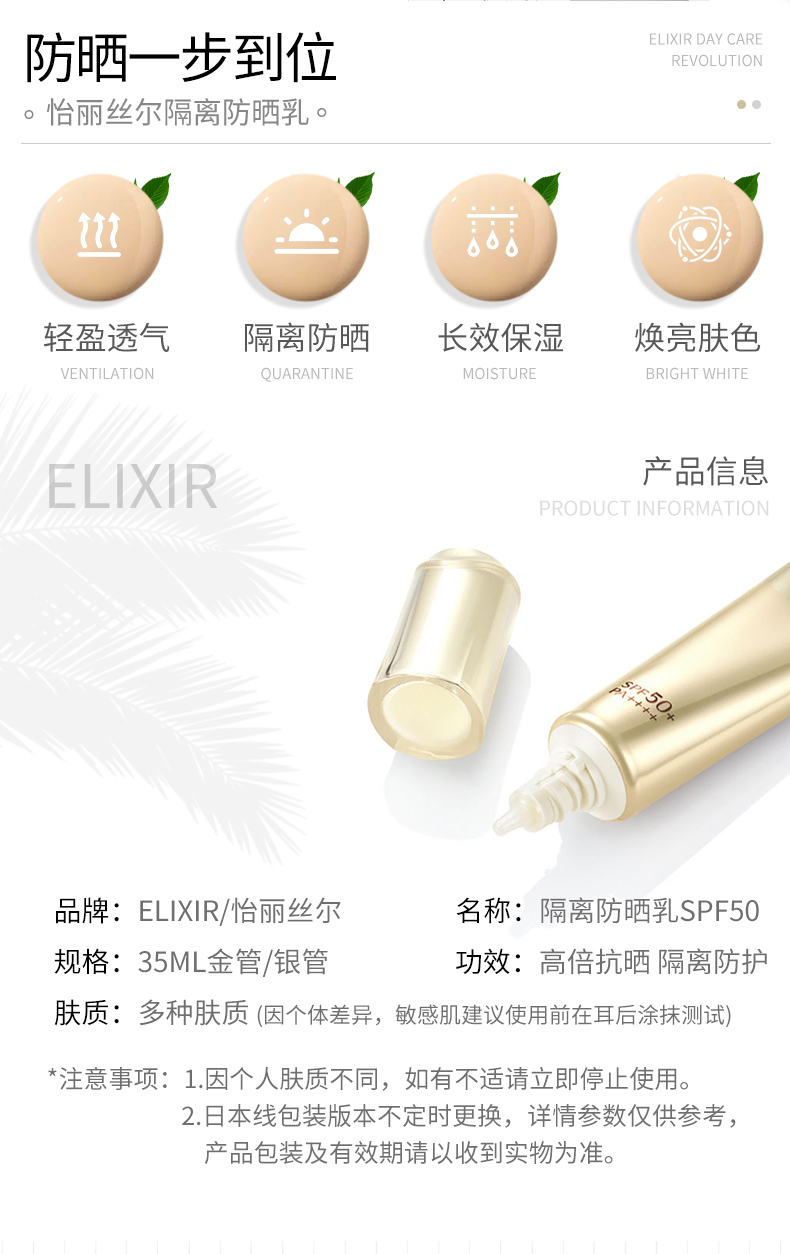 【香港直邮】ELIXIR/怡丽丝尔 防晒美容乳液金管 35ML SPF50