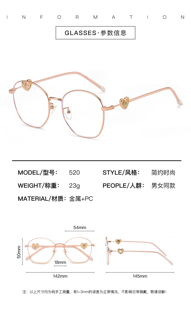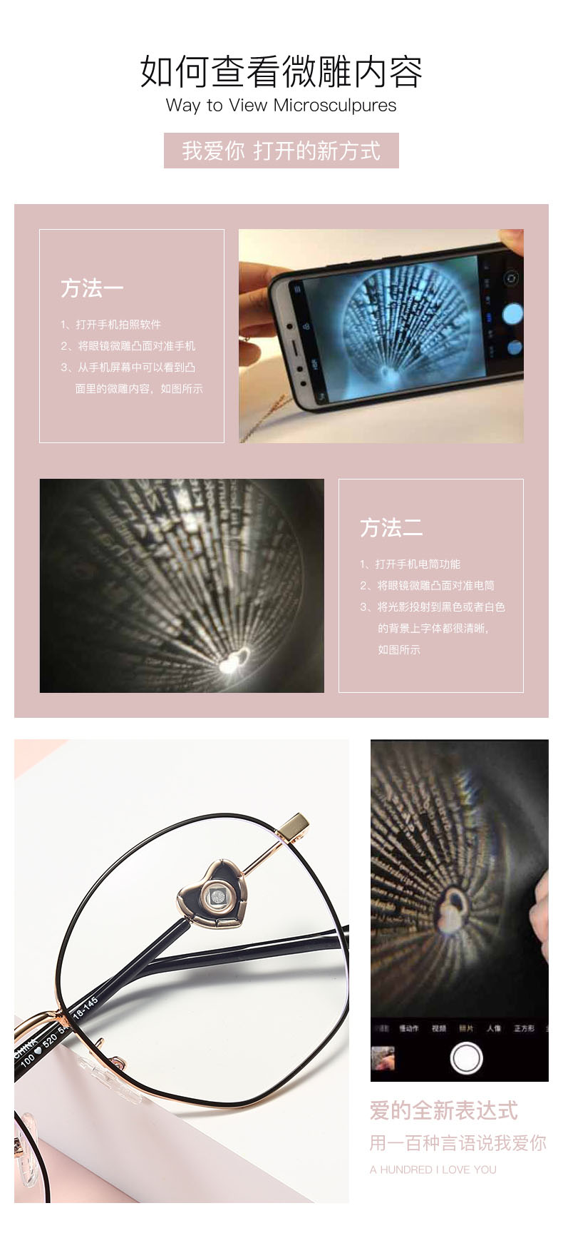骊佳防蓝光护目镜投影微雕时尚镶钻眼镜520