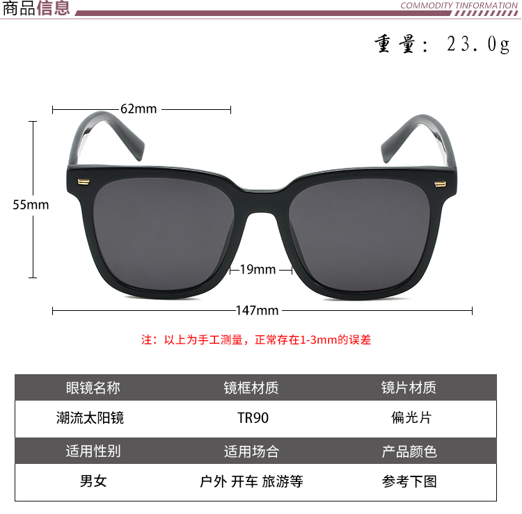 骊佳太阳镜肖战男女同款大框墨镜SG003
