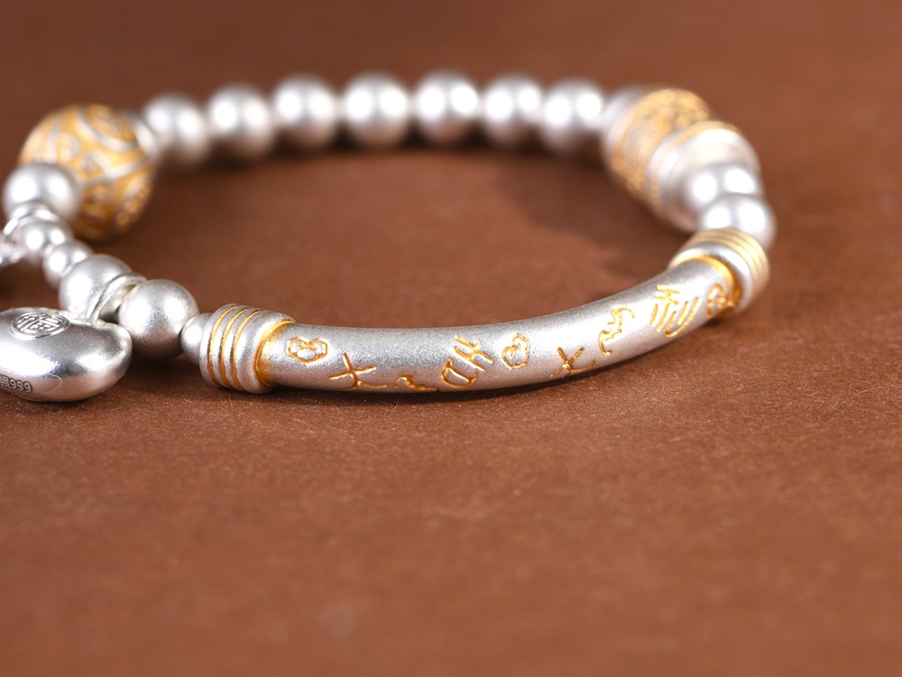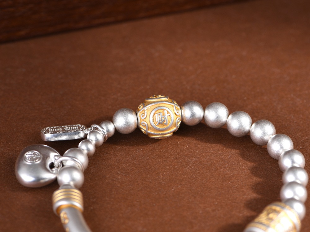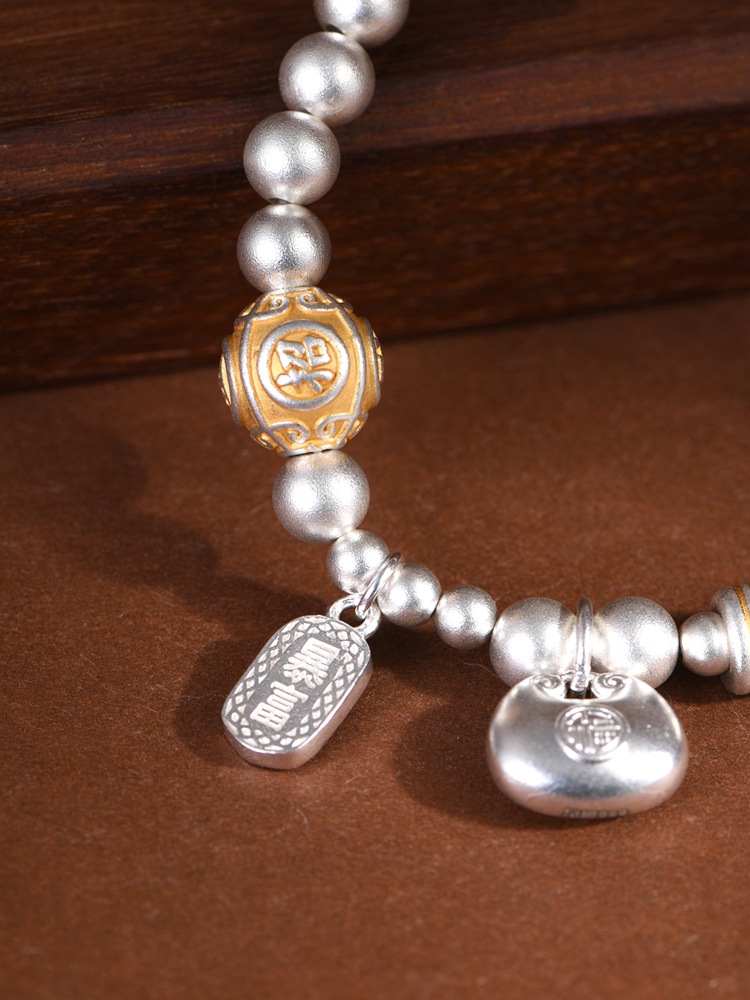 【福福相向】足银描金福字桶珠圆珠大吉大利弯管福字手链【SCH-CK40165-4】
