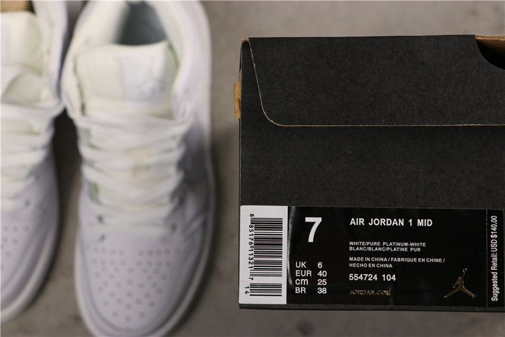 乔丹/Air Jordan AJ1 乔丹1 乔1 AJ1 乔丹1代系列中帮 Air Jordan 1 Mid “Whiteout”货号:554724-104 乔1中帮全白 36-45