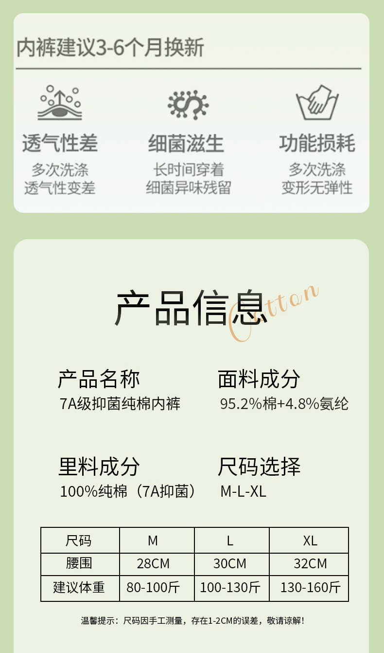 【云优选】雪梵莱 7A纯棉亲肤内裤简约版型,全包臀设计,高弹无痕没有束缚感,无勒痕 不卷边 不卡裆 不夹臀(贴身衣物不支持7天无理由退货,介意慎拍)