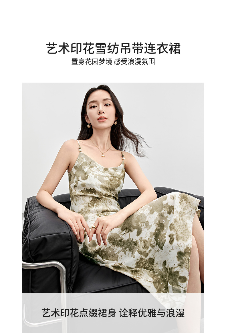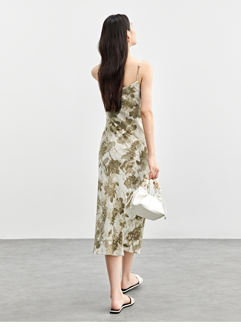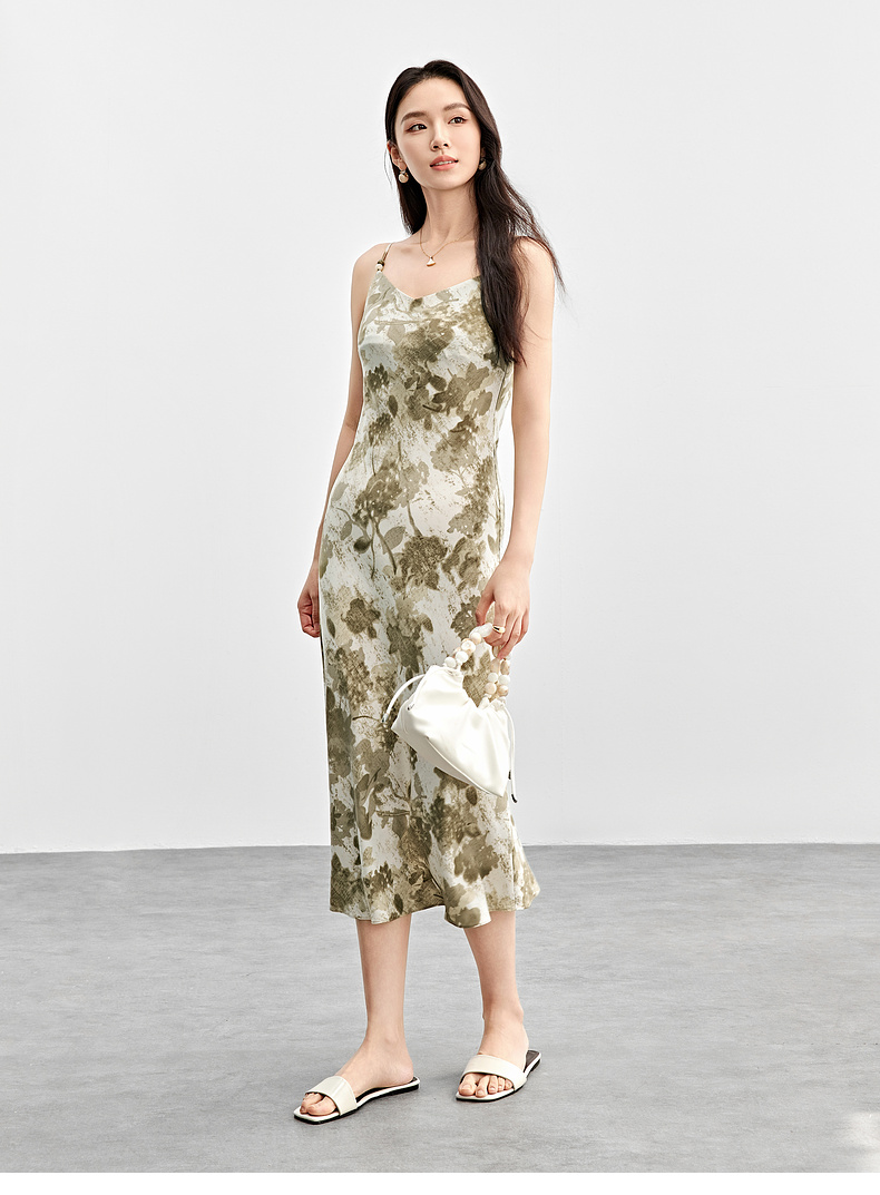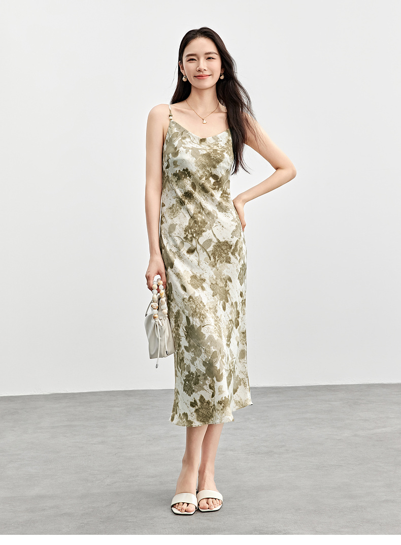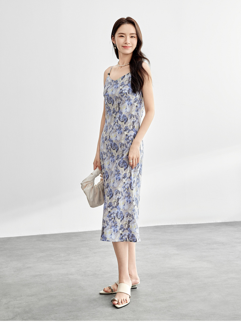 【内购】通勤优雅晕染串珠可调节肩带直筒吊带连衣裙-151L58336