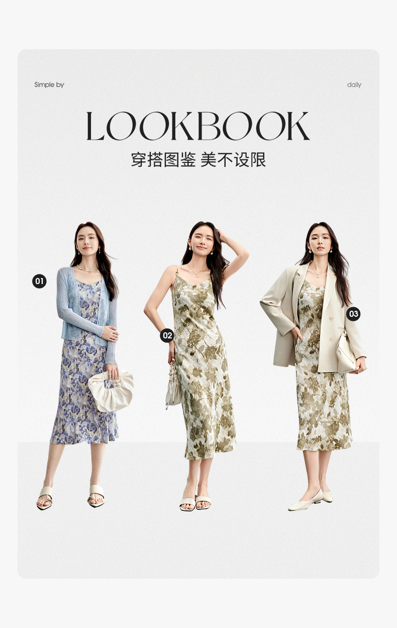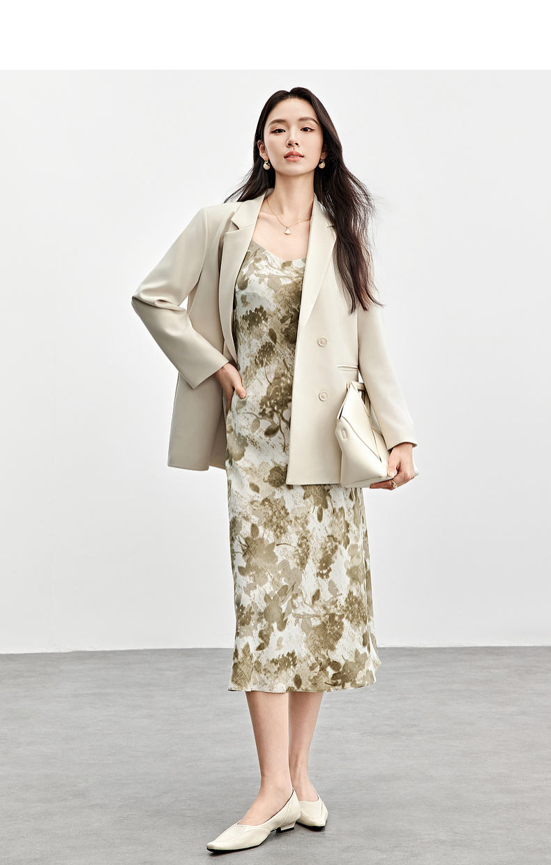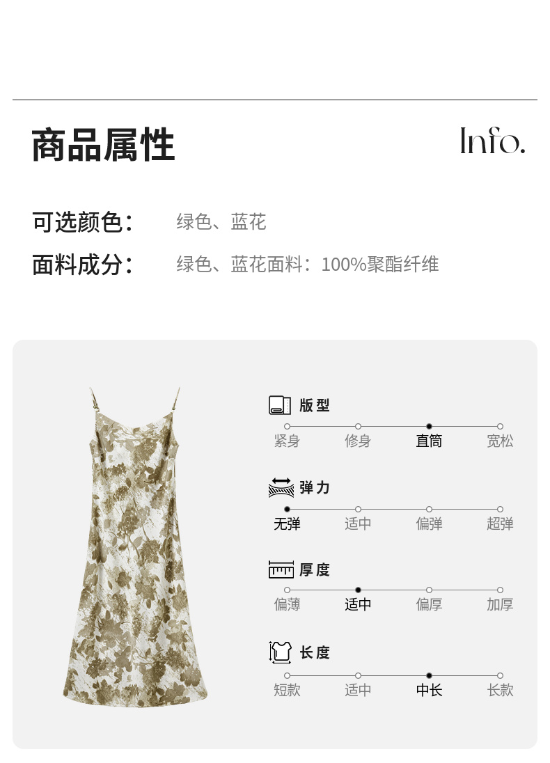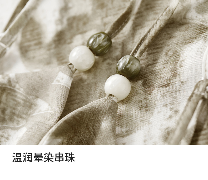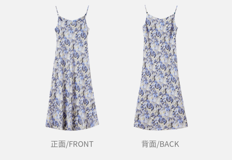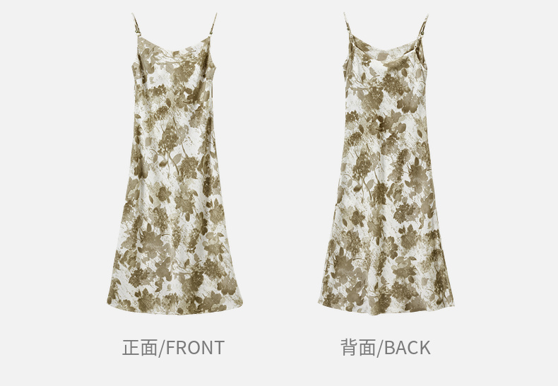 【内购】通勤优雅晕染串珠可调节肩带直筒吊带连衣裙-151L58336