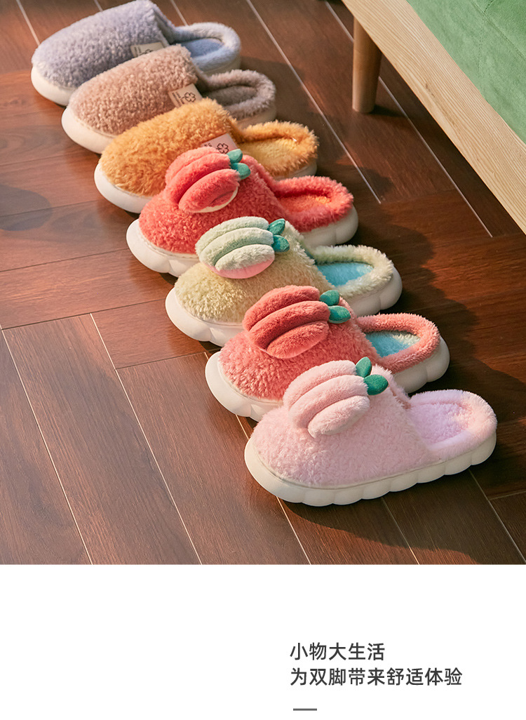 「四色可选!软乎乎」新款棉拖鞋踩屎感幸福绒大白底家居女士毛毛拖鞋