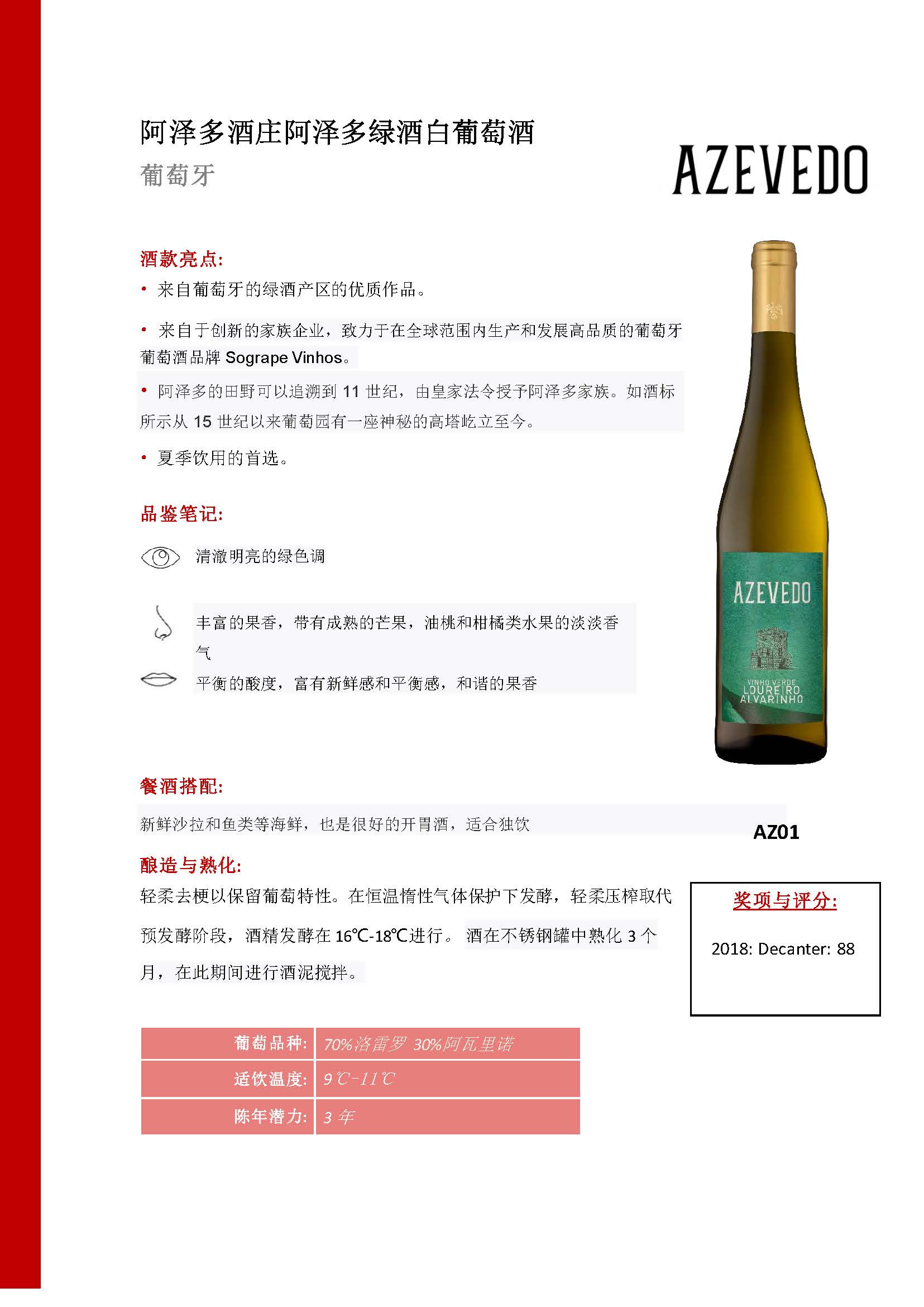 葡萄牙-阿泽多白葡萄酒2019年